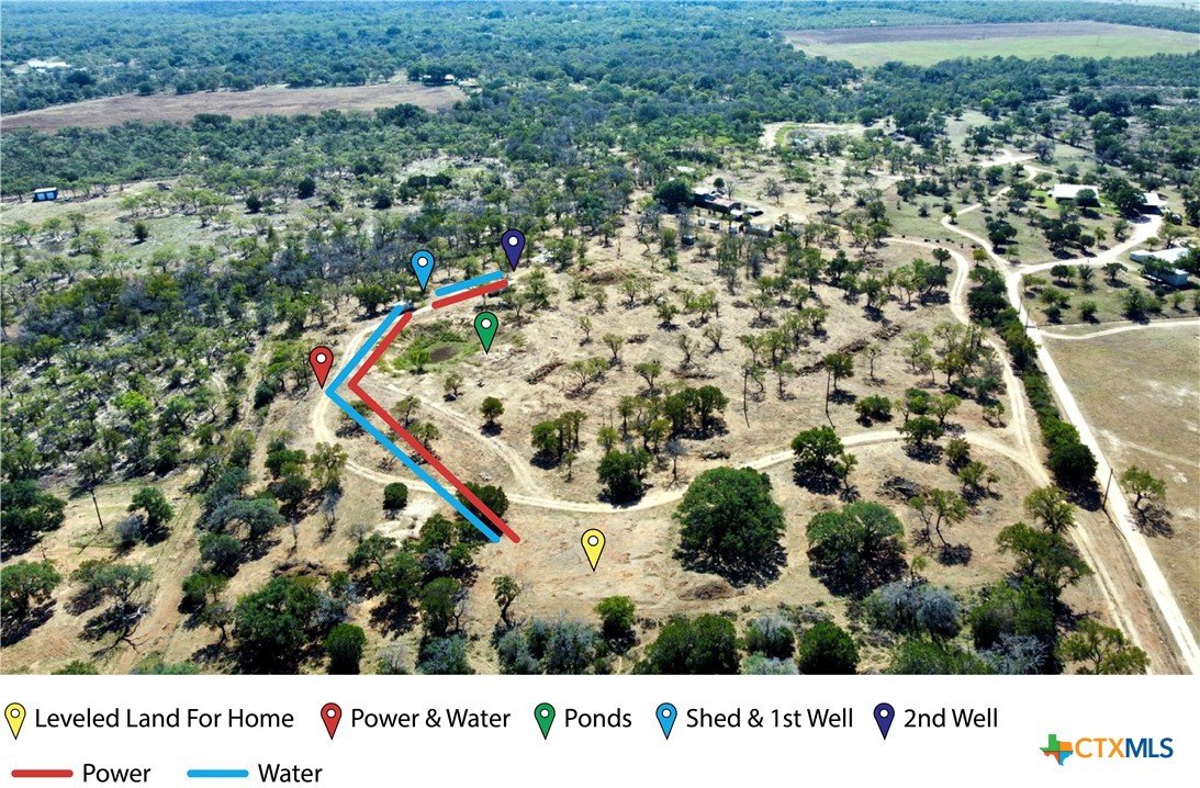 Discover 13.37 +/- acres of country living. READY TO BUILD! Fully fenced with barbed wire. The property is ready for development and has been cleared with one pad site for a 5,400 sq. ft. home and another slab for a 40x50 shop. Additional features include on-site electricity, 2 wells with water lines already in place, a storage building, and a deep dry pond. ***A second, connected property of approximately 10 +/- acres, acreage on plat and deed, is also for sale—ask the agent for details. This prime location offers the peace of the countryside while being just minutes from Marble Falls, Burnet, Kingsland, and only an hour from Austin.