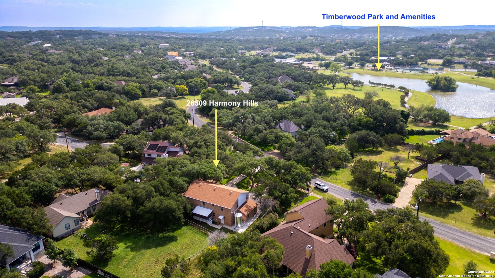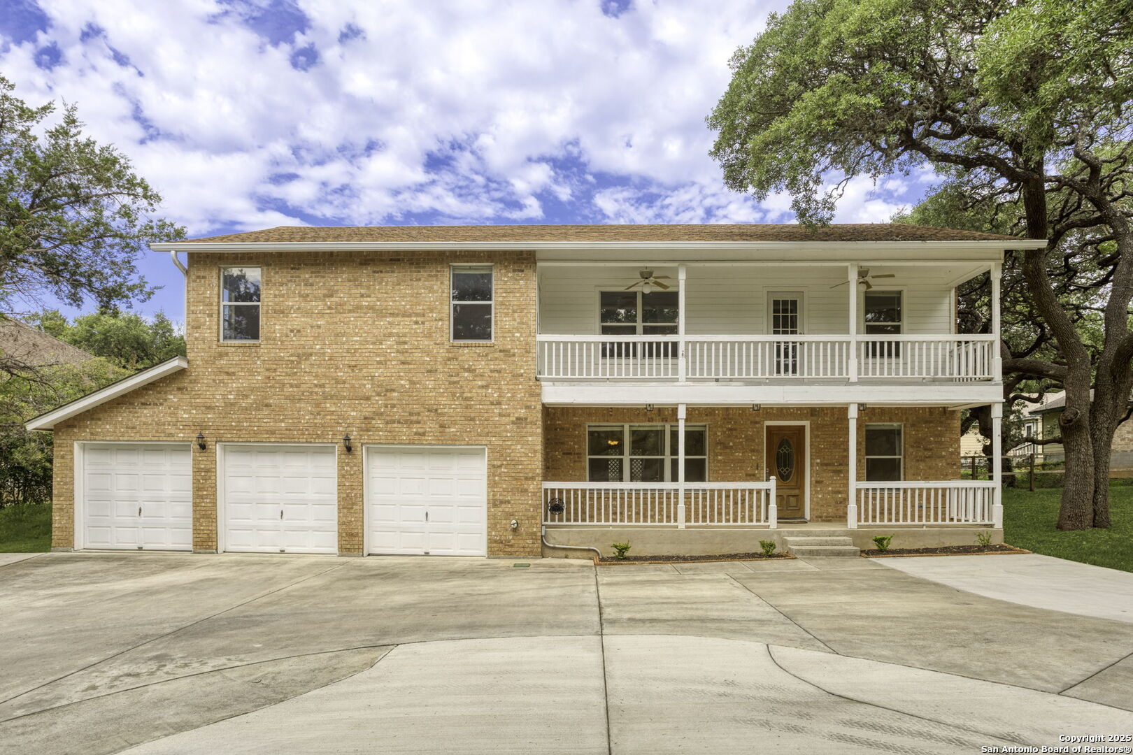 Welcome to this beautifully maintained, solid built home in the highly sought-after Timberwood Park, walking distance from the 30 acre park and amenities. Set on nearly half an acre of land and nestled among mature trees. This home offers a rare combination of quality craftsmanship, space, and convenience. Timberwood Park neighborhood amenities include access to fishing pond, pool, sports courts, playgrounds, scenic walking and biking trails-a true outdoor paradise. Zoned to top-rated Timberwood Park elementary and Piper Ranch schools only a few miles away, this is the perfect place to plant roots. Inside, the home features 4 spacious bedrooms and 2 and half baths. The huge upstairs game/media room provides even more space for entertainment and family time. Enjoy sitting on the expansive front porch or second floor balcony and enjoy the scenic views. Improvements include a rainwater catchment system that waters your St. Augustine grass, meaning you can maintain your lush lawn without worry. A massive concrete circle driveway-with additional concrete extensions-offering ample parking, and a highly coveted three-car garage for all your toys. With a separate AC additional workshop room for hobbies or storage needs. Retreat to your spa-like master bath, complete with a large garden tub. Or enjoy Texas evenings on the covered back patio, and rest easy knowing there's also a hidden floor safe for your valuables. Priced to sell at $100k below the county tax appraised value and ready for its next chapter. New roof in 2020 and new upstairs A/C 2012. Make this beautiful canvas your own and schedule your showing today.