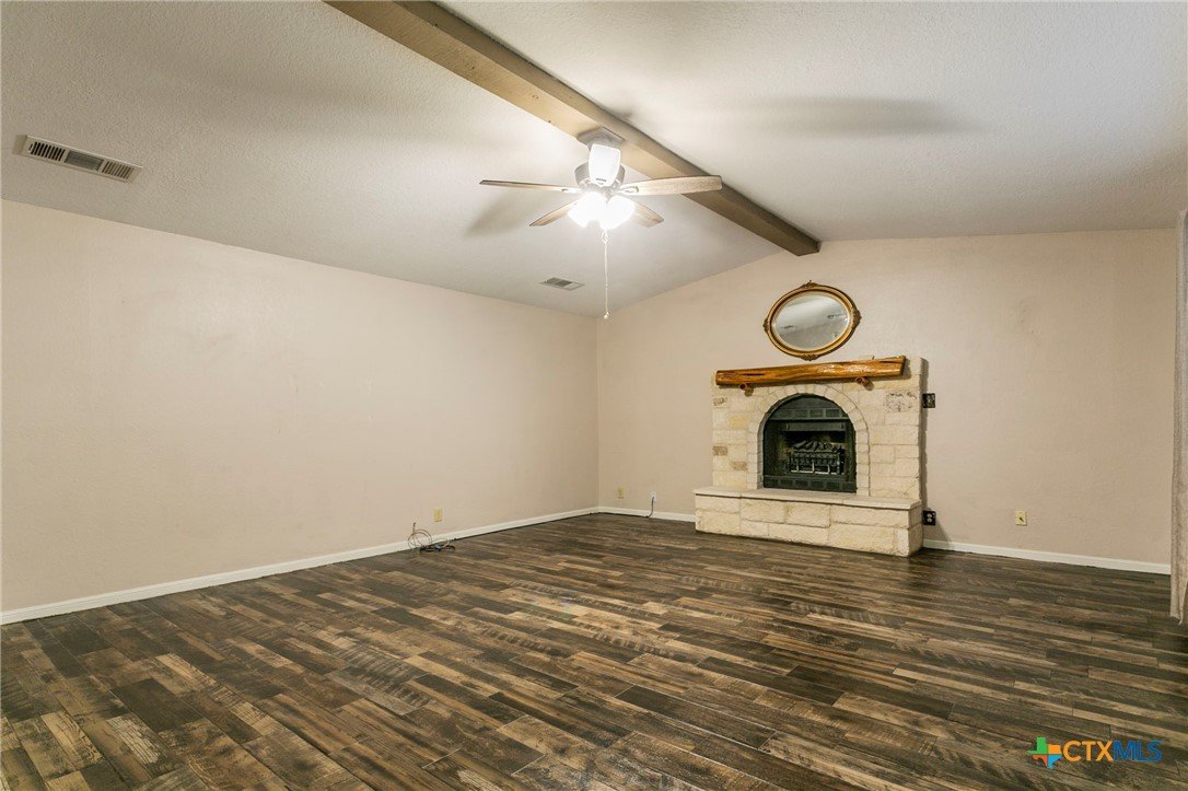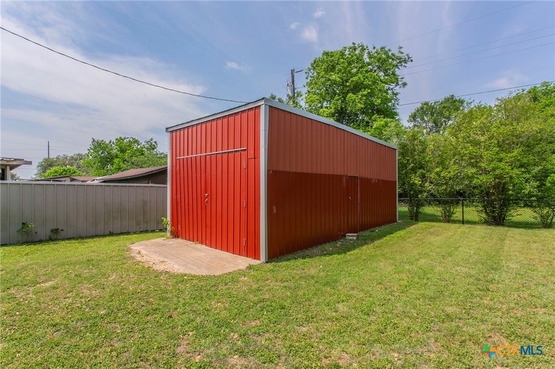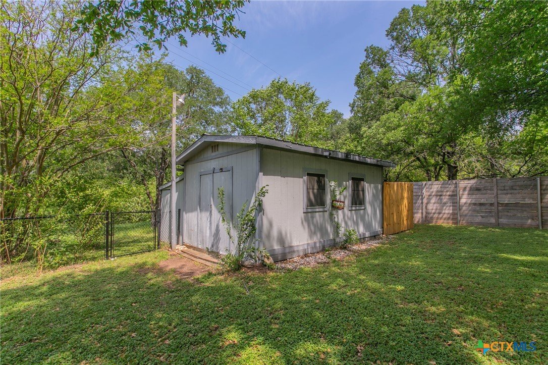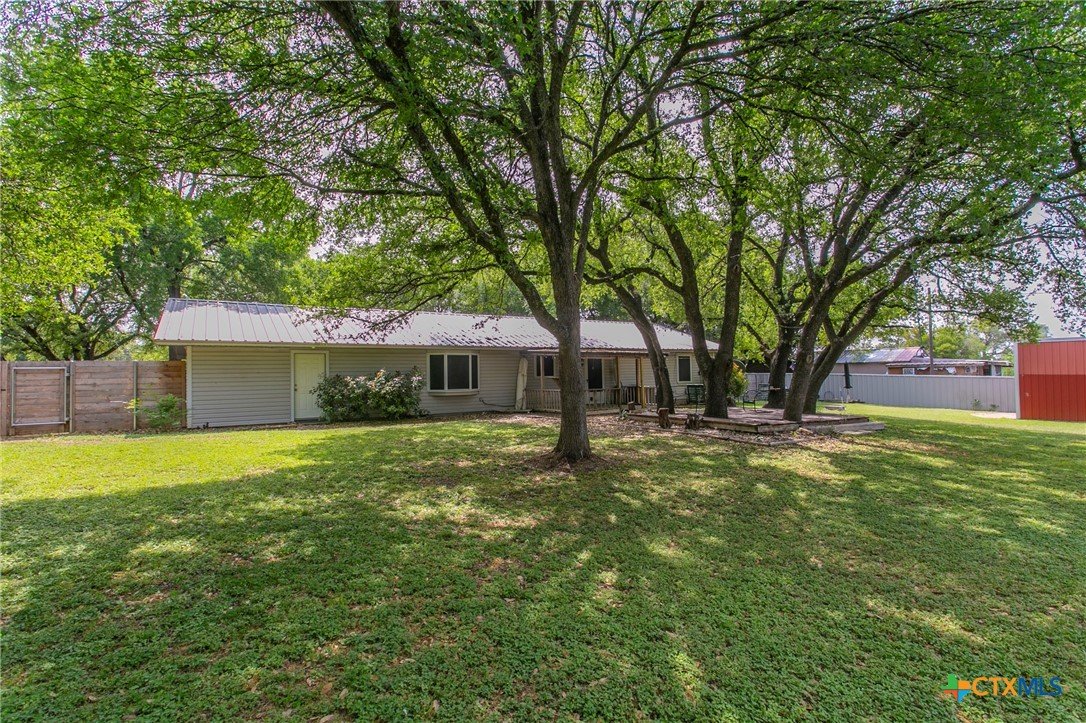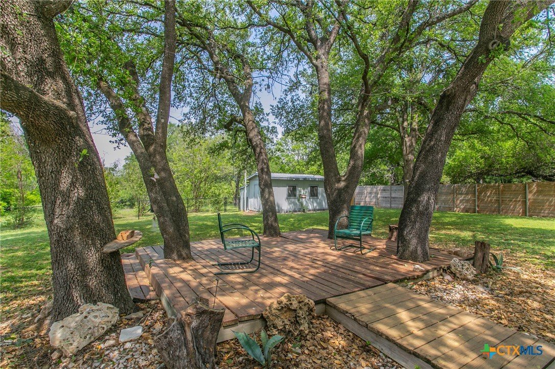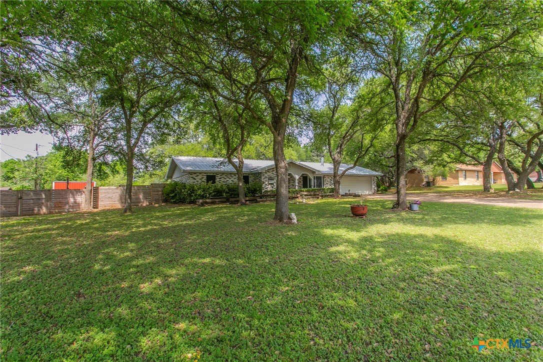 Beautiful yard full of mature trees on this half-acre of land. Home is a 3 bd/2/ba with 2 car garage that has extra store room. Property has a large shop, storage building and chicken coop. Open, black chainlink fence in the back to watch the wildlife from your covered patio or deck in the back yard. Custom fencing along the front. Beautiful rock fireplace in the living room. Solar screens for added efficiency. Low tax rate and no HOA - Enjoy country living with very easy access to Hwy. 190 and I-35.