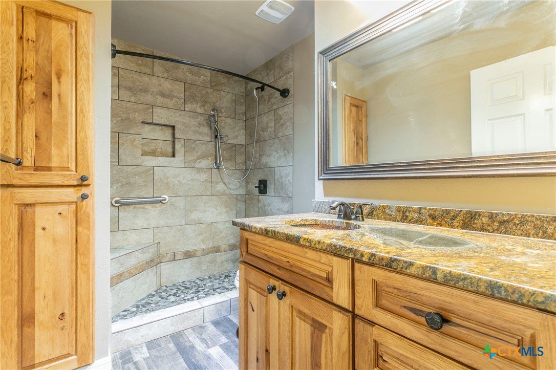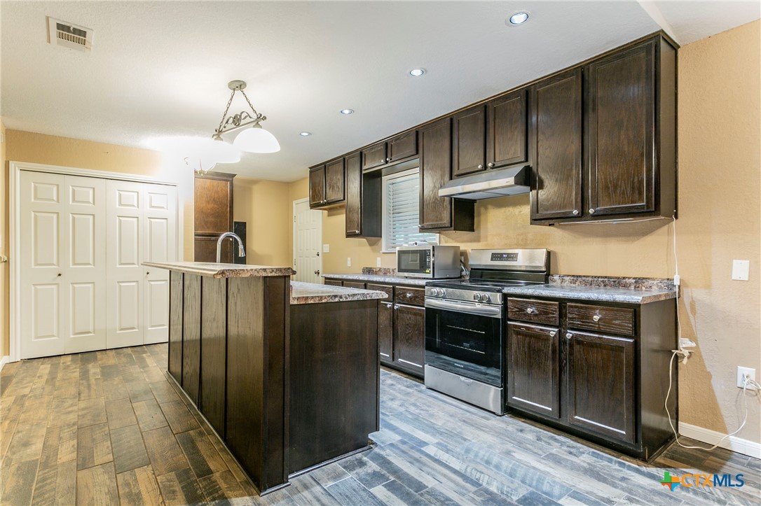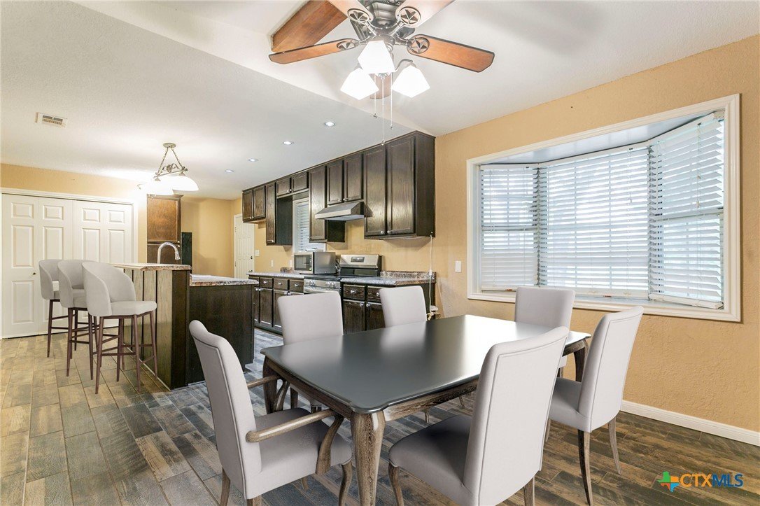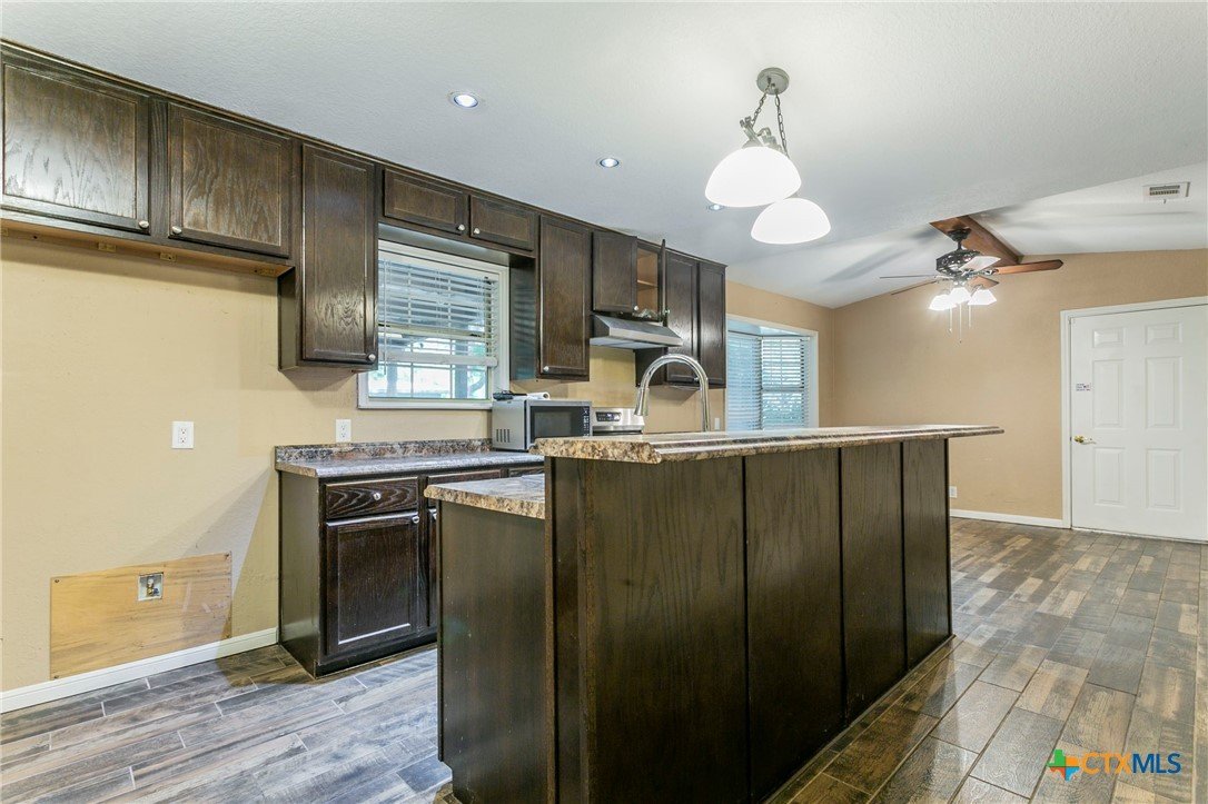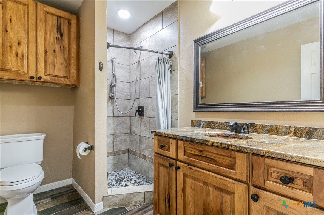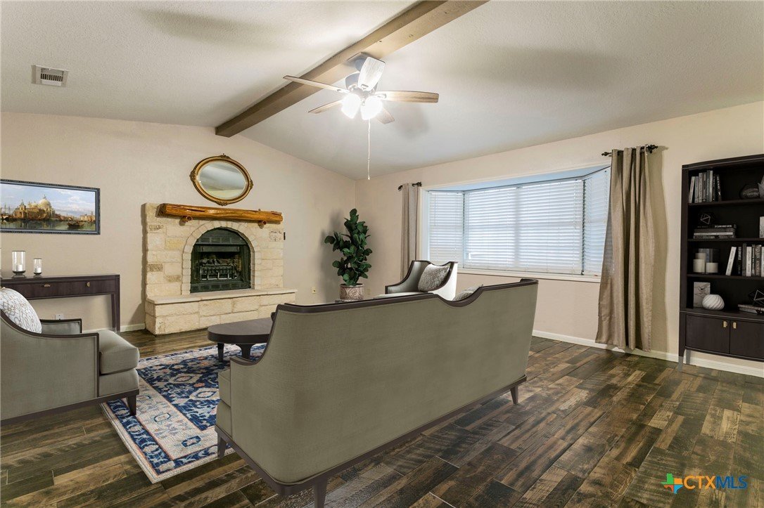 Beautiful yard full of mature trees on this half-acre of land. Home is a 3 bd/2/ba with 2 car garage that has extra store room. Property has a large shop, storage building and chicken coop. Open, black chainlink fence in the back to watch the wildlife from your covered patio or deck in the back yard. Custom fencing along the front. Beautiful rock fireplace in the living room. Solar screens for added efficiency. Low tax rate and no HOA - Enjoy country living with very easy access to Hwy. 190 and I-35.