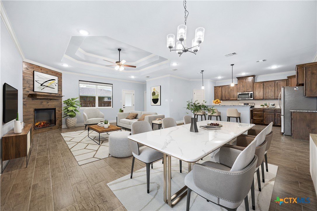 Discover spacious living and modern comfort at 2660 Cowgirl Trl. This 4-bedroom, 3-bath home features an open layout with a contemporary fireplace, a gourmet kitchen designed for gathering, and a spa-inspired primary suite with a soaking tub and walk-in shower. Paid-off solar panels help keep energy bills around $50/month, and a transferable 10-year structural warranty provides added peace of mind. The oversized 3-car garage offers flexible space for a gym, workshop, or extra storage. Limited Buyer Incentive: Preferred lender offering a 1-0 rate buydown, potentially lowering your rate to 4.99% in year one, plus an additional 1% buy-down credit with an acceptable offer. Located near Hubbard Branch Elementary with easy access to Georgetown, Fort Cavazos, shopping, and dining, this home offers efficiency, comfort, and convenience in one exceptional package.