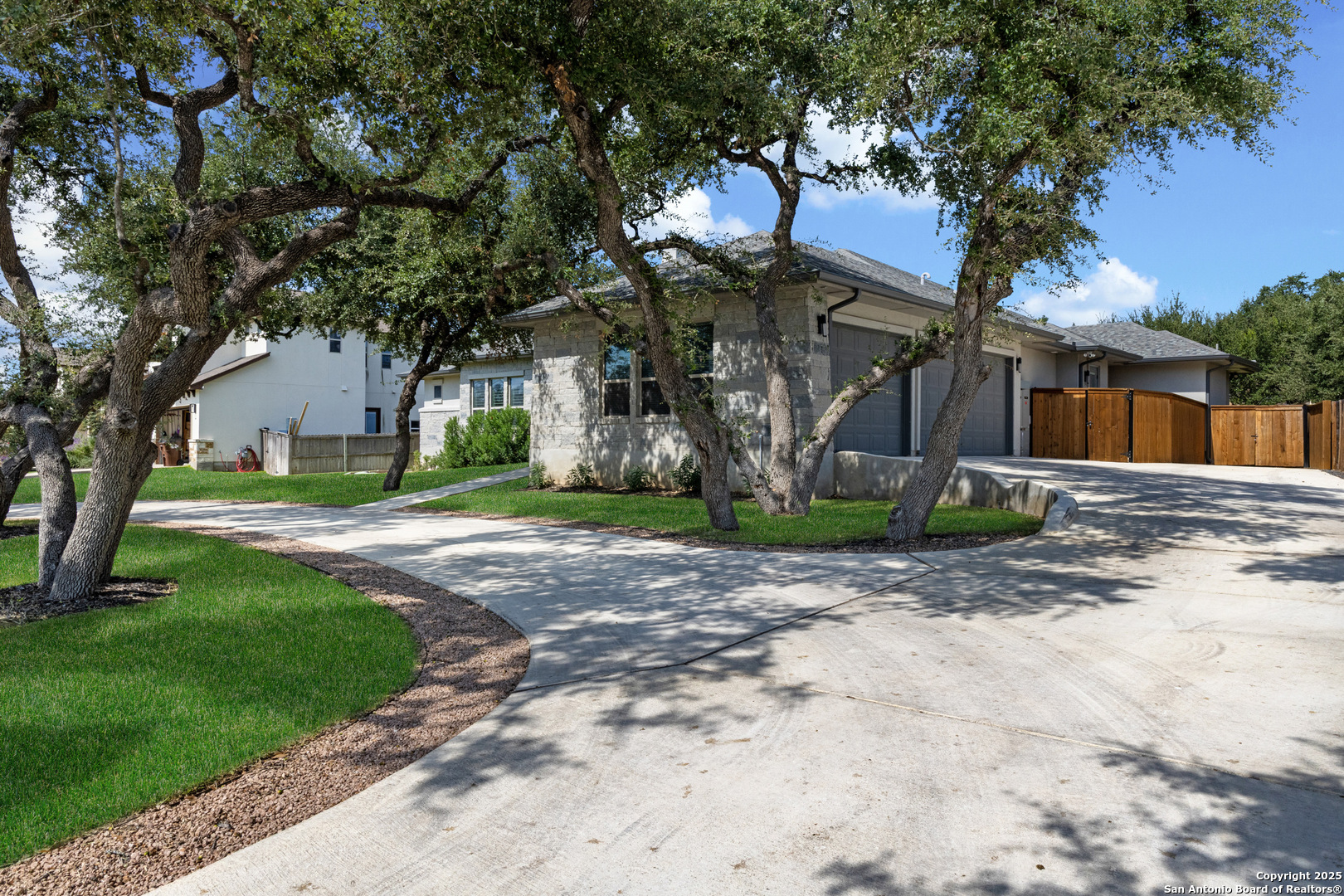 Welcome to this stunning Weston Dean, 5-bedroom, 3-bathroom home in the prestigious Timberwood Park neighborhood, just minutes from highly desired Pieper High School. Built only three years ago, this residence blends modern design with timeless comfort and includes an office and a bonus room. The open-concept floor plan is anchored by an entertainer's kitchen featuring a large island, double oven, built in microwave, custom cabinetry, and abundant storage, with seamless flow into the living and dining spaces-perfect for gatherings both large and small. Step outside to a versatile backyard complete with an outdoor kitchen, motorized shade awning covering the extended patio, mature trees, and plenty of room to relax, entertain, or play. Enjoy extra organization with a storage shed complete with electricity. Set within a vibrant neighborhood close to the private park and community amenities, you'll enjoy the best of Hill Country living while being only minutes from upscale shopping and dining-a perfect balance of tranquility and convenience.
