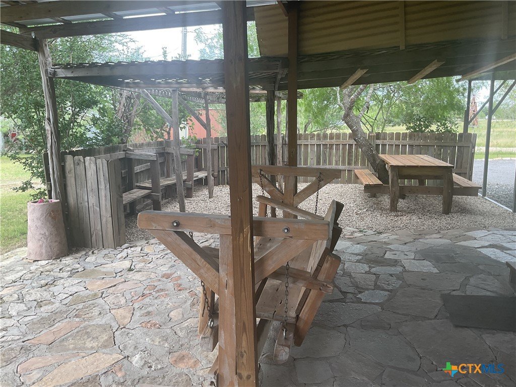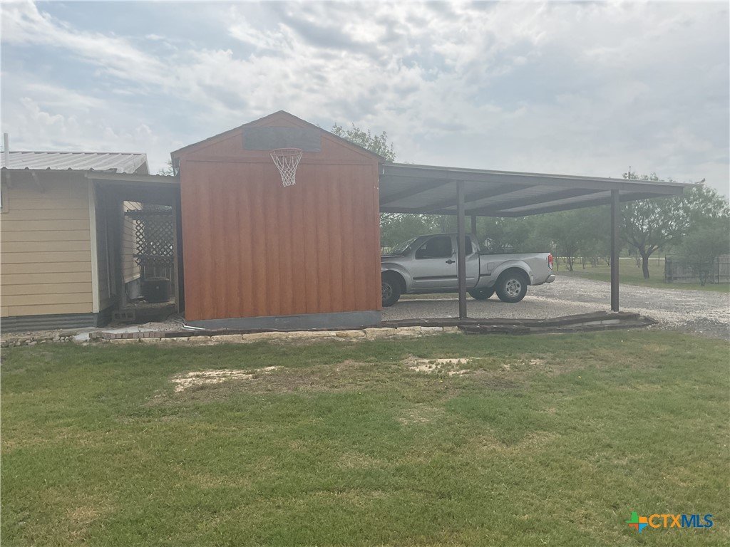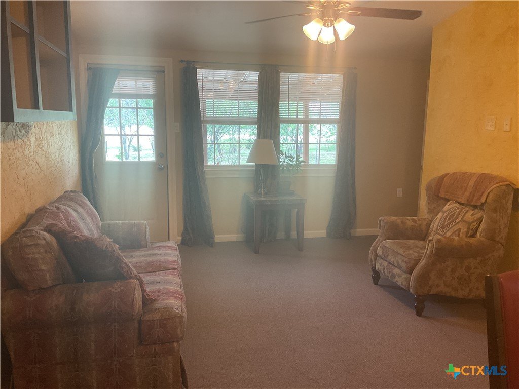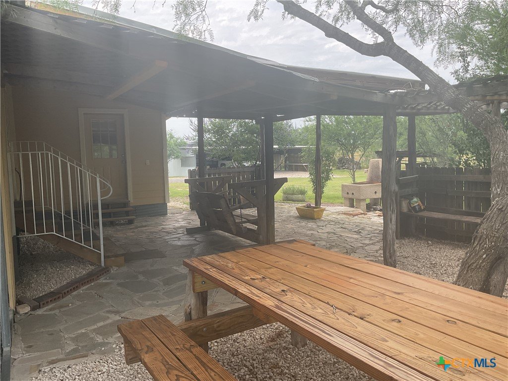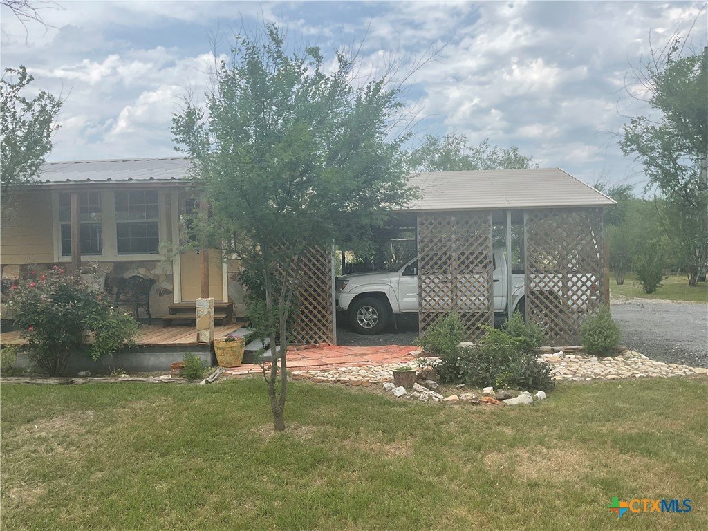 Slow life down at the relaxing rural property just minutes from New Braunfels. 2 BR/1.5 Ba plus Efficiency Apartment w/full Bath attached in back on one acre, in gated community. Partially fenced. No Home behind. Open Floor Plan, Split Bedrooms. Lg Covered Patio + Arbor. Built in Grill. 2 Double Car Carports, one on each side of home. Wood Storage Building 10 X 20 + Metal Work Shop 45 X 43 with office that has a/c & Electricity. Burn Pit. Beautifully Landscaped. This property would make a great home where someone wants their parent to life close by in the efficiency apartment. Or put a teen in the efficiency so they have more privacy from Dad and Mom. This one won't be on the market long.