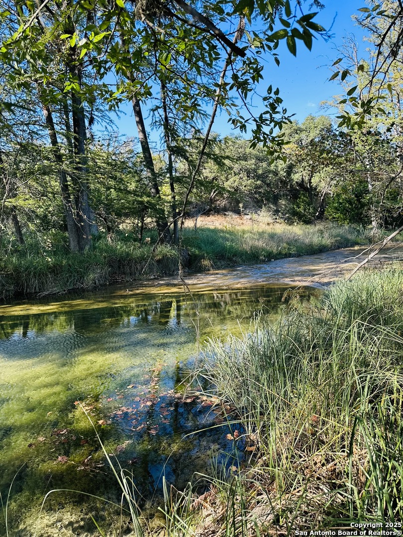Vanderpool unrestricted 14 acres with unique large home overlooking Sabinal River and Mill Creek. This property is the point Sabinal River and Mill Creek come together. The property stretches from Old Mill Creek Rd to North Mill Creek Rd. Approximately 868 ft of Sabinal River, and about 566 ft of Mill Creek. Both sides of the rivers offers amazing waterfalls, bluffs, and incredible swimming holes to enjoy. The clear water beckons you to cool off in its depths. There are some areas perfect for picnicking in the shade of the towering Cypress Trees or just soaking in the sounds of bird song instead of traffic. Hunting is permitted. Whitetail Deer, Axis Deer, and even some wild Fallow Deer roam the area. The property has many mature Oak Trees and Cypress Trees. Built in 1979 the house has a Traditional design and spacious 3676 sq ft with more than 800 sq ft of patios and balcony space. Mature Oak trees shade the front yard, and back patio. Chandeliers spread a warm glow in the welcoming entrance hall as well as the formal dining room. The family room is a large space with a brick real wood burning fireplace. The ground floor bedroom has been used as a large office with a 1/2 bath and small closet. Breakfast nook is part of the open kitchen. Leading to the garage from the kitchen is a pantry area and laundry room. The laundry room has a walk-in shower and toilet. From the family room one can see the river area from the sliding glass door that leads out to a large two-tiered porch and fenced back yard. The three upstairs bedrooms can be accessed by staircase or elevator. The elevator is tucked into the corner of the formal dining room. Upstairs the two smaller bedrooms share a Jack and Jill bathroom. The primary bedroom has stunning views of the river area and distant mountains. A wood burning fireplace adds to the warmth of the room. Ensuite bathroom and walk in closet and an unfinished addition that was going to be an additional walk-in closet and storage. Back in the bedroom large windows and a sliding glass door bring in light and incredible views. There is a private balcony deep enough for table, chairs, and a couch to snuggle up on. The house is waiting for your own updates to fit your vision and comfort. There are two wells, full septic system. Close to Hwy 187 and FM 337 it's easy to get to, and still off the main roads. 2 miles to Lost Maples Store, a few more miles North to Lost Maples State Natural Area. Utopia is only about 11 miles to the South. So many possibilities for this one-of-a-kind river property! Buyer should independently verify all information provided.