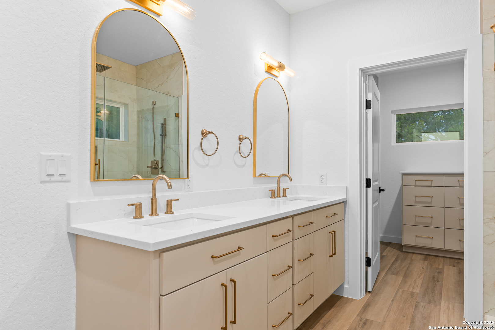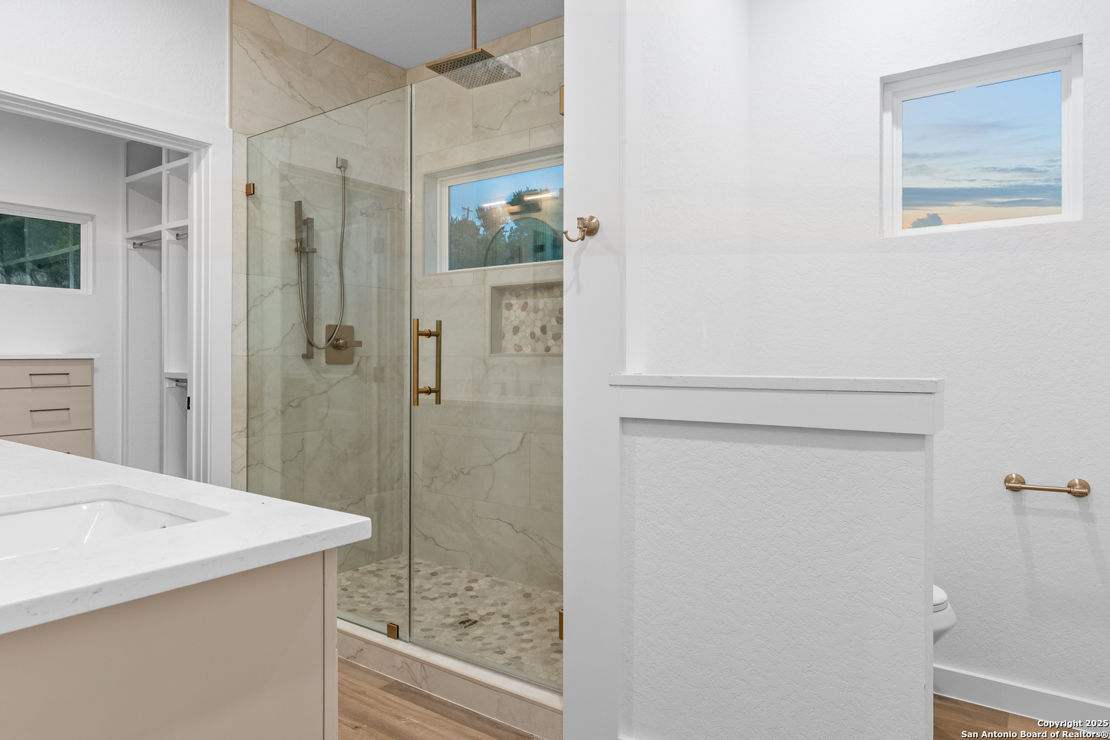 Introducing a beautiful, modern, luxury custom-newly built home in the highly sought-after Timberwood Park, situated on a spacious 0.56-acre lot. This architectural gem features a premium roof, expansive picture windows with scenic views, and a bright, open layout. The interior boasts three spacious bedrooms, three full luxury baths, plus a picturesque dining room. The chef-inspired kitchen showcases a massive quartz waterfall island, Samsung appliances, a glass cooktop, a built-in oven/microwave combo, custom two-tone soft-close cabinetry, wood shelving, pendant lighting, and a designer backsplash. Enjoy luxury waterproof vinyl flooring throughout the home. The owner's suite offers a spa-like, frameless glass-enclosed walk-in shower, porcelain tile, and a dream closet with built-ins. Additional highlights include a door-covered separate patio to the backyard from the primary bedroom, epoxy-sealed garage floors, an 8-foot modern garage door with windows, pre-plumbing for a water softener, premium plumbing, energy-efficient spray foam insulation, and a large covered patio. Timberwood Park amenities include a 30-acre private park, a 7-acre stocked lake, a 6-hole golf course, tennis and basketball courts, a junior Olympic pool, a kiddie splash pad, walking trails, a pavilion, and a new clubhouse. This one-of-a-kind home is a must-see. Schedule your tour today!
