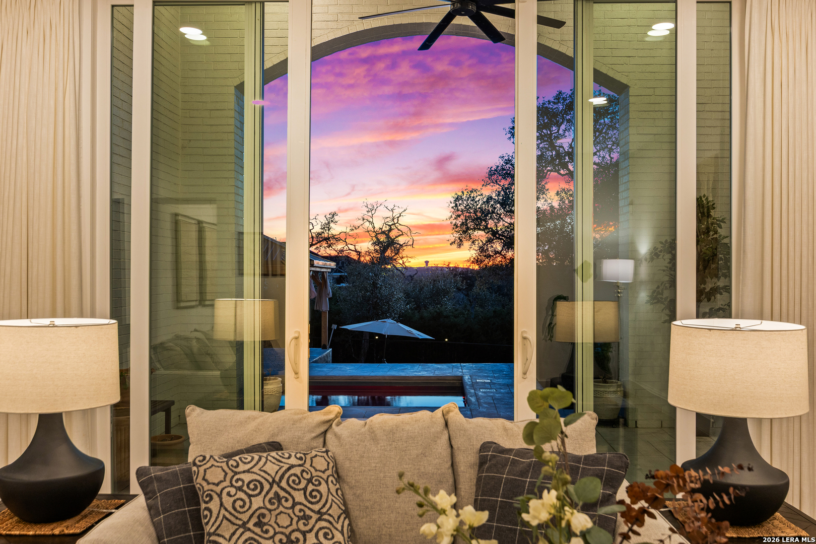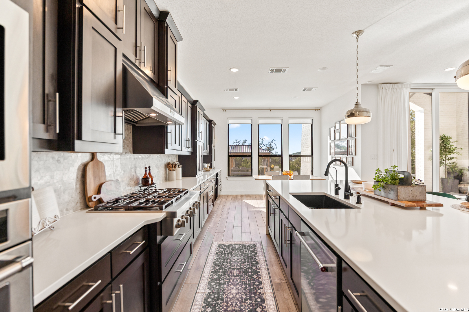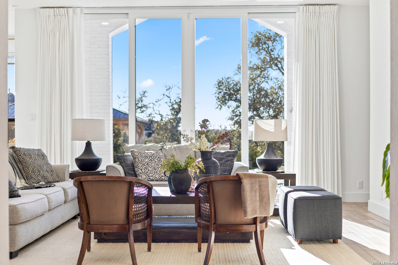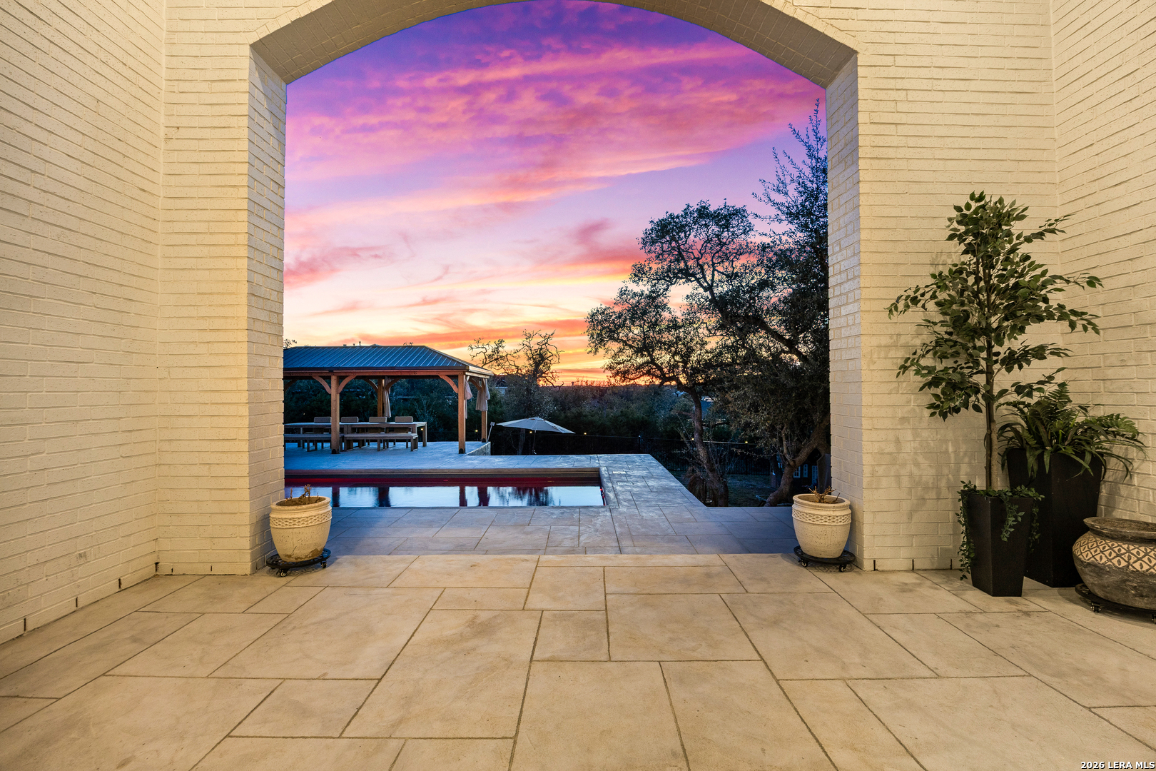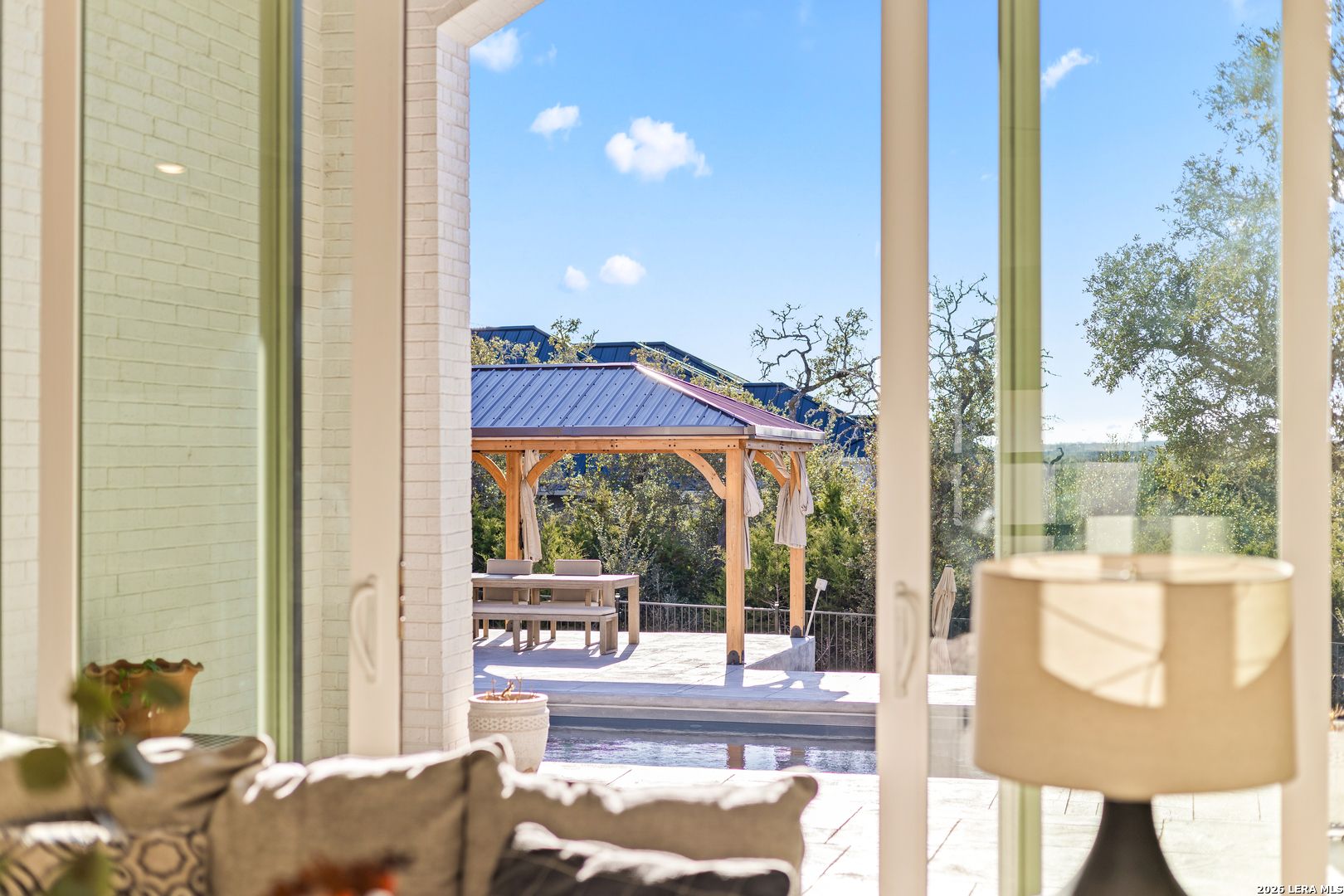Experience elevated living in this meticulously redesigned luxury home offering panoramic Hill Country views from a premium elevated lot. Thoughtfully re-imagined by a professional architect, the enhanced open-concept floorplan provides seamless flow, expanded living spaces, and flexible functionality ideal for modern living and entertaining. Designed for today's lifestyle, this home features two private home offices perfect for remote work, a formal dining room with an elegant dry bar, and multiple spacious living areas. The expansive second-floor media room creates the ultimate entertainment space for movie nights, game days, or hosting large gatherings. High-end finishes are showcased throughout, including custom millwork, designer lighting, premium flooring, and bespoke cabinetry. The gourmet kitchen features exquisite stone countertops, abundant prep space, and curated design details that blend luxury with performance. The expansive primary suite serves as a private retreat with dual custom walk-in closets and a spa-inspired bathroom designed for relaxation. Additional living spaces offer comfort and flexibility for family and guests. Step outside to a true backyard oasis featuring a resort-style pool, extensive hardscape, and a professionally designed oversized pergola that defines luxury outdoor living. The elevated setting captures breathtaking Hill Country views, stunning sunsets, and exceptional privacy. This luxury home with pool, media room, two offices, dual custom closets, formal dining, and panoramic views offers the perfect blend of architectural design, modern functionality, and resort-style outdoor living.
