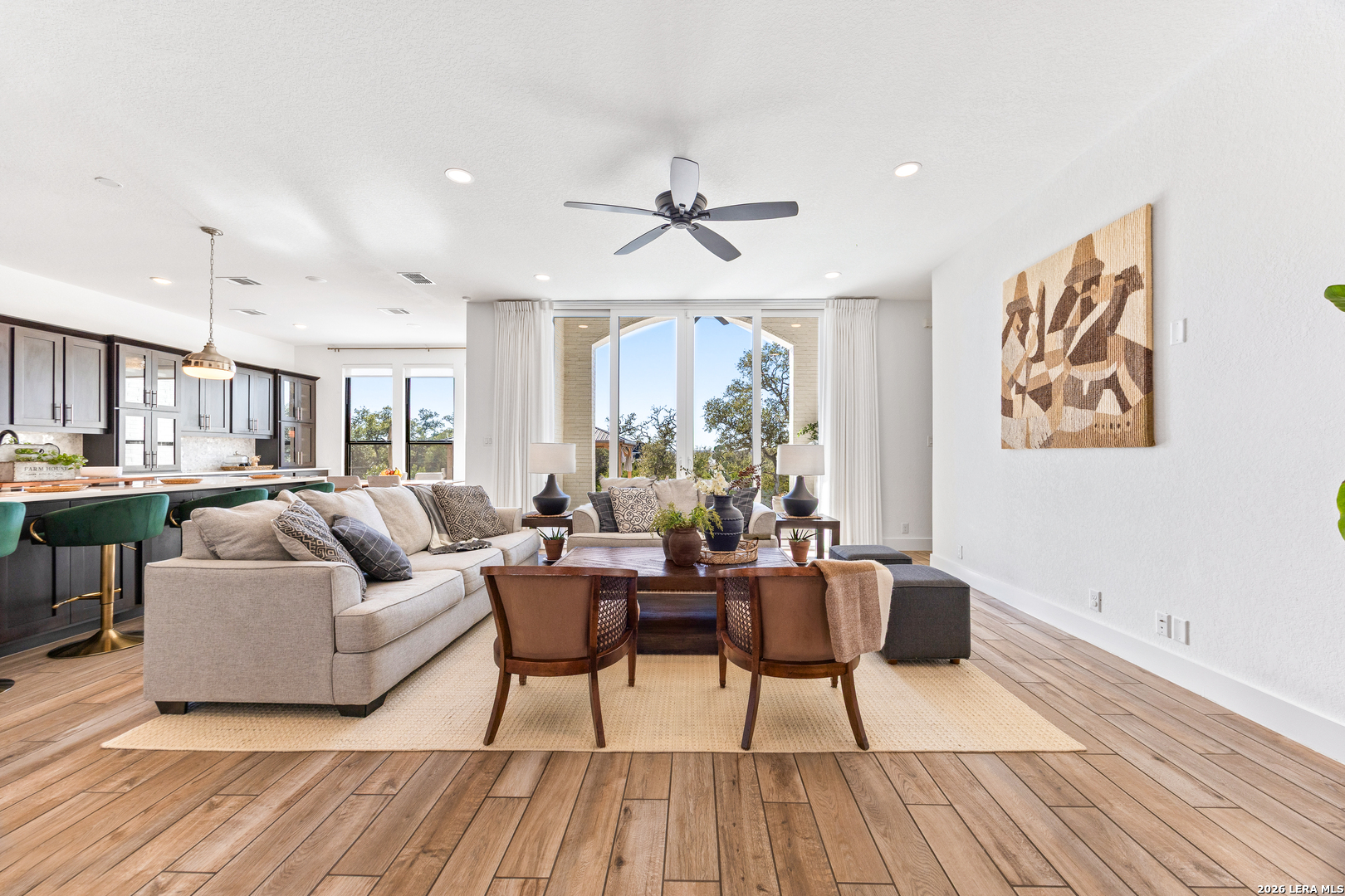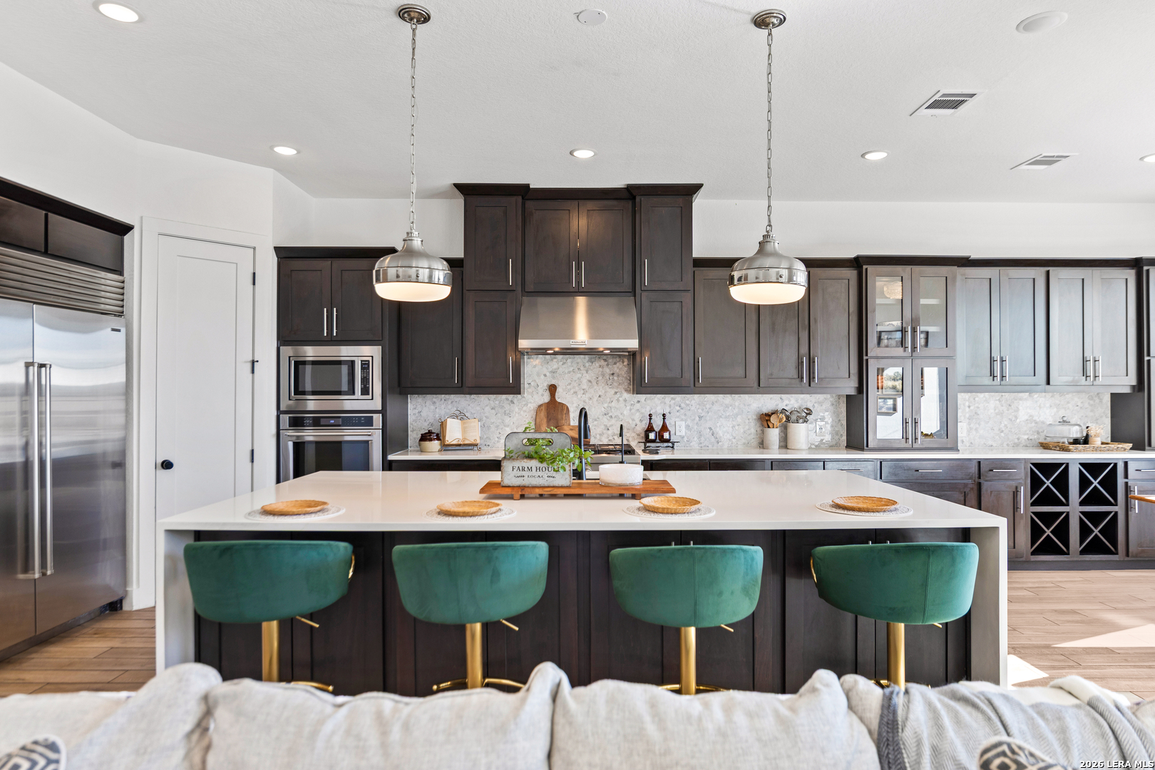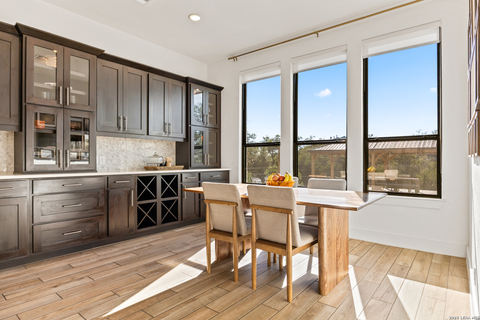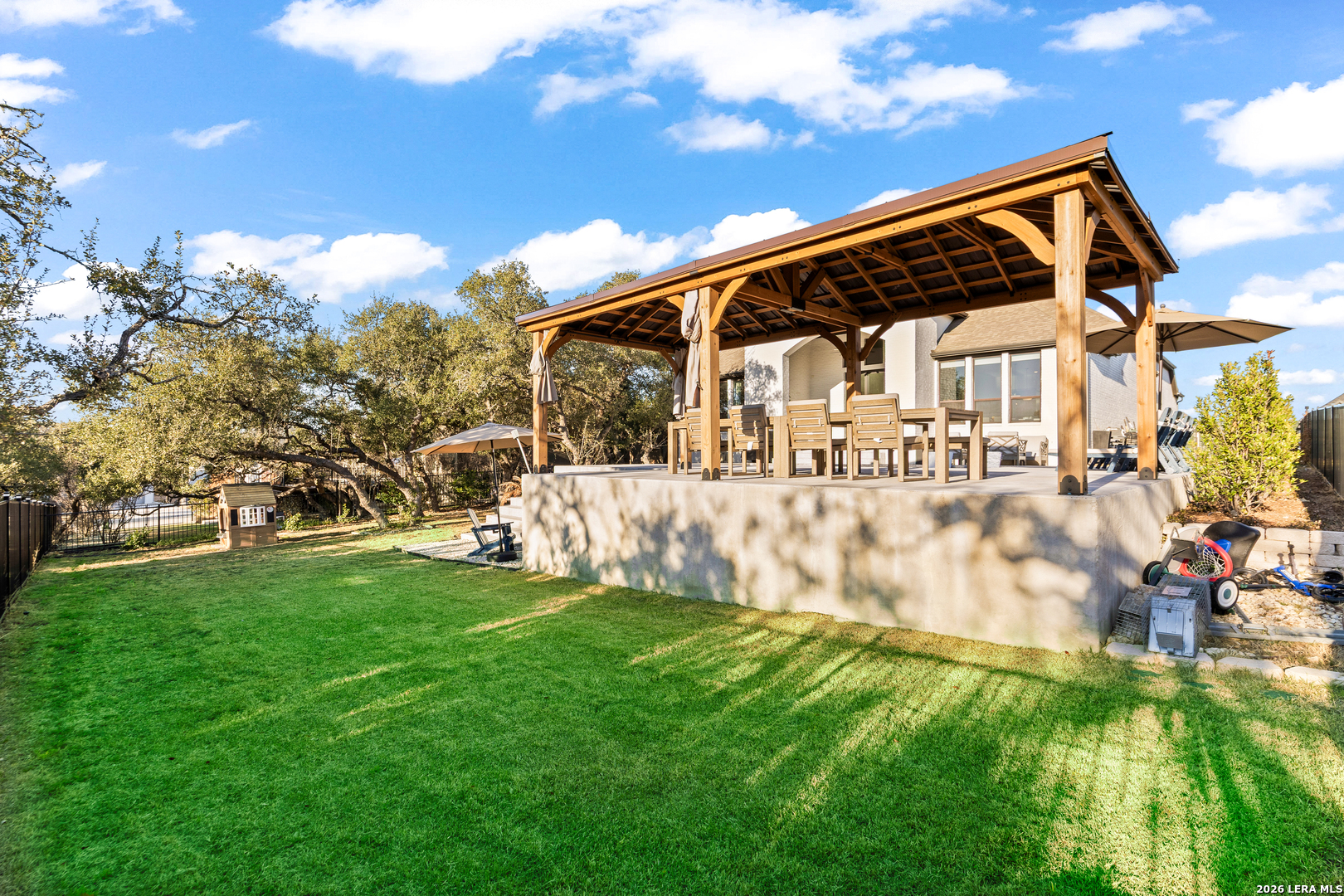 Experience elevated living in this meticulously redesigned luxury home offering panoramic Hill Country views from a premium elevated lot. Thoughtfully re-imagined by a professional architect, the enhanced open-concept floorplan provides seamless flow, expanded living spaces, and flexible functionality ideal for modern living and entertaining. Designed for today's lifestyle, this home features two private home offices perfect for remote work, a formal dining room with an elegant dry bar, and multiple spacious living areas. The expansive second-floor media room creates the ultimate entertainment space for movie nights, game days, or hosting large gatherings. High-end finishes are showcased throughout, including custom millwork, designer lighting, premium flooring, and bespoke cabinetry. The gourmet kitchen features exquisite stone countertops, abundant prep space, and curated design details that blend luxury with performance. The expansive primary suite serves as a private retreat with dual custom walk-in closets and a spa-inspired bathroom designed for relaxation. Additional living spaces offer comfort and flexibility for family and guests. Step outside to a true backyard oasis featuring a resort-style pool, extensive hardscape, and a professionally designed oversized pergola that defines luxury outdoor living. The elevated setting captures breathtaking Hill Country views, stunning sunsets, and exceptional privacy. This luxury home with pool, media room, two offices, dual custom closets, formal dining, and panoramic views offers the perfect blend of architectural design, modern functionality, and resort-style outdoor living.