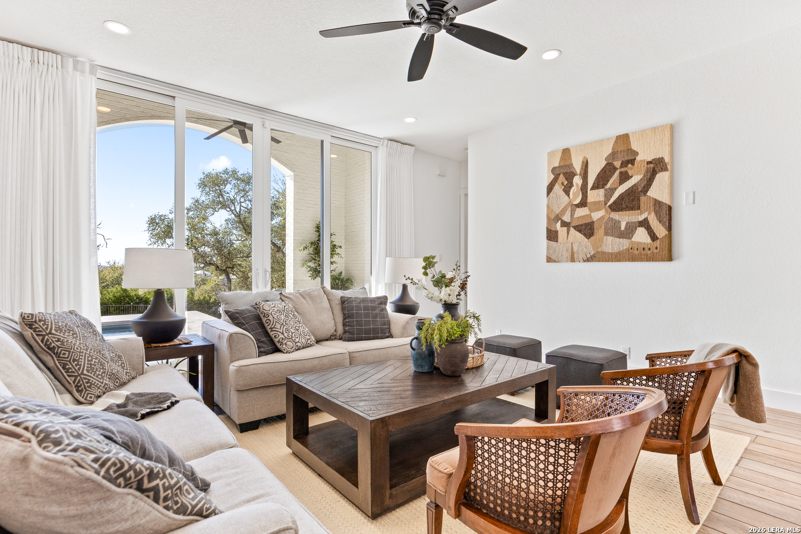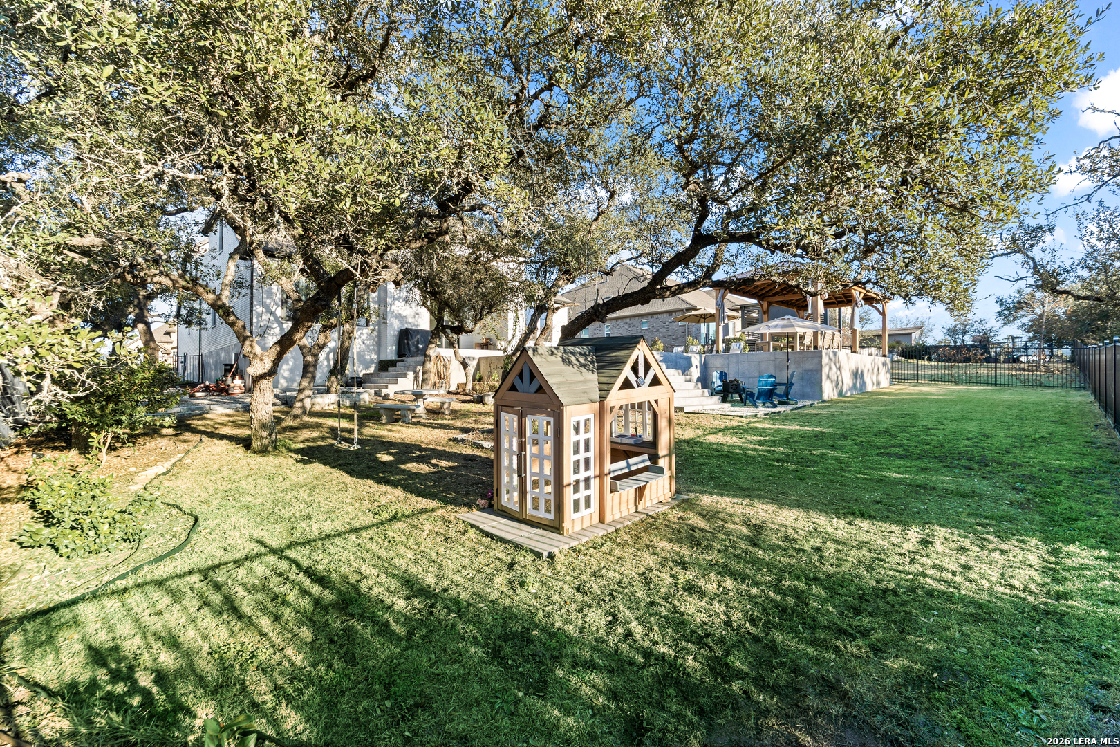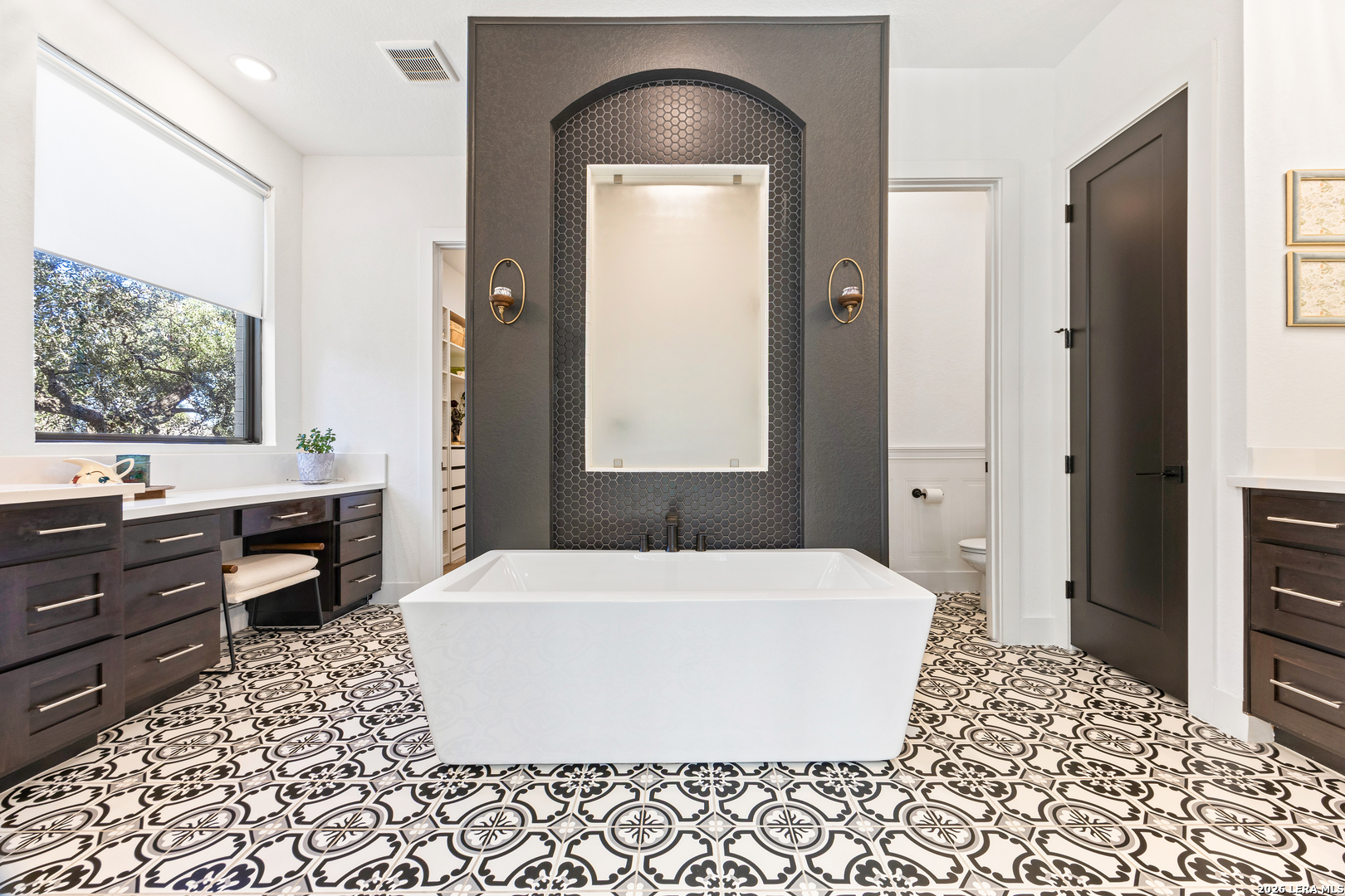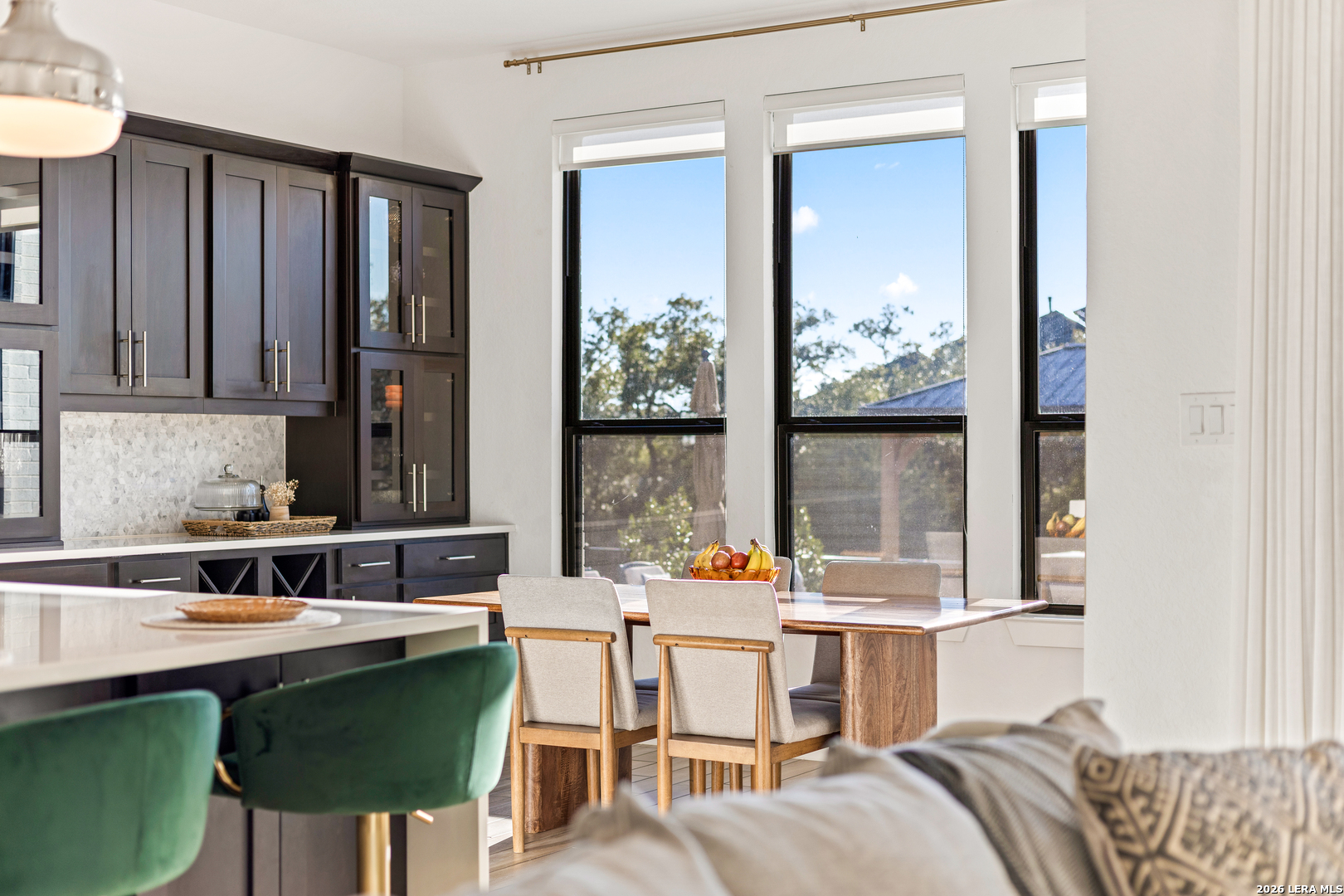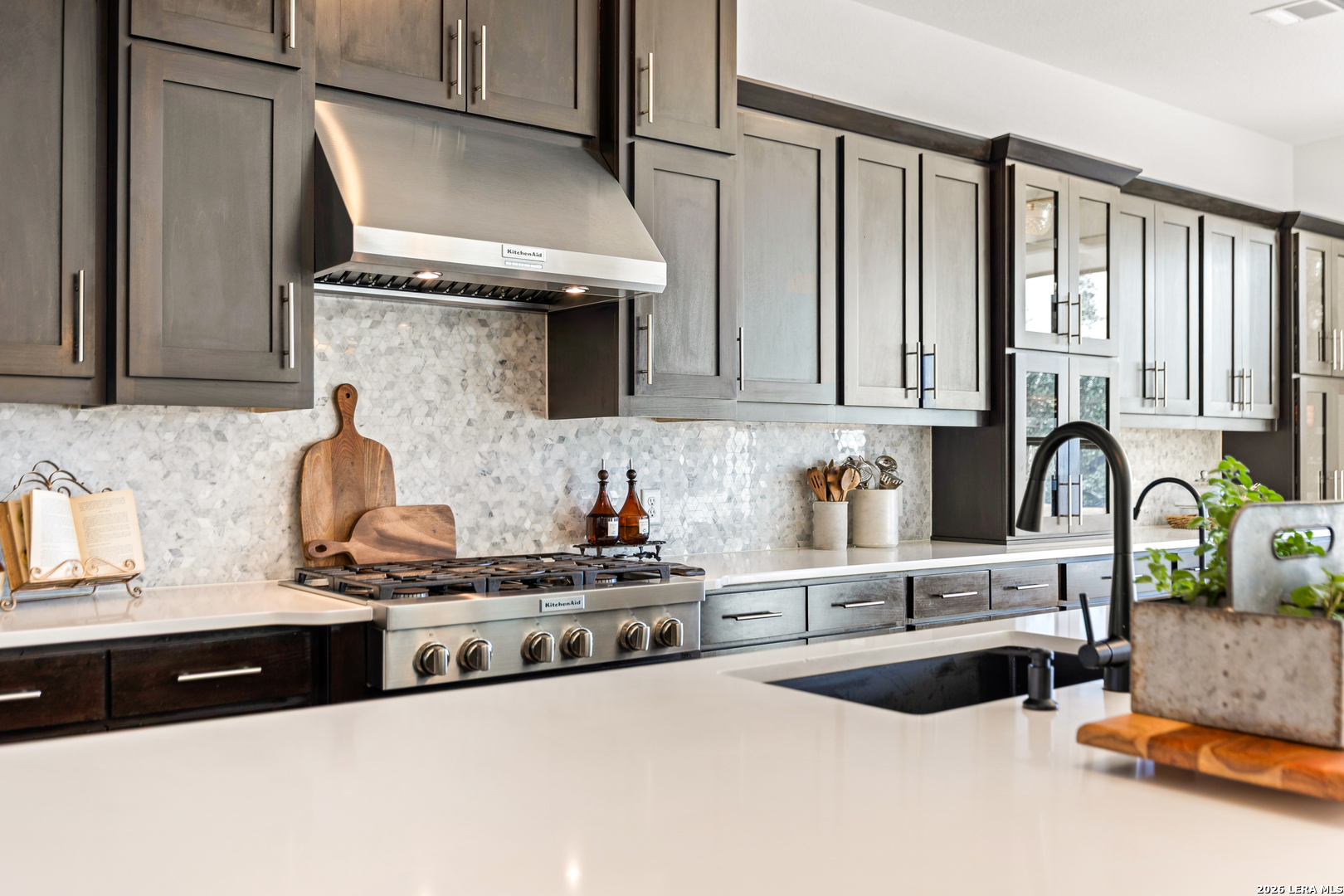 Experience elevated living in this meticulously redesigned luxury home offering panoramic Hill Country views from a premium elevated lot. Thoughtfully re-imagined by a professional architect, the enhanced open-concept floorplan provides seamless flow, expanded living spaces, and flexible functionality ideal for modern living and entertaining. Designed for today's lifestyle, this home features two private home offices perfect for remote work, a formal dining room with an elegant dry bar, and multiple spacious living areas. The expansive second-floor media room creates the ultimate entertainment space for movie nights, game days, or hosting large gatherings. High-end finishes are showcased throughout, including custom millwork, designer lighting, premium flooring, and bespoke cabinetry. The gourmet kitchen features exquisite stone countertops, abundant prep space, and curated design details that blend luxury with performance. The expansive primary suite serves as a private retreat with dual custom walk-in closets and a spa-inspired bathroom designed for relaxation. Additional living spaces offer comfort and flexibility for family and guests. Step outside to a true backyard oasis featuring a resort-style pool, extensive hardscape, and a professionally designed oversized pergola that defines luxury outdoor living. The elevated setting captures breathtaking Hill Country views, stunning sunsets, and exceptional privacy. This luxury home with pool, media room, two offices, dual custom closets, formal dining, and panoramic views offers the perfect blend of architectural design, modern functionality, and resort-style outdoor living.