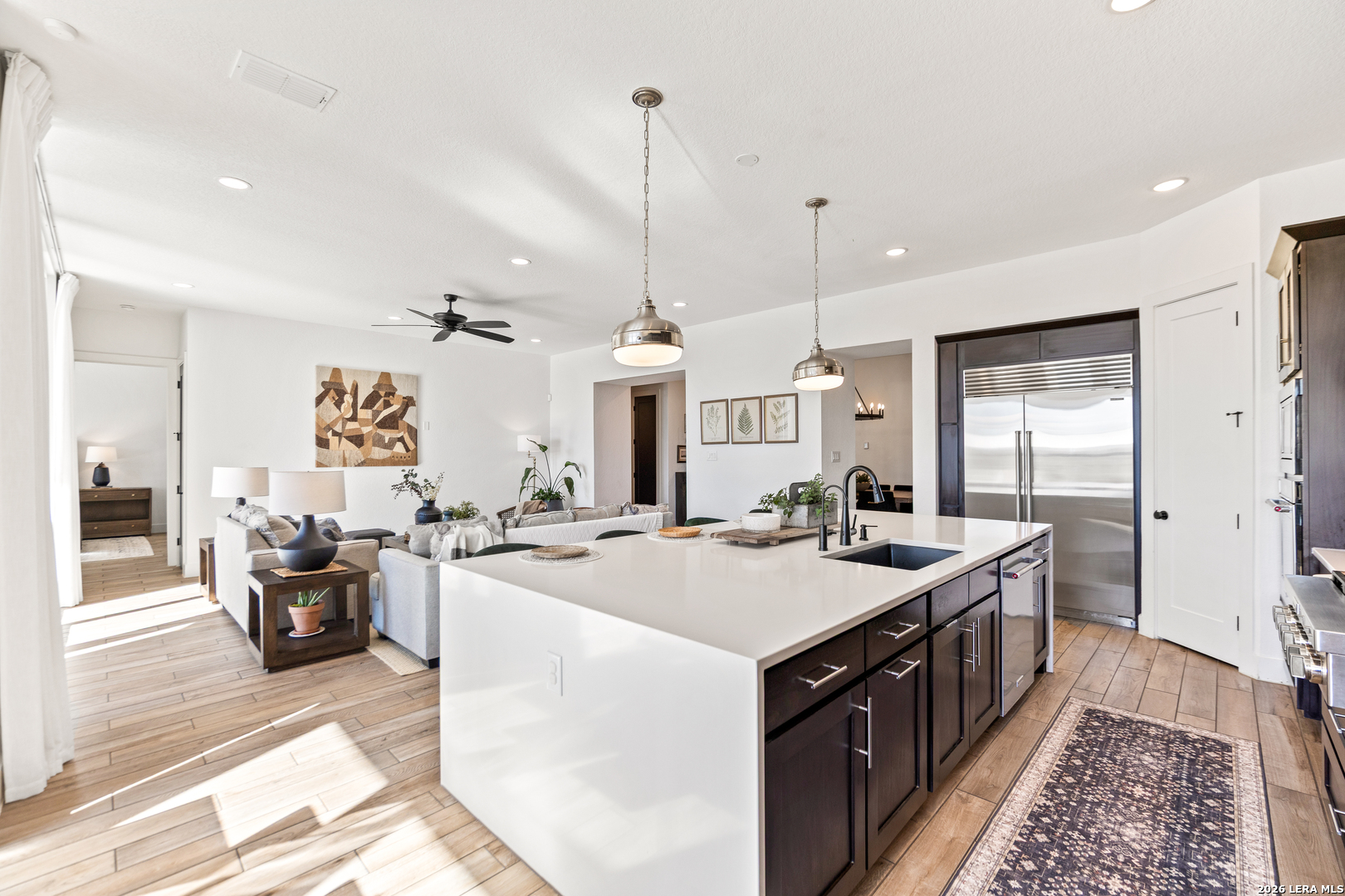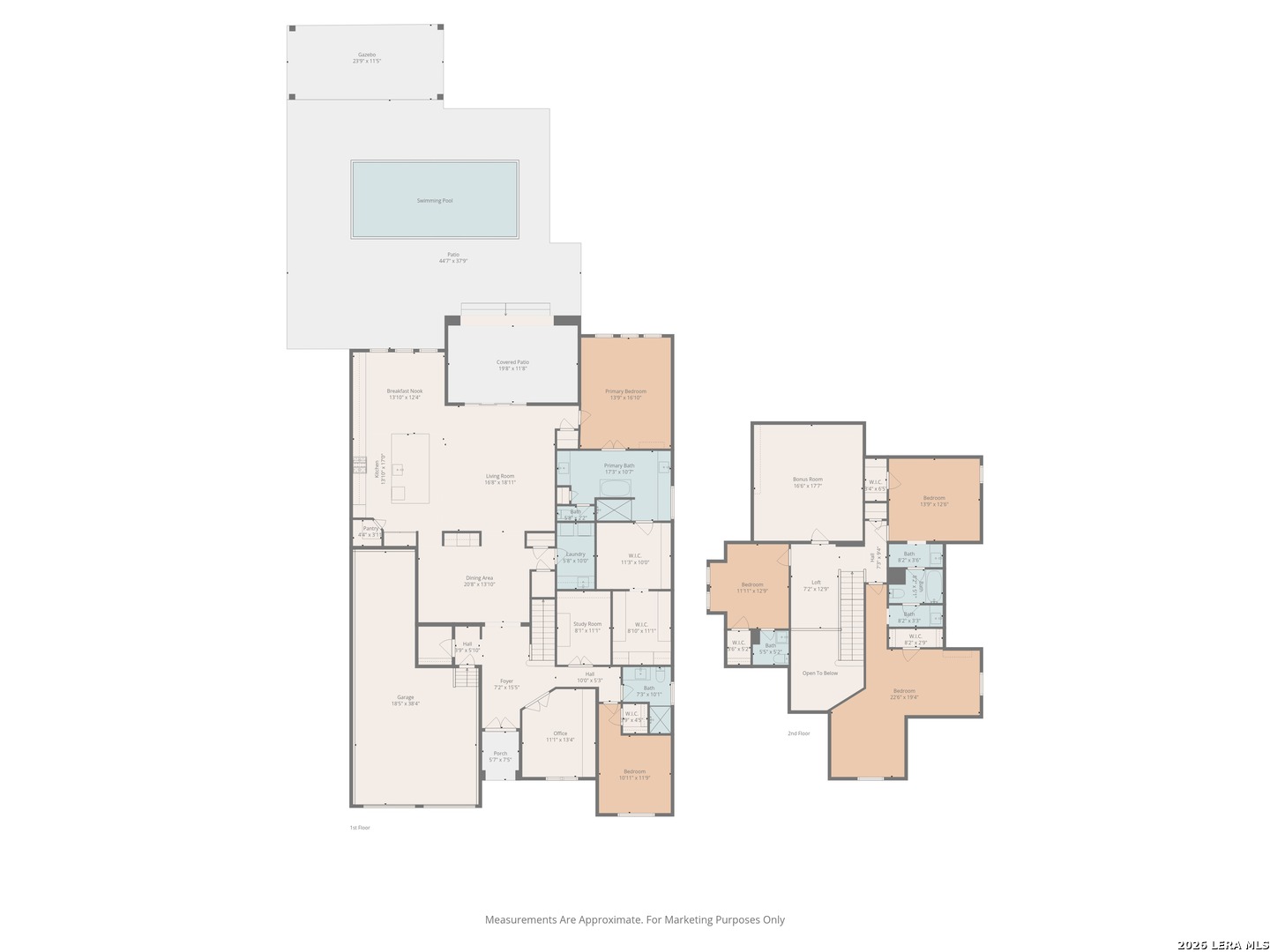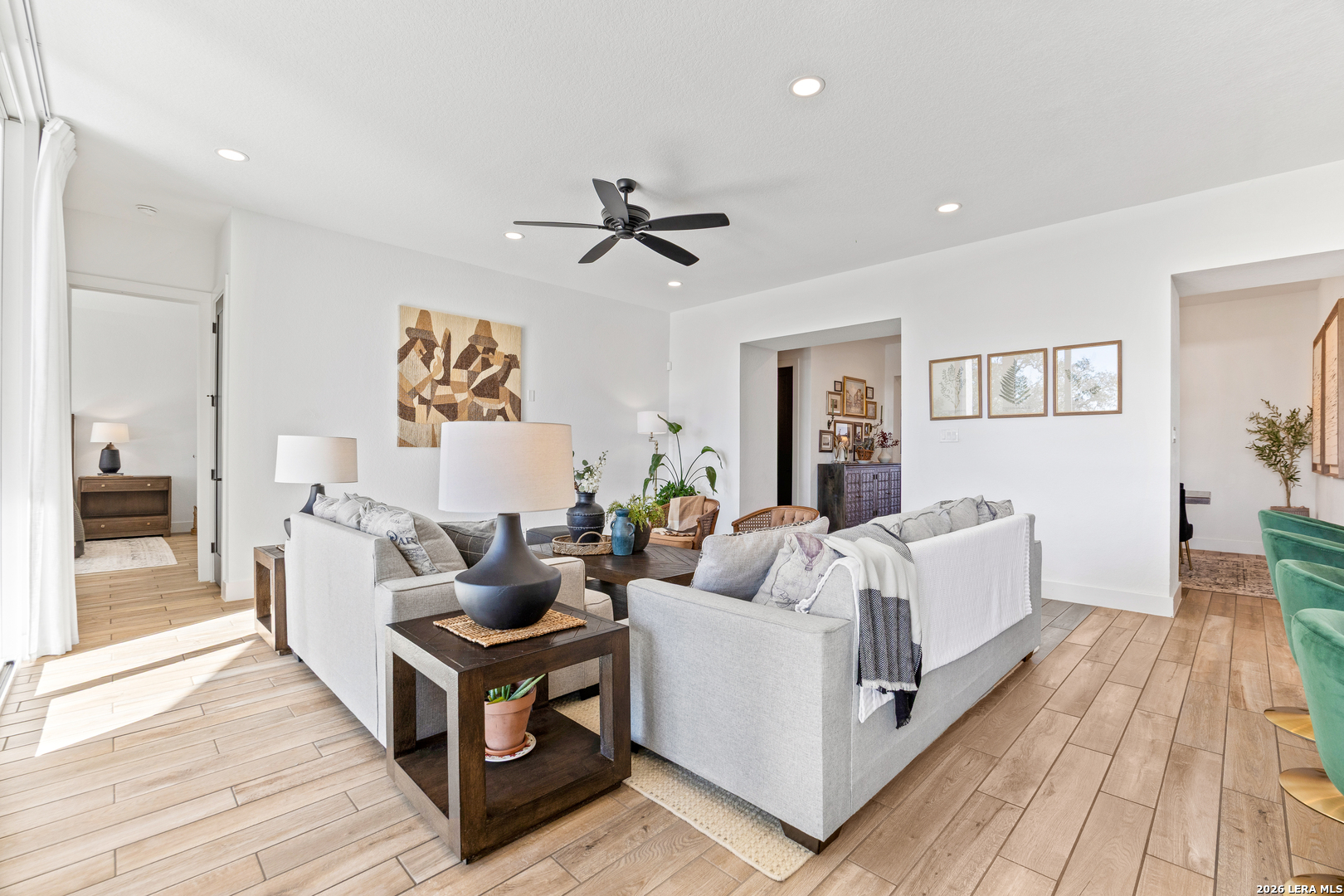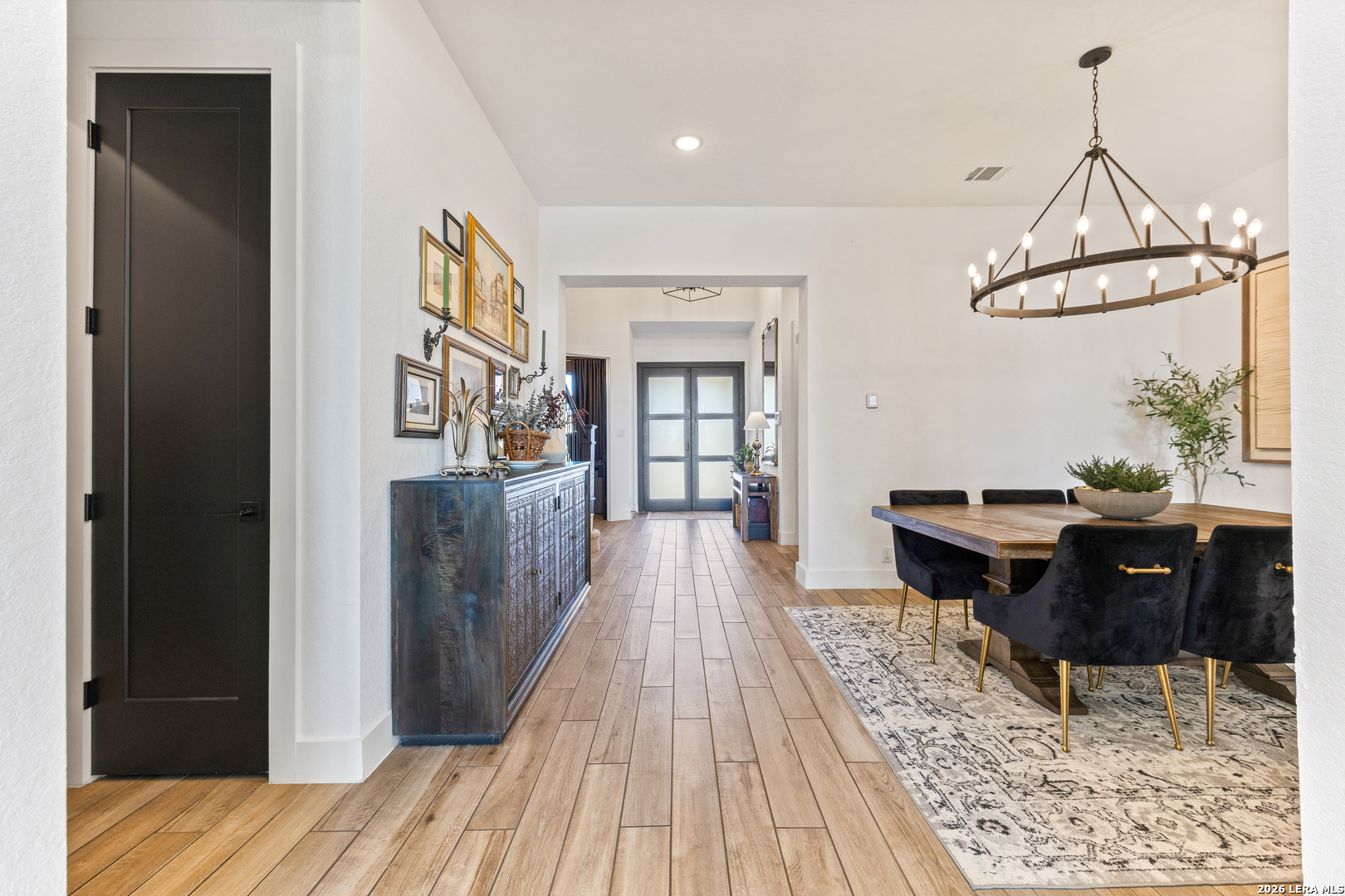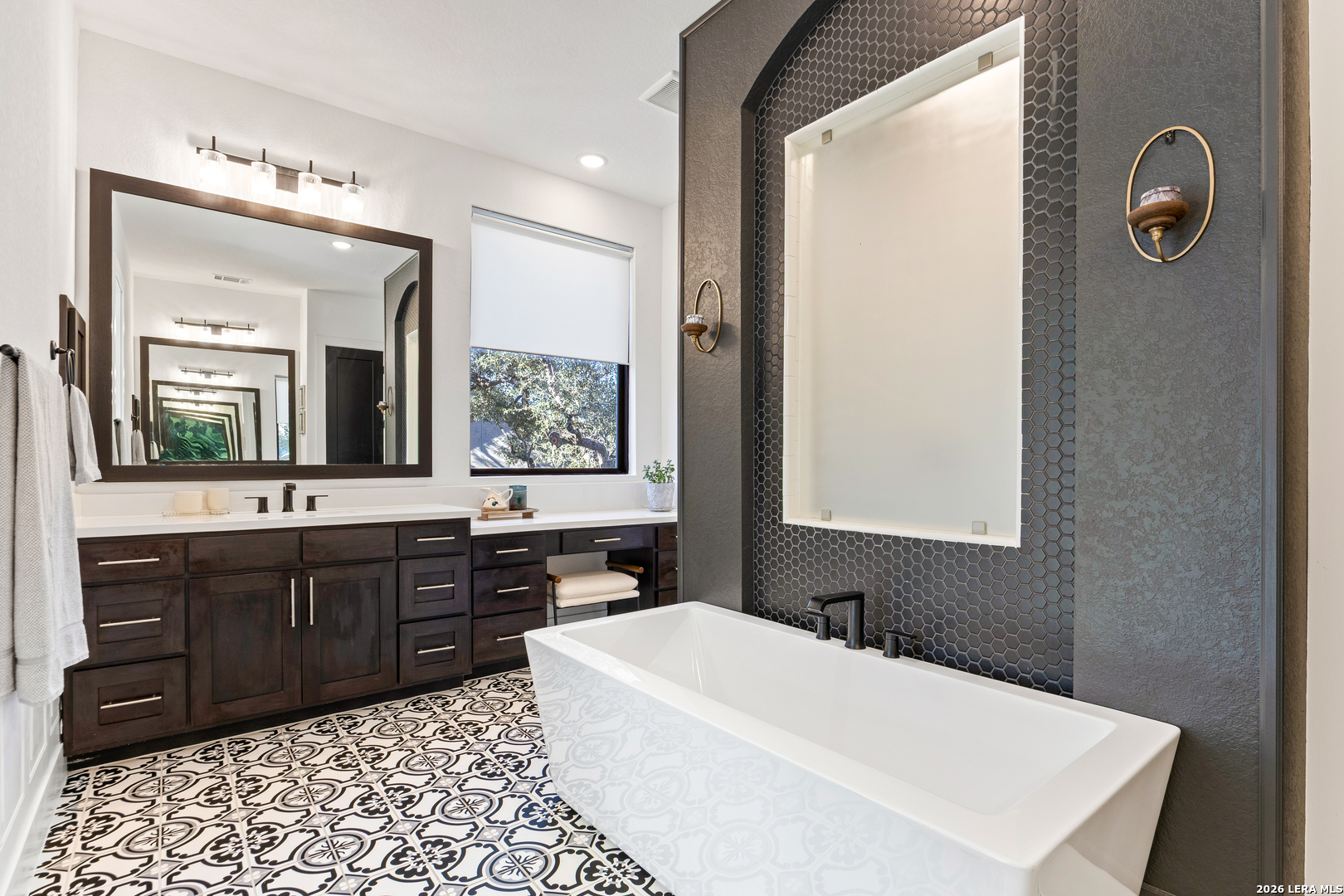 Experience elevated living in this meticulously redesigned luxury home offering panoramic Hill Country views from a premium elevated lot. Thoughtfully re-imagined by a professional architect, the enhanced open-concept floorplan provides seamless flow, expanded living spaces, and flexible functionality ideal for modern living and entertaining. Designed for today's lifestyle, this home features two private home offices perfect for remote work, a formal dining room with an elegant dry bar, and multiple spacious living areas. The expansive second-floor media room creates the ultimate entertainment space for movie nights, game days, or hosting large gatherings. High-end finishes are showcased throughout, including custom millwork, designer lighting, premium flooring, and bespoke cabinetry. The gourmet kitchen features exquisite stone countertops, abundant prep space, and curated design details that blend luxury with performance. The expansive primary suite serves as a private retreat with dual custom walk-in closets and a spa-inspired bathroom designed for relaxation. Additional living spaces offer comfort and flexibility for family and guests. Step outside to a true backyard oasis featuring a resort-style pool, extensive hardscape, and a professionally designed oversized pergola that defines luxury outdoor living. The elevated setting captures breathtaking Hill Country views, stunning sunsets, and exceptional privacy. This luxury home with pool, media room, two offices, dual custom closets, formal dining, and panoramic views offers the perfect blend of architectural design, modern functionality, and resort-style outdoor living.