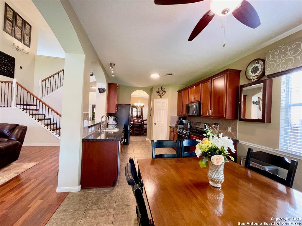 Beautiful home located in Cinco Ranch. Look no more this beauty welcomes you home with a nice entry porch and a manicured front yard. The spacious floor plan offers 4 bedrooms, study and game room upstairs. Beautiful high ceilings with elegant light fixtures. A desirable study/home office and elegant french doors on first floor. Primary bedroom with vaulted ceiling and ensuite bathroom with new shower door and walking closet. Stunning wood staircase and beautiful costume accents adds elegance to this home. Beautiful tile and wood looking floors. It has NO CARPET. Fridge, washer and dryer included. HOME RECENTLY PAINTED. Large backyard with covered patio with nice lights and ceiling fan. This beauty is located in walking distance to Tompkins High School and zoned to the acclaimed Katy ISD schools. Enjoy the Cinco Ranch lifestyle with access many pools, tennis courts, parks, walking trails, lakes and playgrounds. Don't miss this opportunity and request your showing.