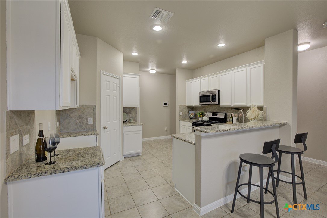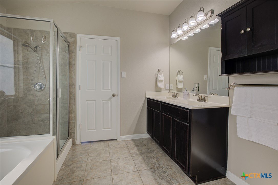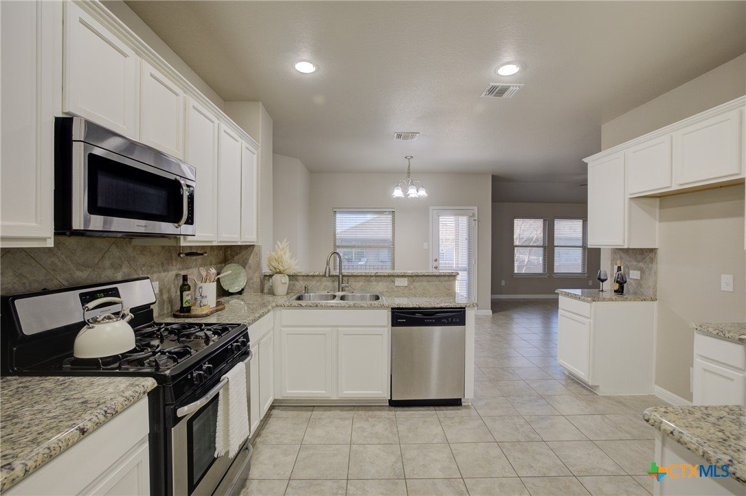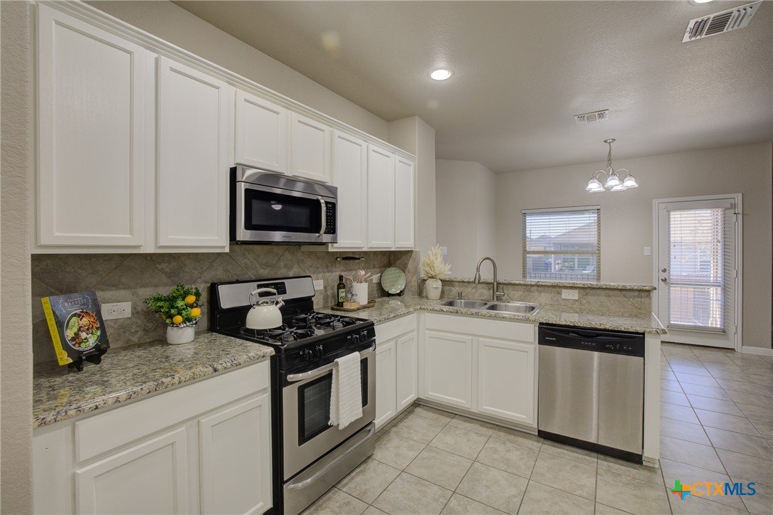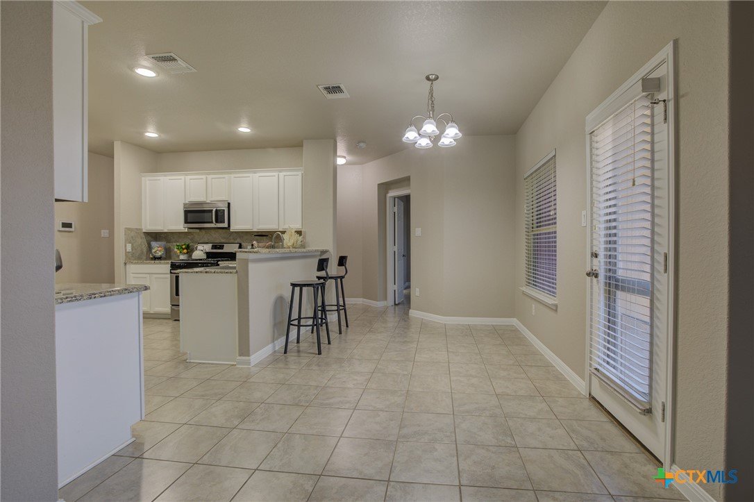 Very popular Dr Horton floorplan, loved by active families with 4 bedrooms with privacy for primary and guest bedrooms. The study/office is quiet and away from the family areas, use as guest room/5th bedroom and conducive for someone that works from home. Floors are all tile and wood/vinyl planks, no carpet. You will love the centrally located kitchen with granite and cook's delight with gas range with crisp white cabinets and big walk in pantry. Master suite separate from all with a soaking tub and separate shower, double vanity and spacious closet. Kids will love the great schools that flow into the new middle and Long Creek High School. Big HEB just minutes away.