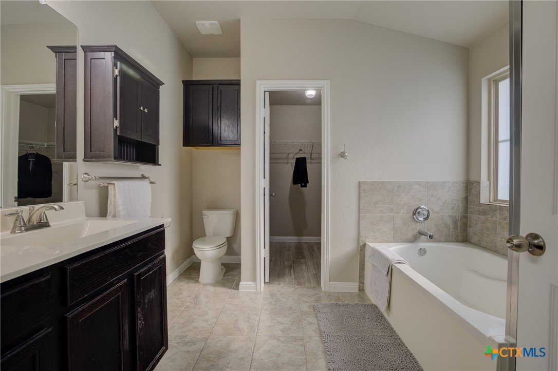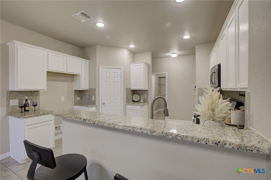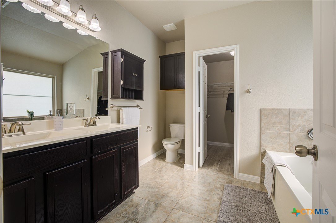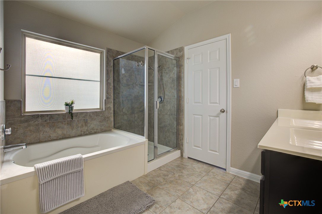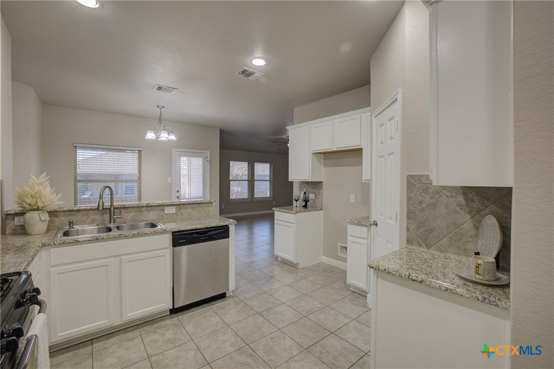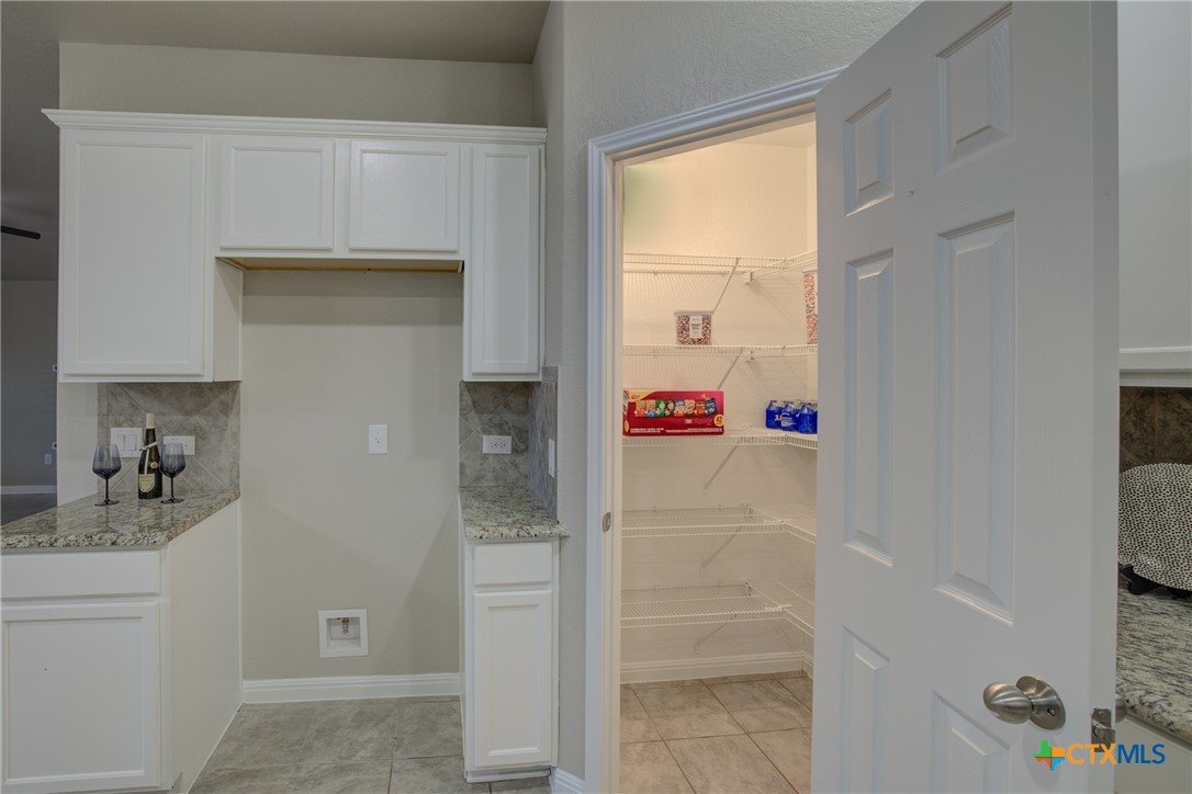 Very popular Dr Horton floorplan, loved by active families with 4 bedrooms with privacy for primary and guest bedrooms. The study/office is quiet and away from the family areas, use as guest room/5th bedroom and conducive for someone that works from home. Floors are all tile and wood/vinyl planks, no carpet. You will love the centrally located kitchen with granite and cook's delight with gas range with crisp white cabinets and big walk in pantry. Master suite separate from all with a soaking tub and separate shower, double vanity and spacious closet. Kids will love the great schools that flow into the new middle and Long Creek High School. Big HEB just minutes away.