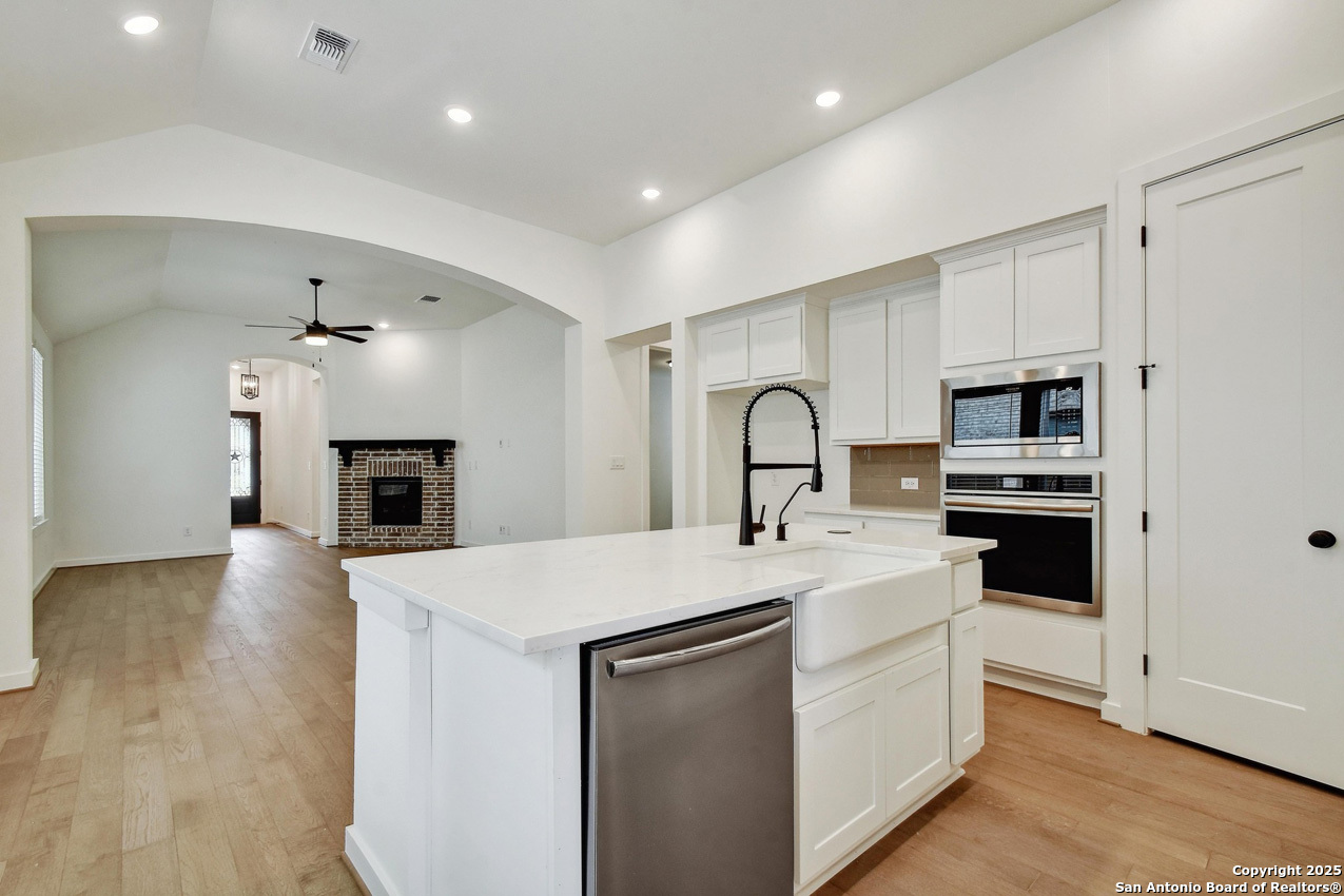 A beautifully laid out 1 story home, featuring a cozy fireplace in the family room and a gourmet kitchen with tons of cabinets for convenient storage. The open concept home has such a great flow and is set up for easy living. The extended outdoor living is a perfect retreat for al fresco dining or relaxation. You won't be disappointed in the charm and elegant feel of this home!!