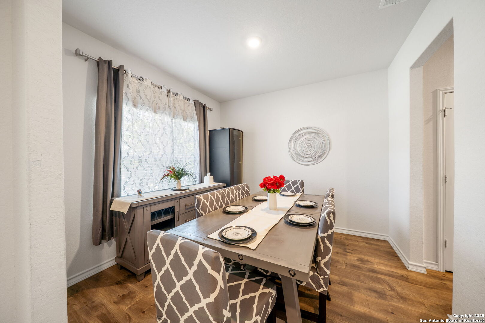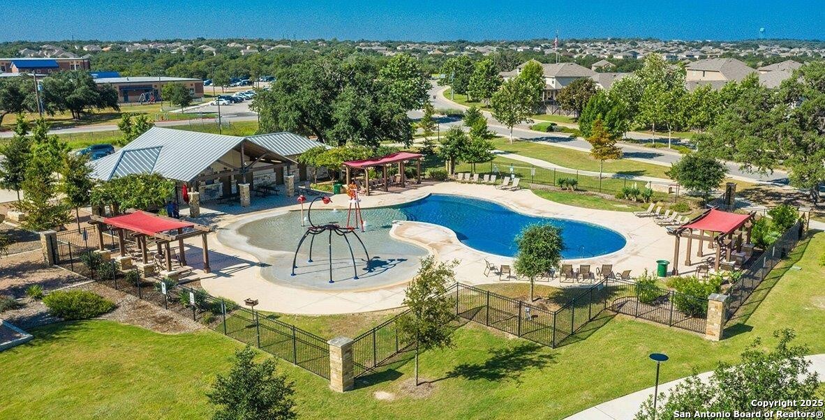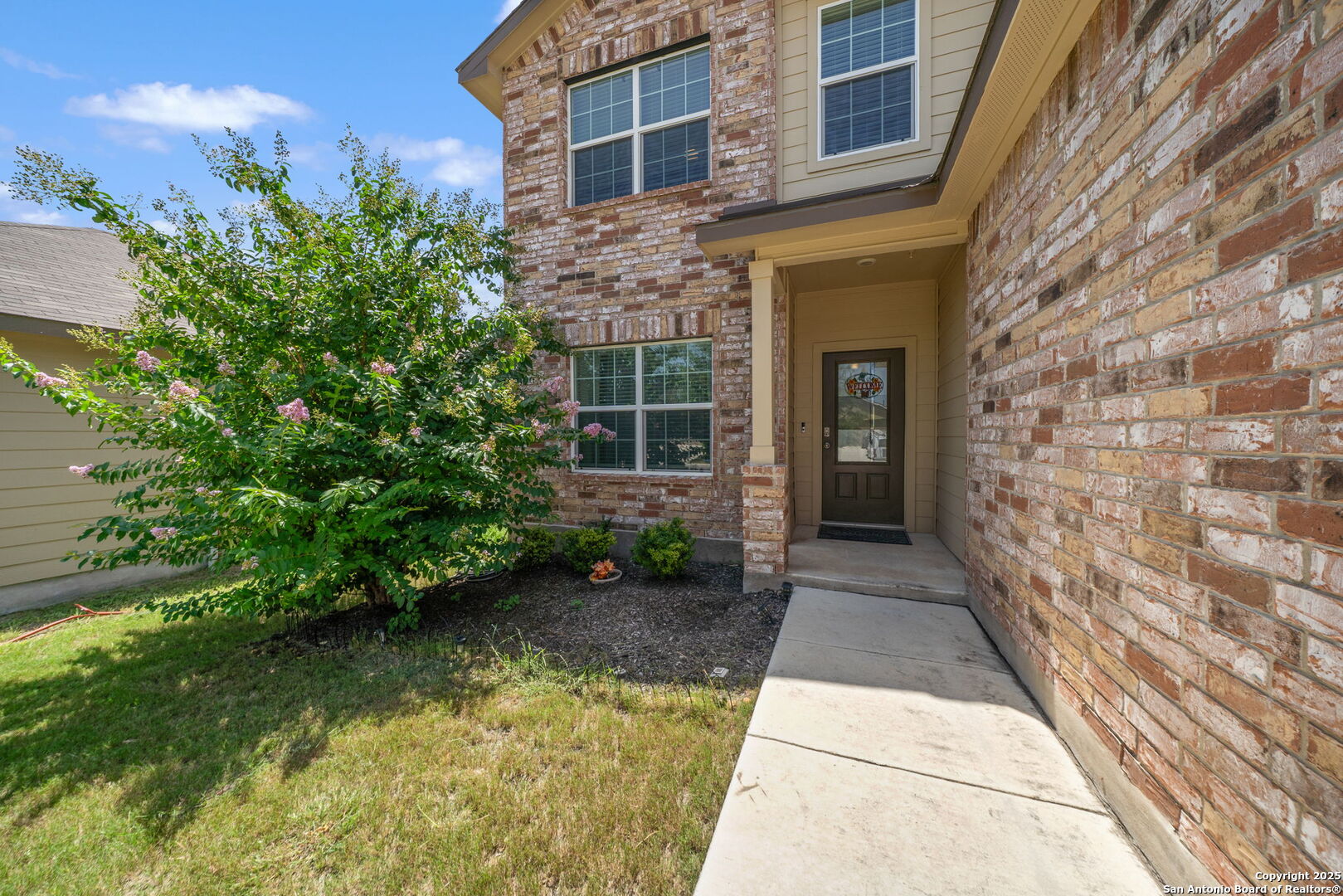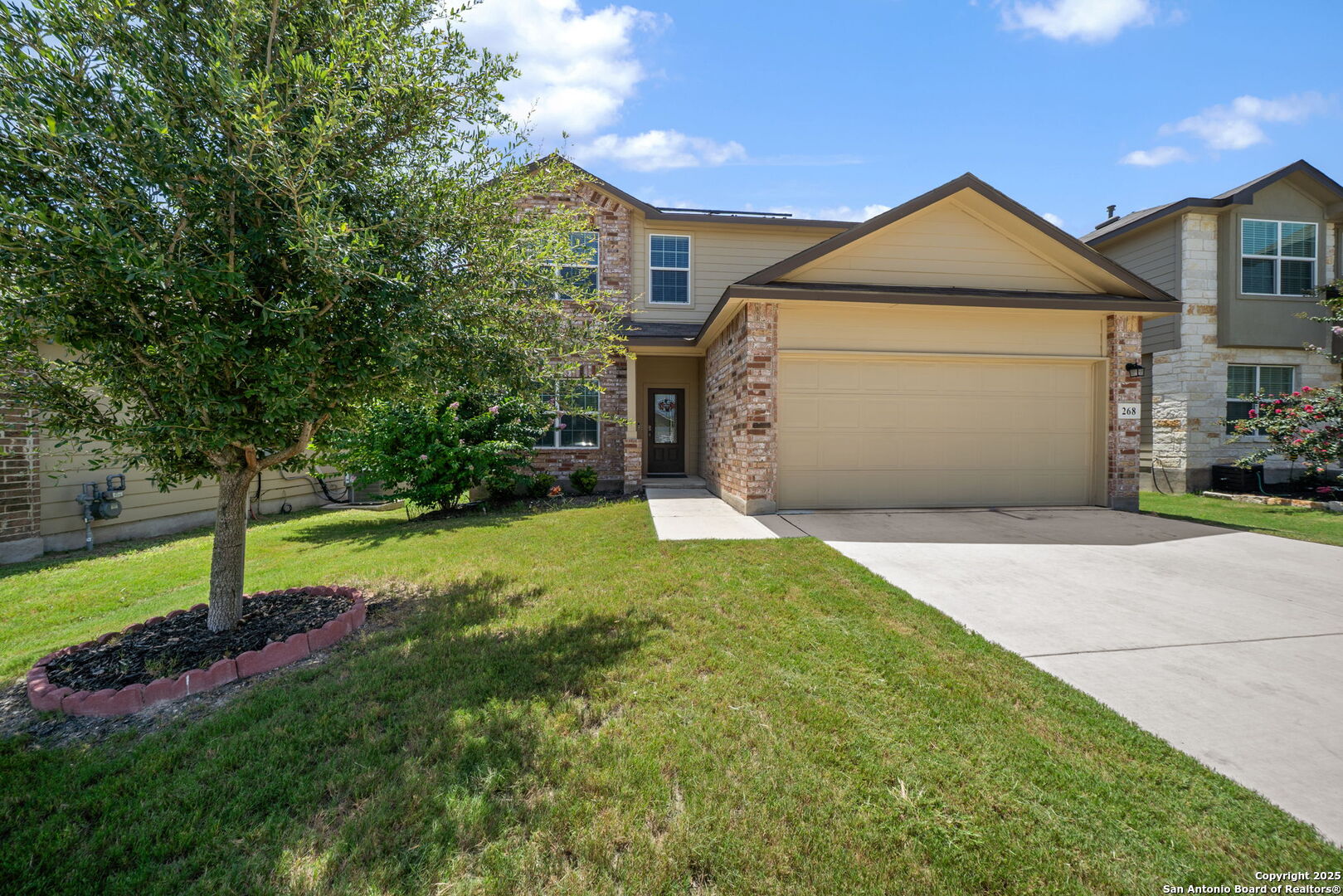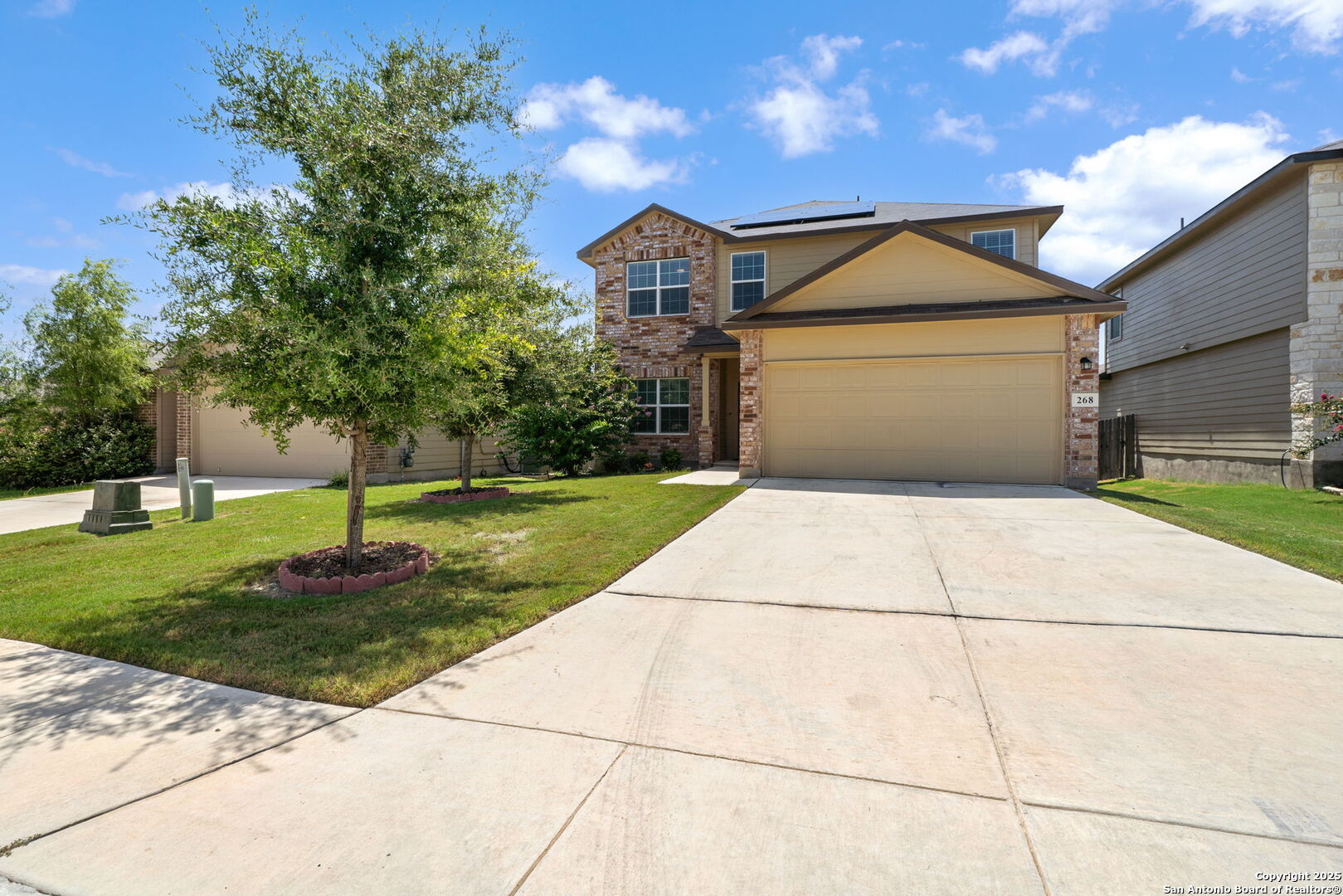Welcome to this meticulously maintained 5-bedroom, 3.5-bathroom home located in the highly desired Redbird Ranch community. Offering 2,715 square feet of thoughtfully designed living space, this home features soaring ceilings, large windows that provide abundant natural light, and an open floor plan with wood-look luxury vinyl flooring throughout. A separate dining room adds elegance and functionality, perfect for entertaining or family gatherings. The kitchen is a chef's delight, complete with stainless steel appliances, a large island, custom tile backsplash, and a walk-in pantry. The spacious primary suite, located on the main level, includes large windows, a luxurious en-suite bathroom with a vanity area, double sinks, a garden tub, separate shower, and a generous walk-in closet. Upstairs, you'll find four additional bedrooms, two full bathrooms, and a large game room-ideal for relaxation or play. Step outside to a covered patio, a privacy fence, and a full irrigation system that makes lawn care a breeze. This home also comes with fully paid-off solar panels, providing energy efficiency and long-term savings. Conveniently located near JBSA-Lackland, SeaWorld, shopping, dining, and major highways, this home offers comfort, style, and convenience in one of the area's most sought-after communities.