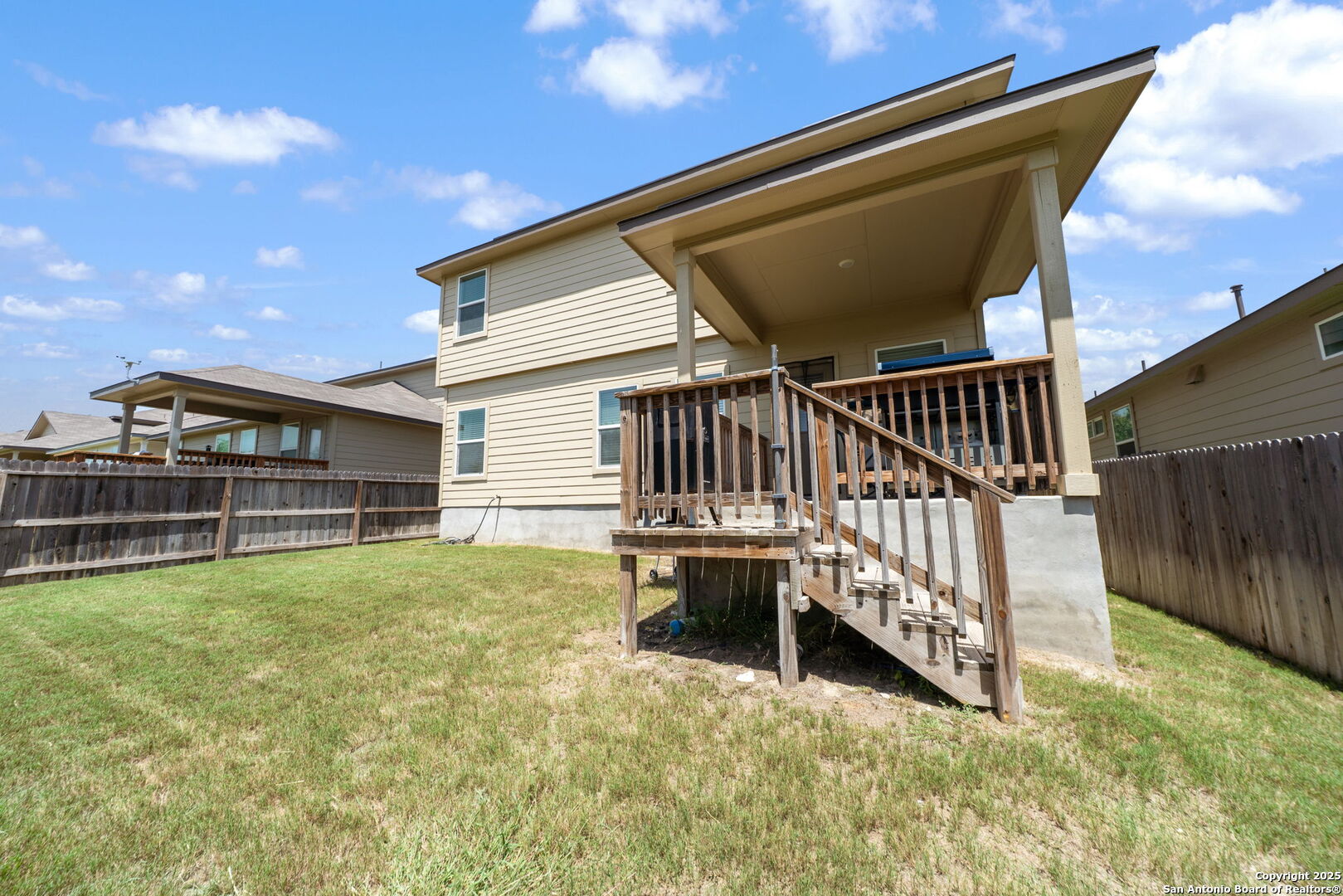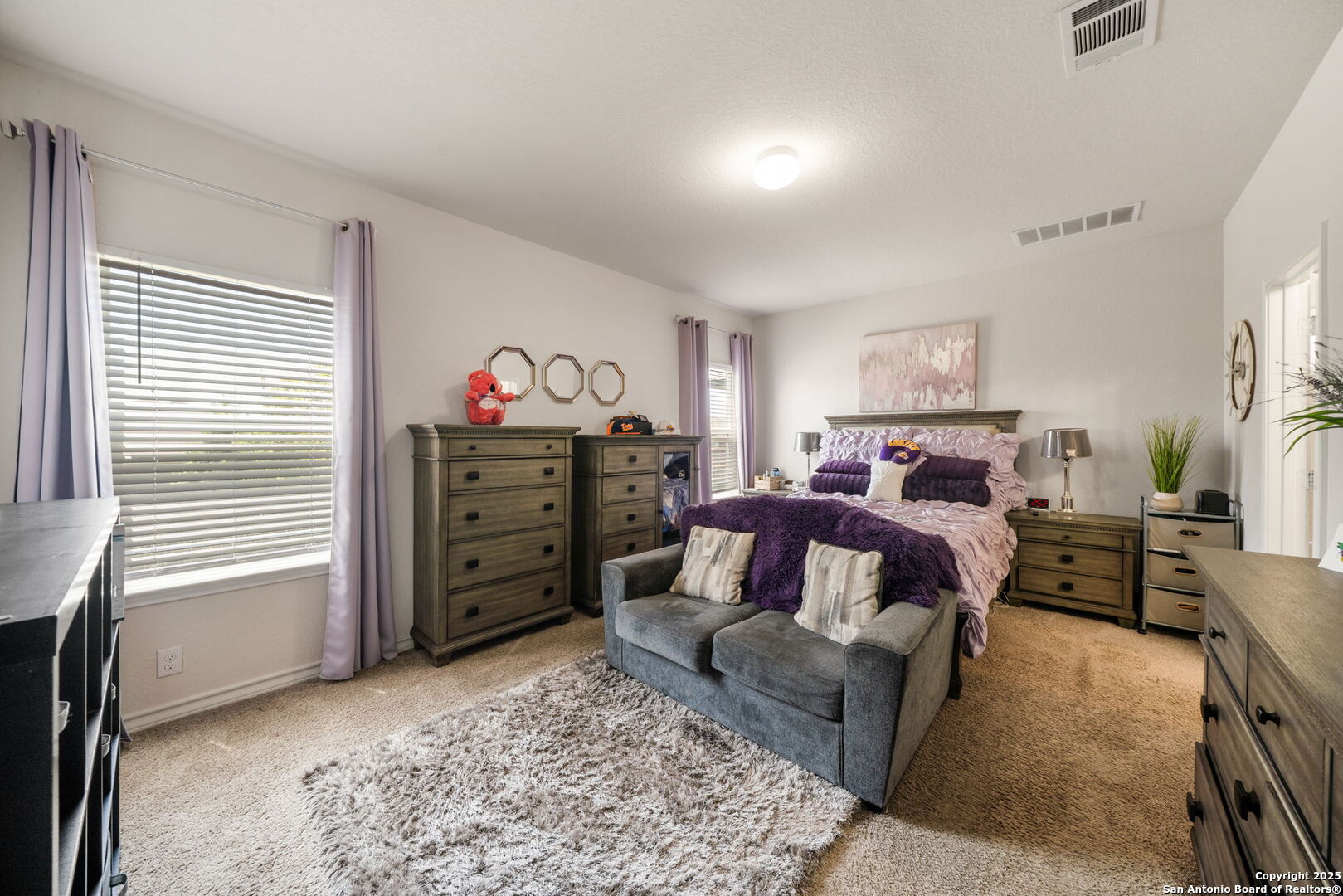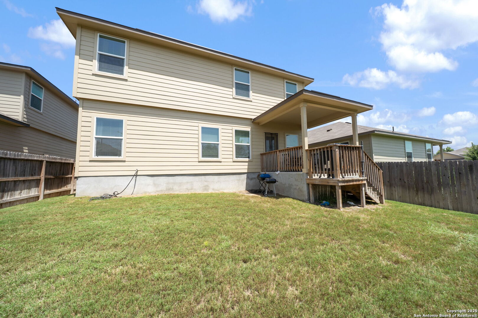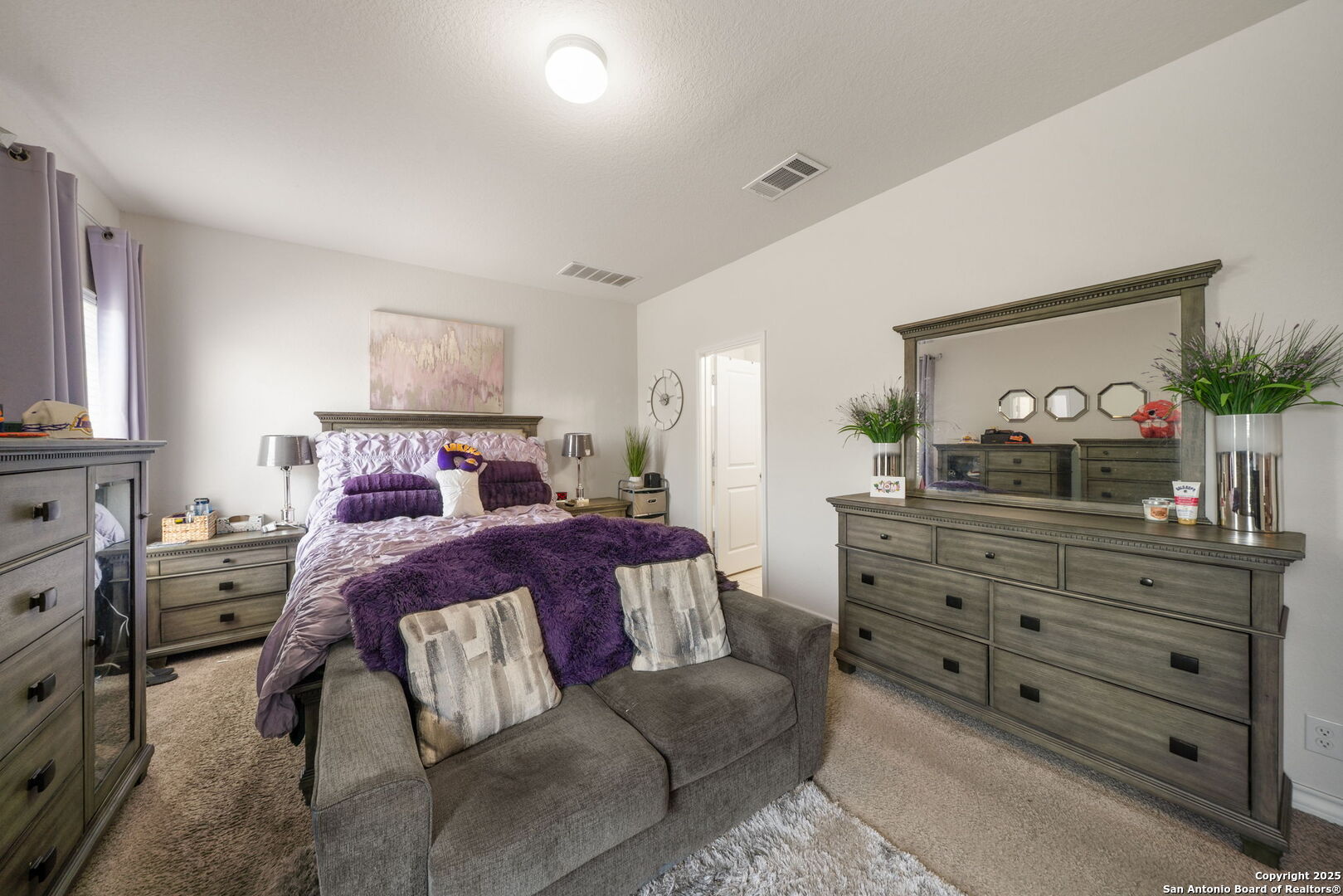 Welcome to this meticulously maintained 5-bedroom, 3.5-bathroom home located in the highly desired Redbird Ranch community. Offering 2,715 square feet of thoughtfully designed living space, this home features soaring ceilings, large windows that provide abundant natural light, and an open floor plan with wood-look luxury vinyl flooring throughout. A separate dining room adds elegance and functionality, perfect for entertaining or family gatherings. The kitchen is a chef's delight, complete with stainless steel appliances, a large island, custom tile backsplash, and a walk-in pantry. The spacious primary suite, located on the main level, includes large windows, a luxurious en-suite bathroom with a vanity area, double sinks, a garden tub, separate shower, and a generous walk-in closet. Upstairs, you'll find four additional bedrooms, two full bathrooms, and a large game room-ideal for relaxation or play. Step outside to a covered patio, a privacy fence, and a full irrigation system that makes lawn care a breeze. This home also comes with fully paid-off solar panels, providing energy efficiency and long-term savings. Conveniently located near JBSA-Lackland, SeaWorld, shopping, dining, and major highways, this home offers comfort, style, and convenience in one of the area's most sought-after communities.