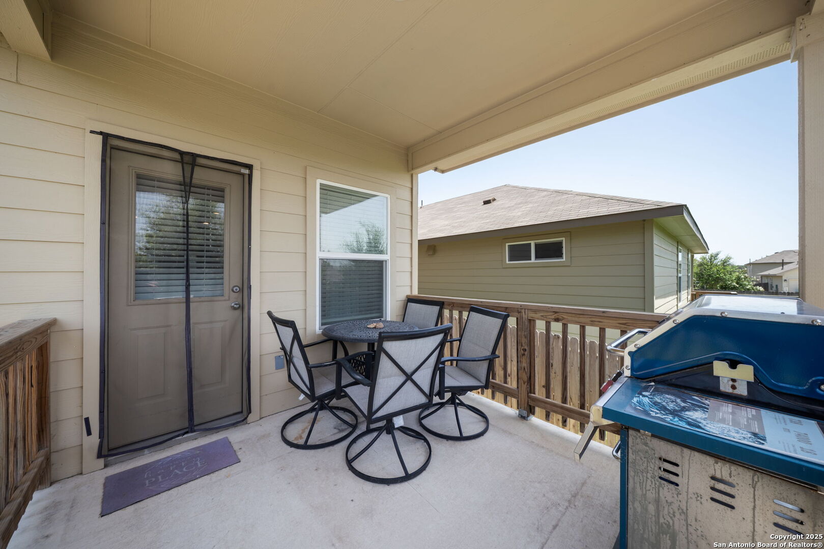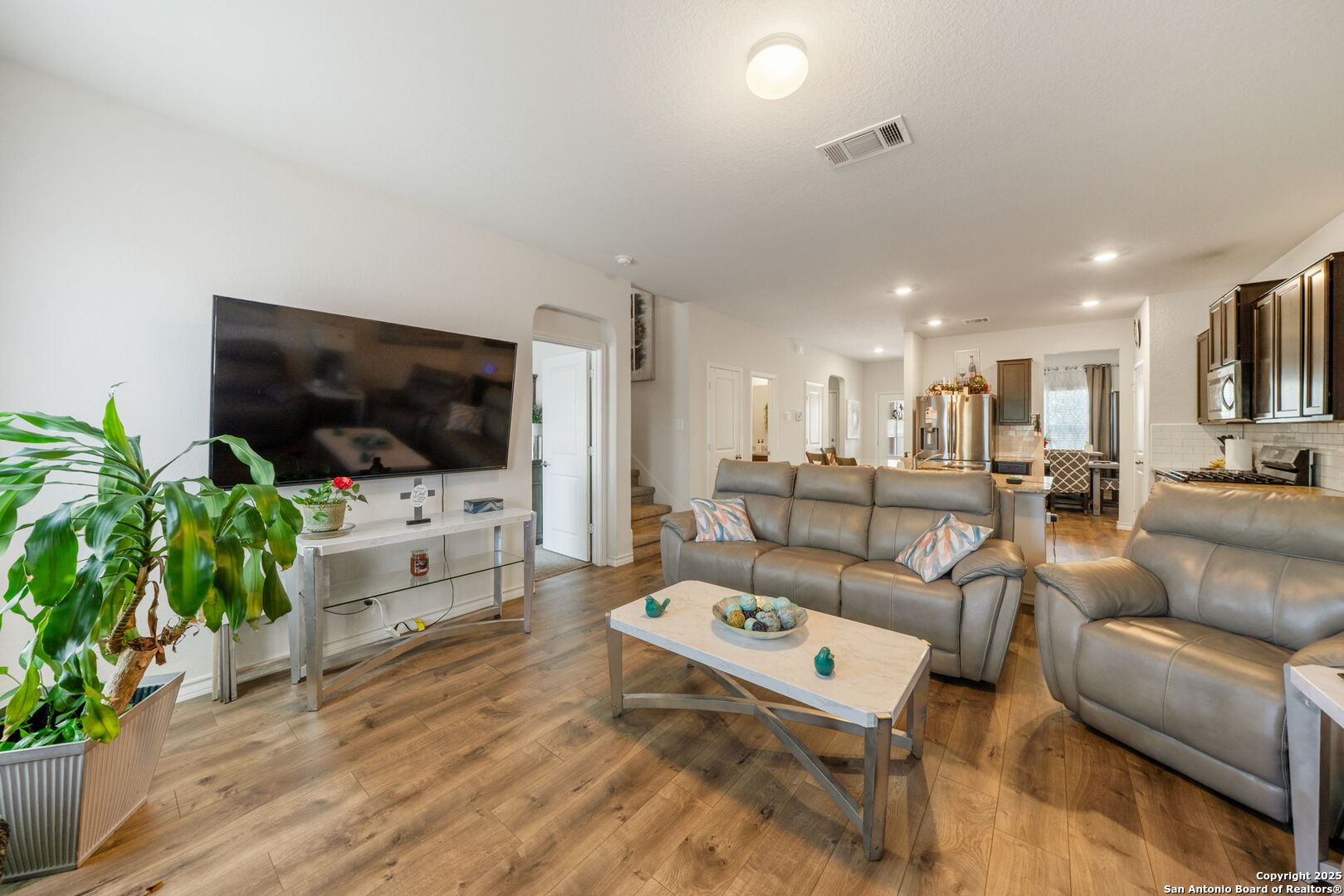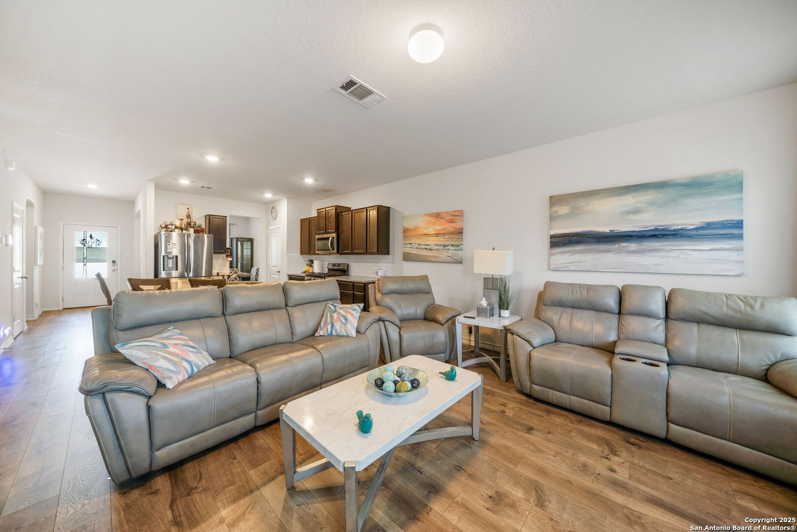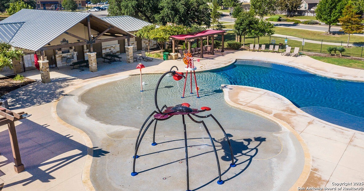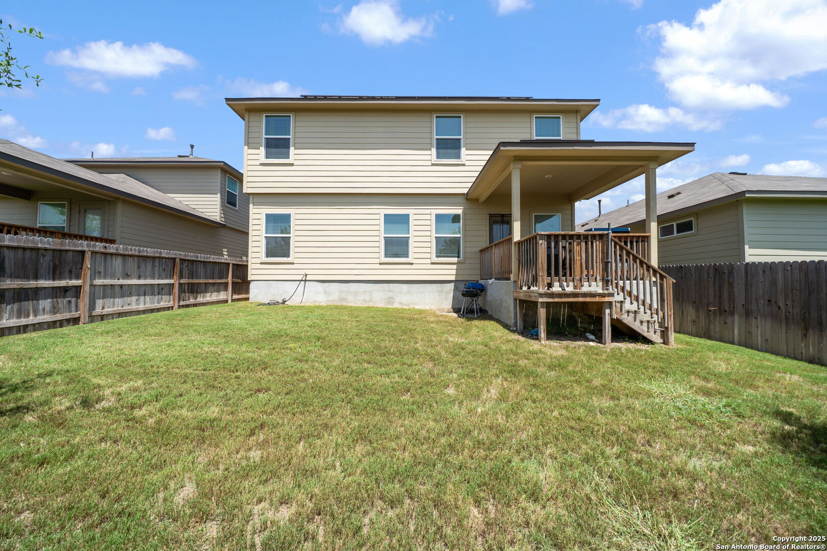 Welcome to this meticulously maintained 5-bedroom, 3.5-bathroom home located in the highly desired Redbird Ranch community. Offering 2,715 square feet of thoughtfully designed living space, this home features soaring ceilings, large windows that provide abundant natural light, and an open floor plan with wood-look luxury vinyl flooring throughout. A separate dining room adds elegance and functionality, perfect for entertaining or family gatherings. The kitchen is a chef's delight, complete with stainless steel appliances, a large island, custom tile backsplash, and a walk-in pantry. The spacious primary suite, located on the main level, includes large windows, a luxurious en-suite bathroom with a vanity area, double sinks, a garden tub, separate shower, and a generous walk-in closet. Upstairs, you'll find four additional bedrooms, two full bathrooms, and a large game room-ideal for relaxation or play. Step outside to a covered patio, a privacy fence, and a full irrigation system that makes lawn care a breeze. This home also comes with fully paid-off solar panels, providing energy efficiency and long-term savings. Conveniently located near JBSA-Lackland, SeaWorld, shopping, dining, and major highways, this home offers comfort, style, and convenience in one of the area's most sought-after communities.