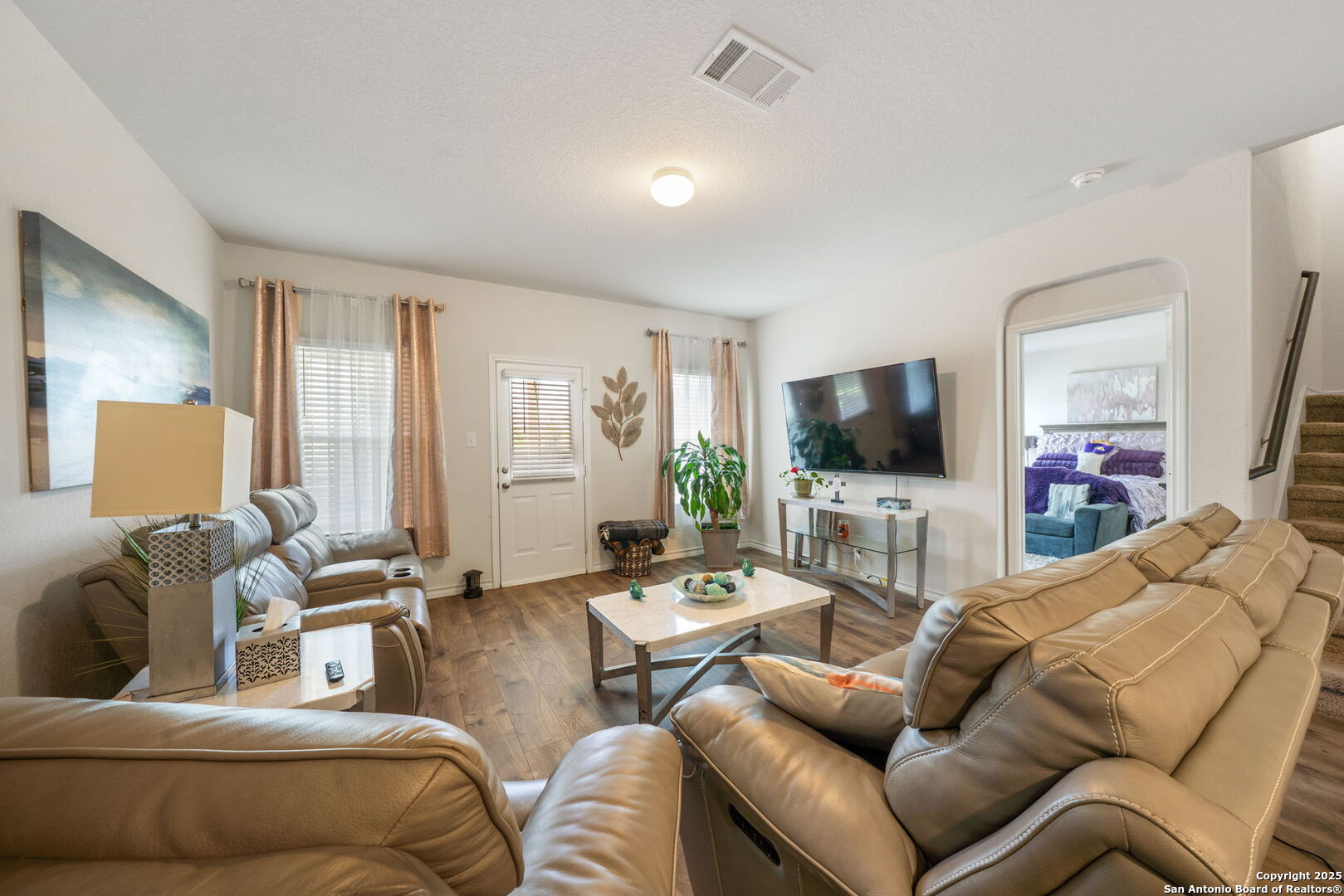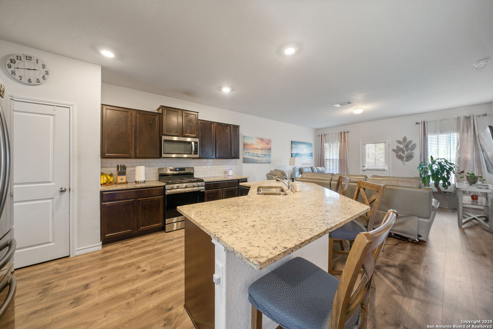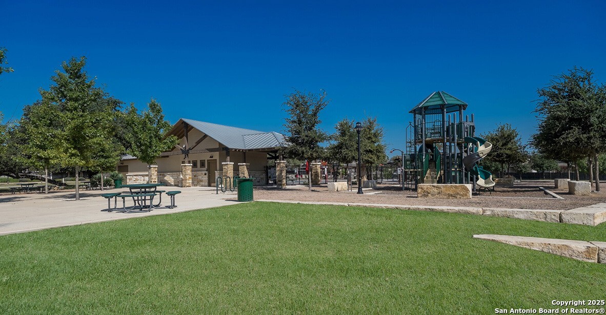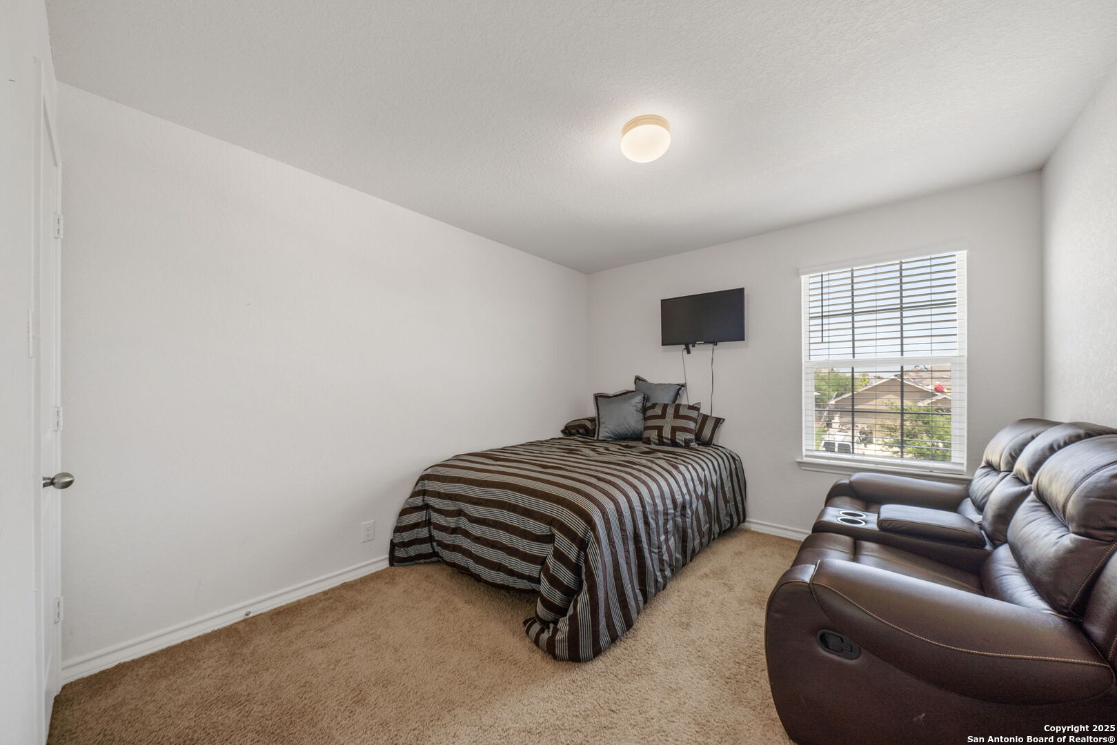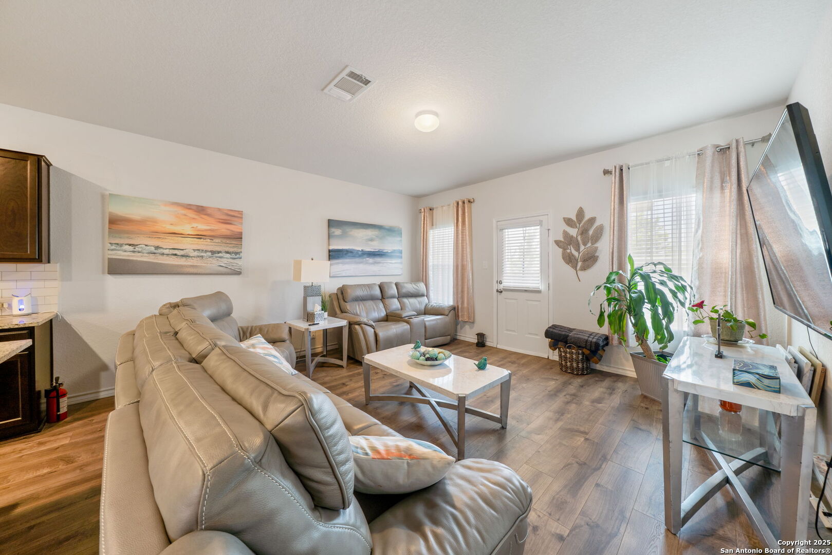 Welcome to this meticulously maintained 5-bedroom, 3.5-bathroom home located in the highly desired Redbird Ranch community. Offering 2,715 square feet of thoughtfully designed living space, this home features soaring ceilings, large windows that provide abundant natural light, and an open floor plan with wood-look luxury vinyl flooring throughout. A separate dining room adds elegance and functionality, perfect for entertaining or family gatherings. The kitchen is a chef's delight, complete with stainless steel appliances, a large island, custom tile backsplash, and a walk-in pantry. The spacious primary suite, located on the main level, includes large windows, a luxurious en-suite bathroom with a vanity area, double sinks, a garden tub, separate shower, and a generous walk-in closet. Upstairs, you'll find four additional bedrooms, two full bathrooms, and a large game room-ideal for relaxation or play. Step outside to a covered patio, a privacy fence, and a full irrigation system that makes lawn care a breeze. This home also comes with fully paid-off solar panels, providing energy efficiency and long-term savings. Conveniently located near JBSA-Lackland, SeaWorld, shopping, dining, and major highways, this home offers comfort, style, and convenience in one of the area's most sought-after communities.