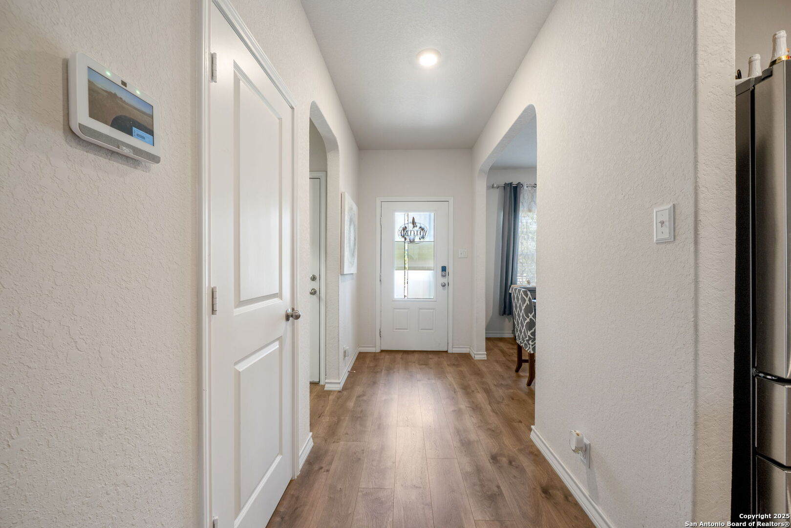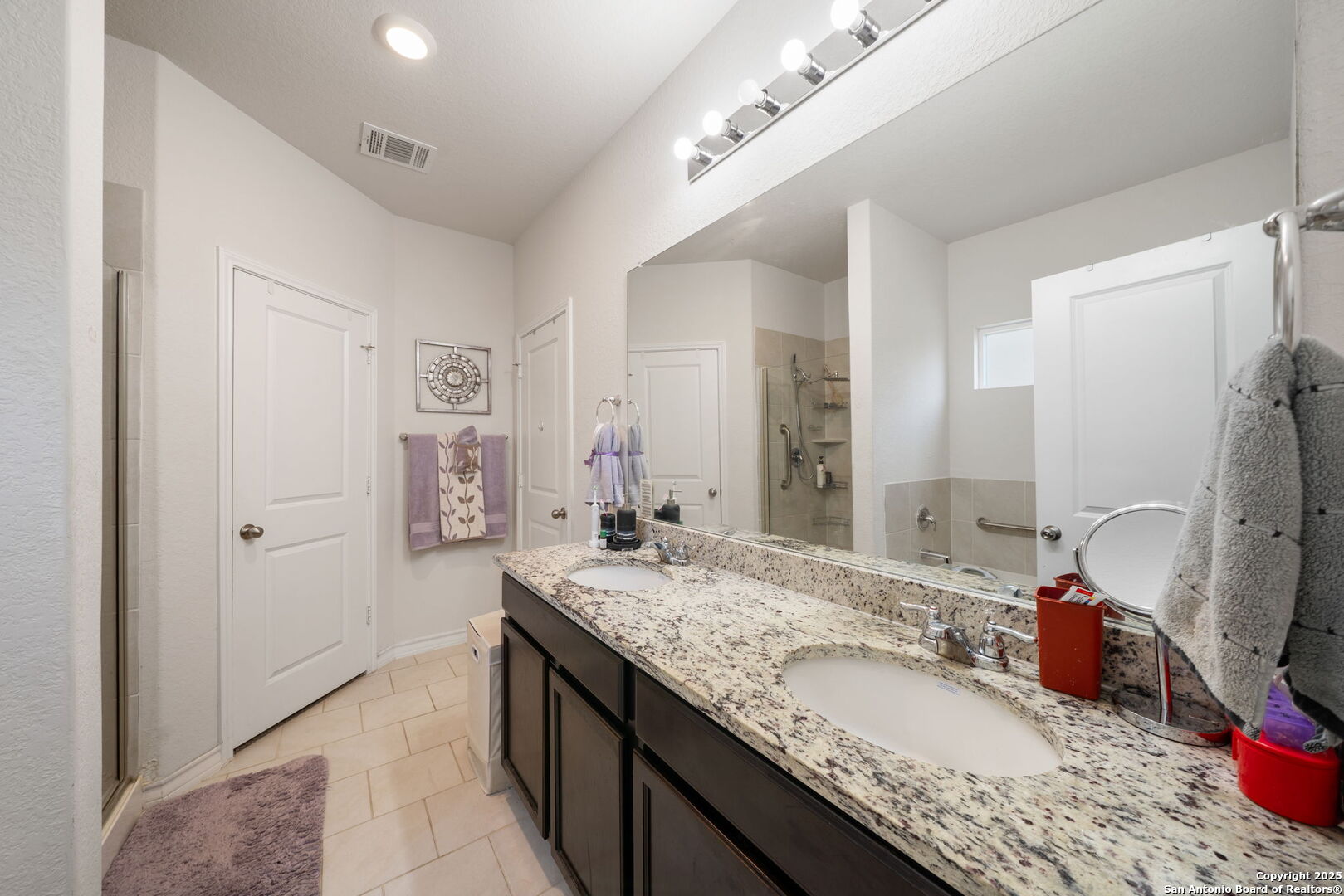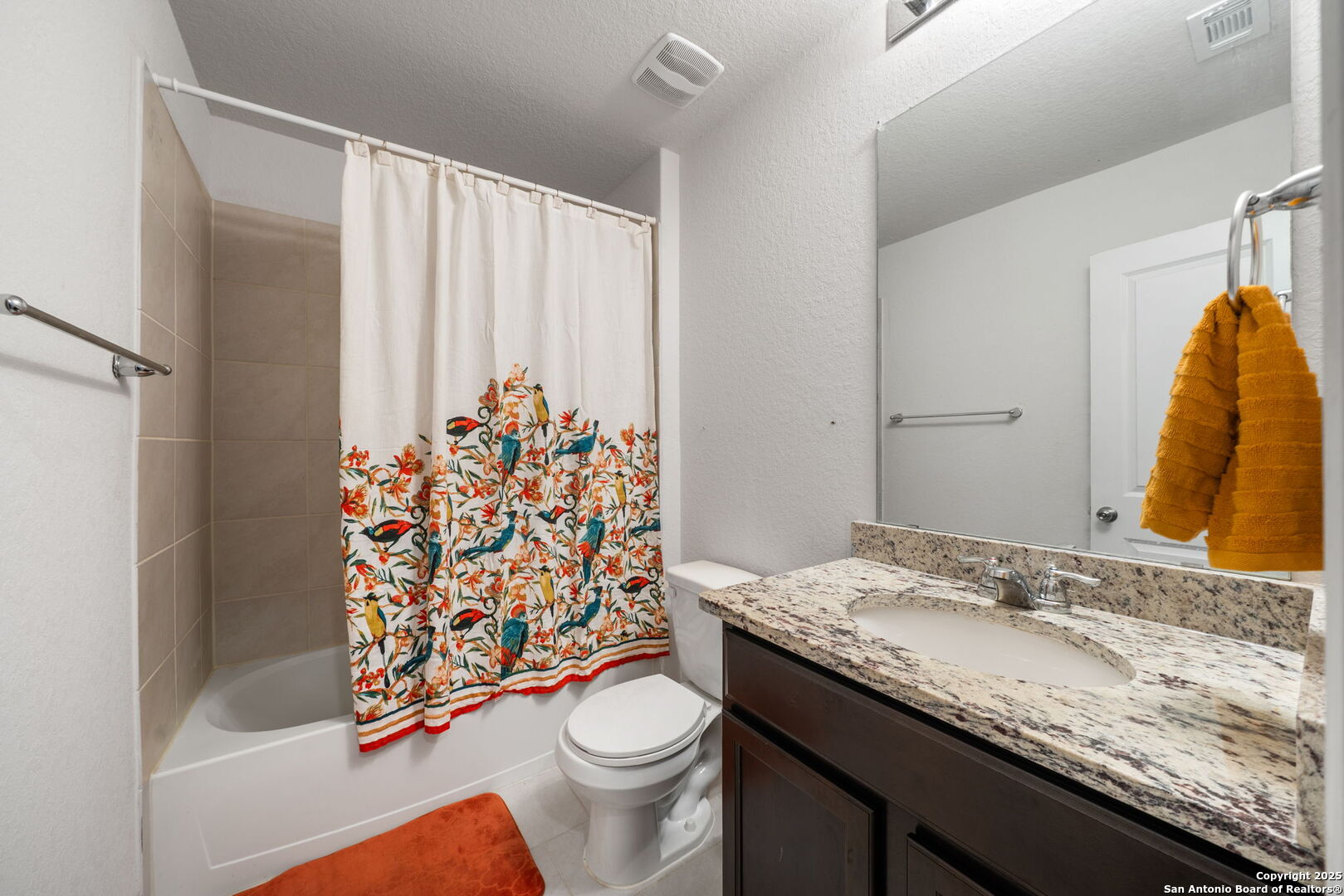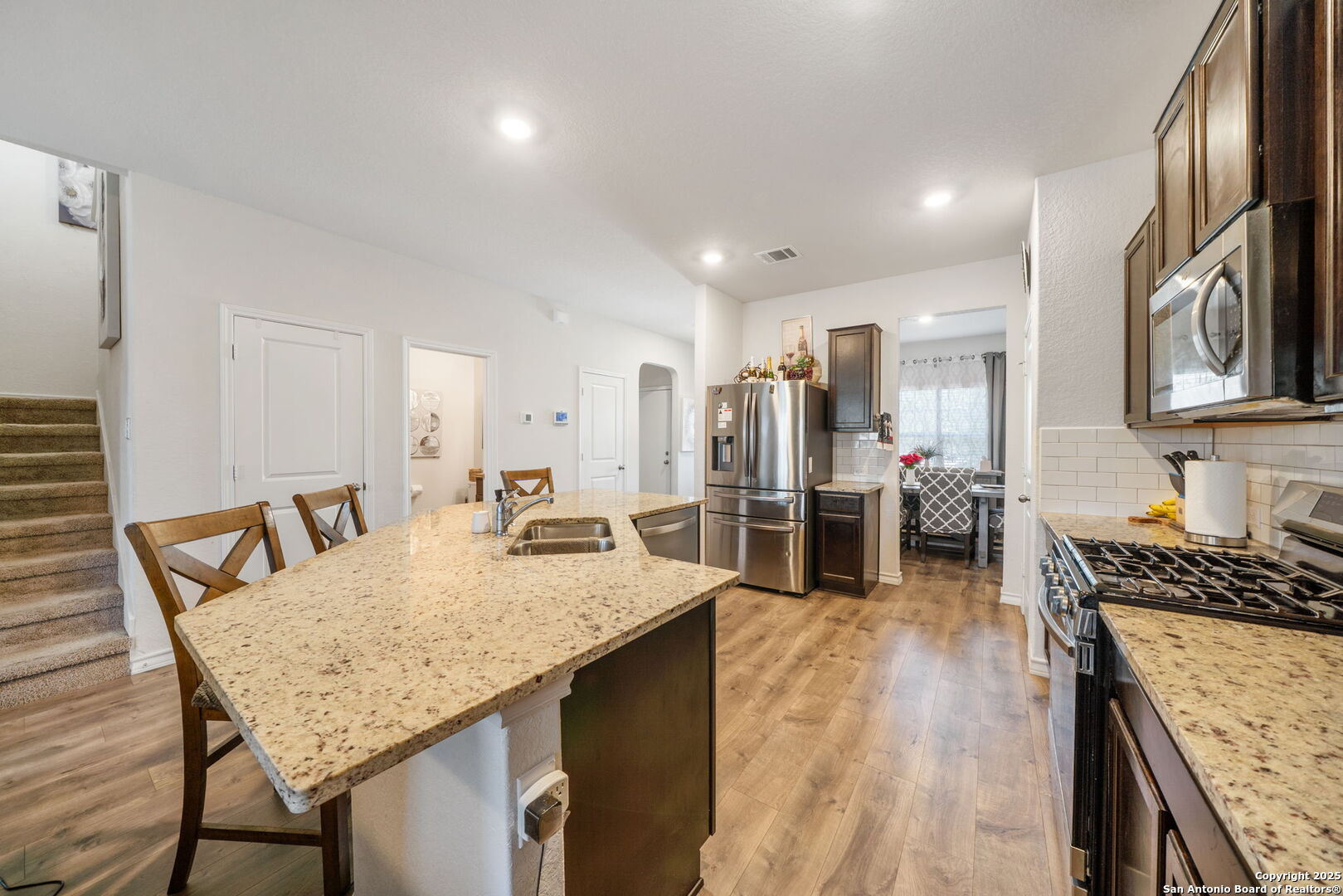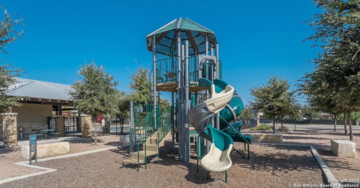 Welcome to this meticulously maintained 5-bedroom, 3.5-bathroom home located in the highly desired Redbird Ranch community. Offering 2,715 square feet of thoughtfully designed living space, this home features soaring ceilings, large windows that provide abundant natural light, and an open floor plan with wood-look luxury vinyl flooring throughout. A separate dining room adds elegance and functionality, perfect for entertaining or family gatherings. The kitchen is a chef's delight, complete with stainless steel appliances, a large island, custom tile backsplash, and a walk-in pantry. The spacious primary suite, located on the main level, includes large windows, a luxurious en-suite bathroom with a vanity area, double sinks, a garden tub, separate shower, and a generous walk-in closet. Upstairs, you'll find four additional bedrooms, two full bathrooms, and a large game room-ideal for relaxation or play. Step outside to a covered patio, a privacy fence, and a full irrigation system that makes lawn care a breeze. This home also comes with fully paid-off solar panels, providing energy efficiency and long-term savings. Conveniently located near JBSA-Lackland, SeaWorld, shopping, dining, and major highways, this home offers comfort, style, and convenience in one of the area's most sought-after communities.