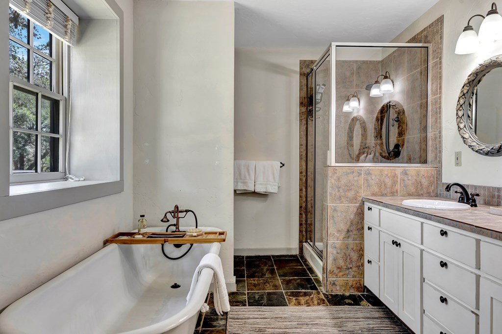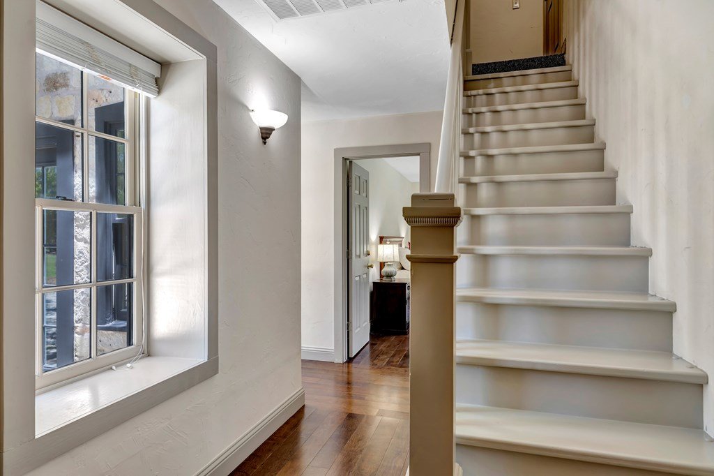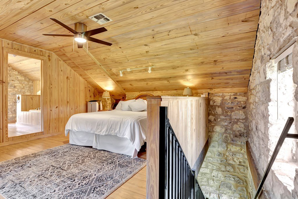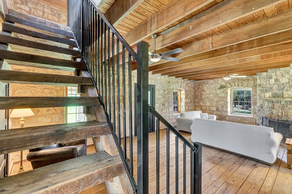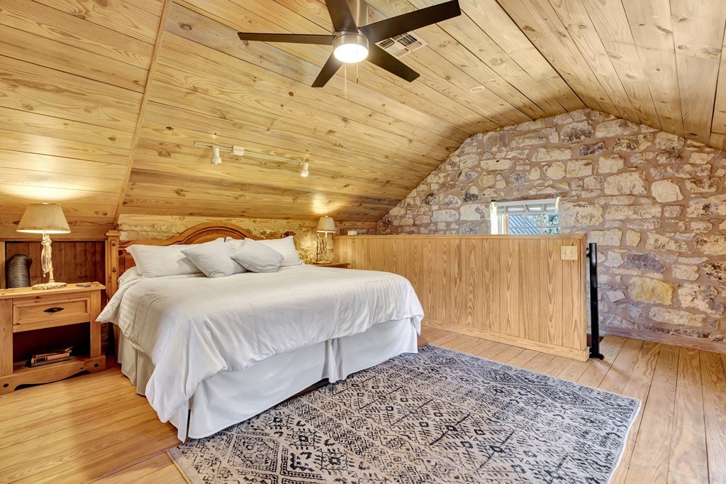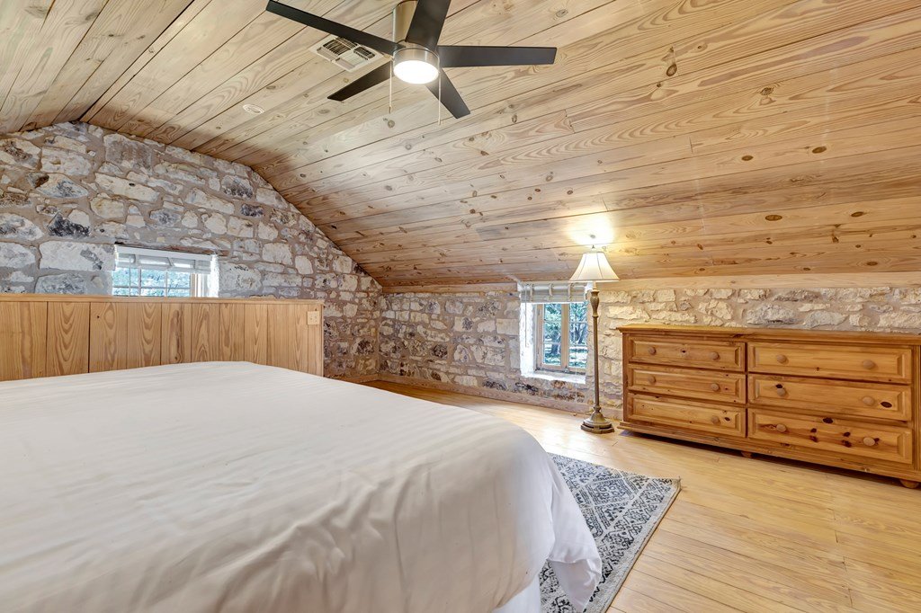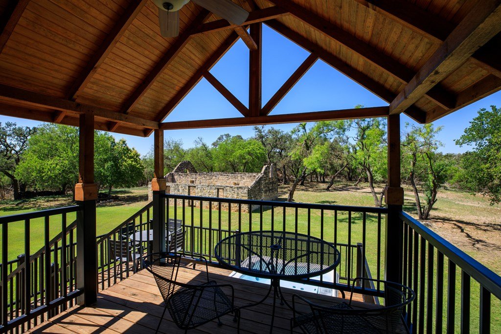 Must see historic, limestone, pioneer farmhouse on 11.49 unrestricted acres with magnificent live oaks - the perfect combination of preservation and modernization. True 4/4, extensive parking and a 2 car garage with air conditioned flex space. Recent remodel and landscaping in 2022 brings out the best in this very livable, turnkey home less than ten minutes from downtown Fredericksburg. Beautiful old stone barn offers a potential 2/2 guest house or amazing pool cabana. Currently a shot-term rental with room and plans to expand. The serene setting would also make a lovely private residence. Marschall Creek Retreat is ready for your Hill Country dreams!