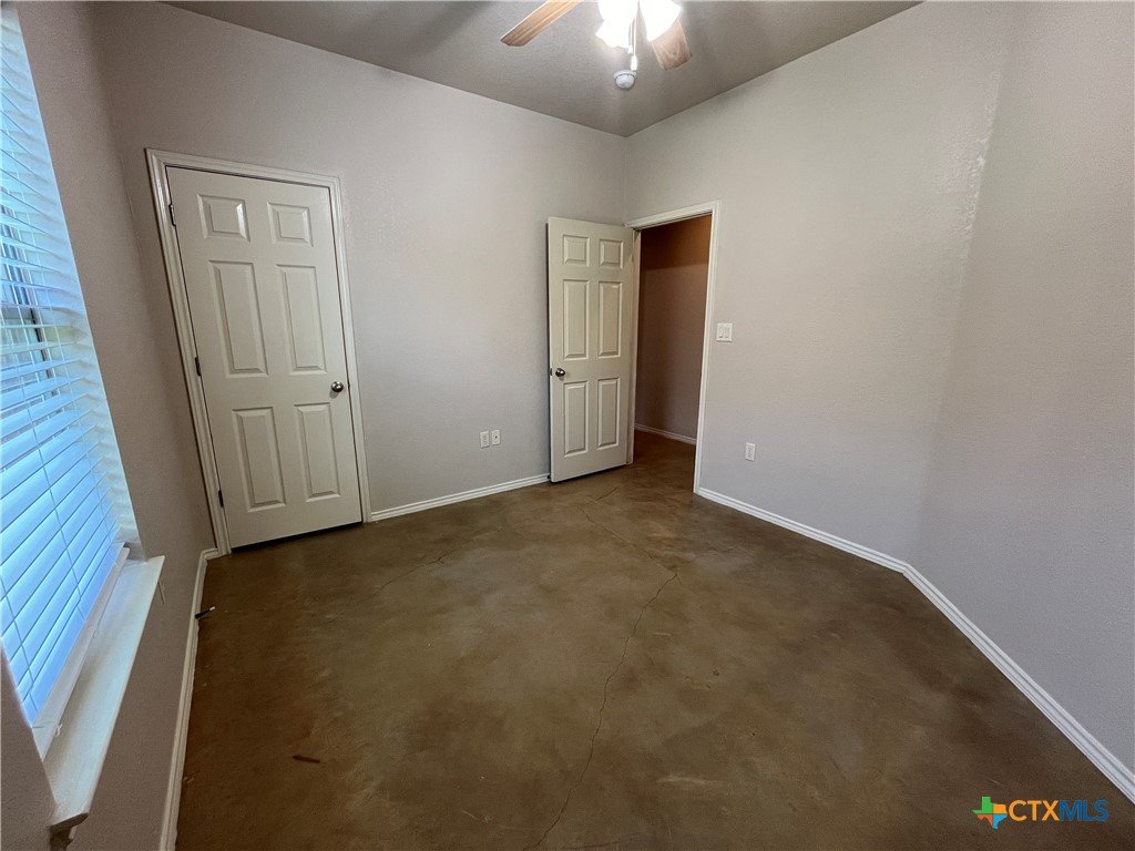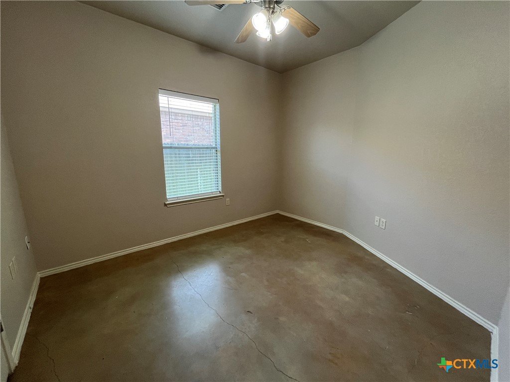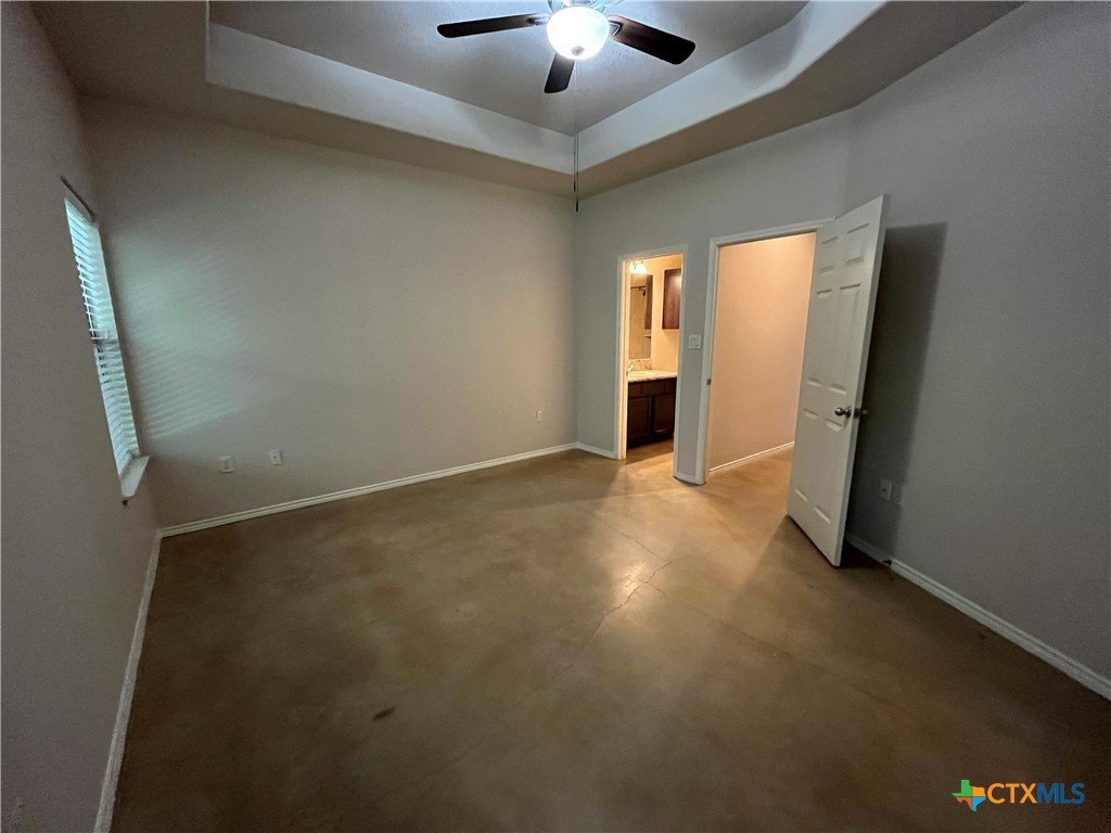 Indulge in this charming 3 bed, 2 bath duplex nestled in a quiet neighborhood with high vaulted ceilings and sleek stained concrete floors throughout. The kitchen offers ample cabinet space, while the garage hosts washer/dryer connections. Step onto the covered patio from the master bedroom, and enjoy the fenced backyard. With ceiling fans, a one-car garage, and a sprinkler system, comfort and convenience await in this delightful abode