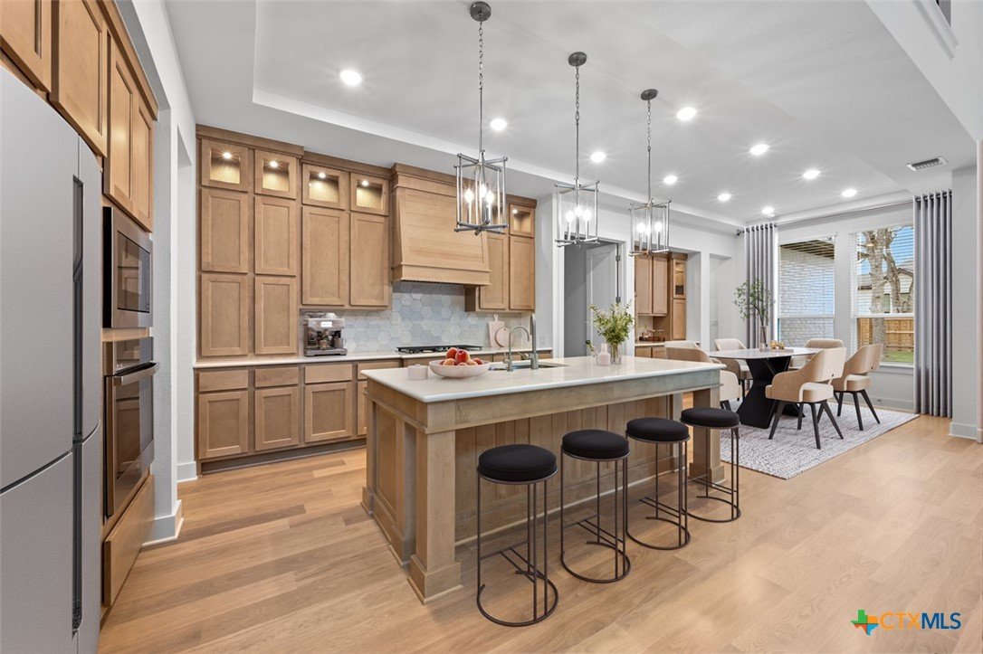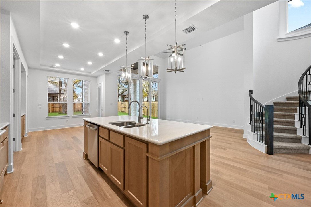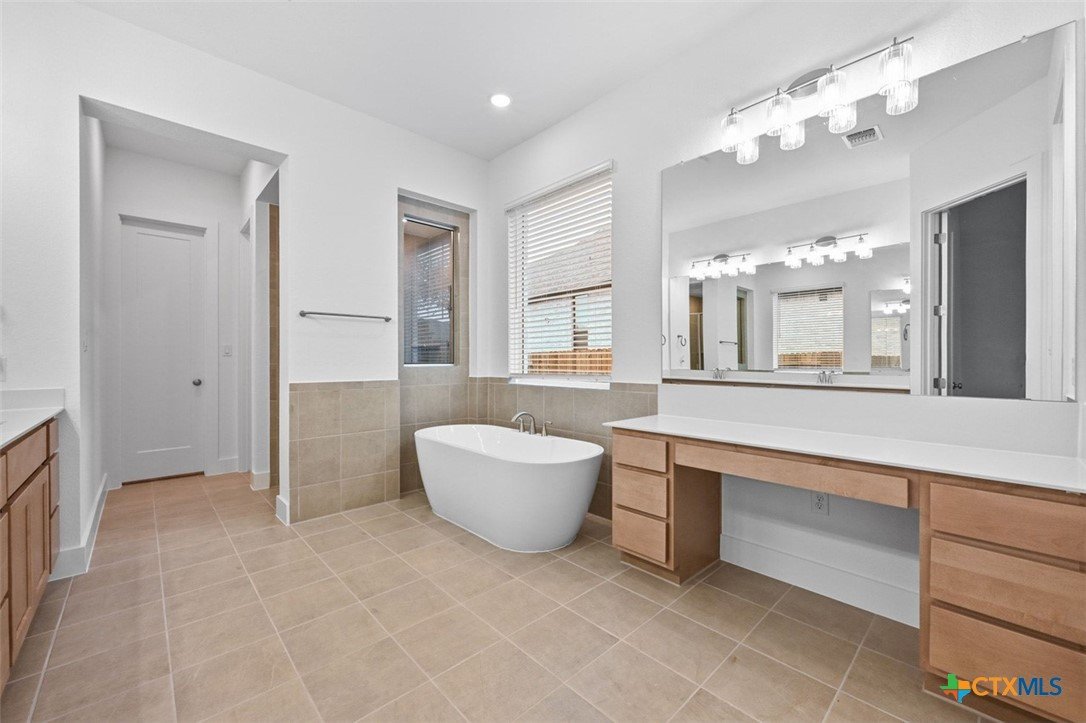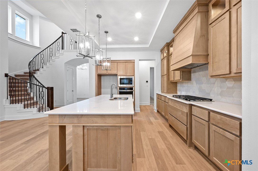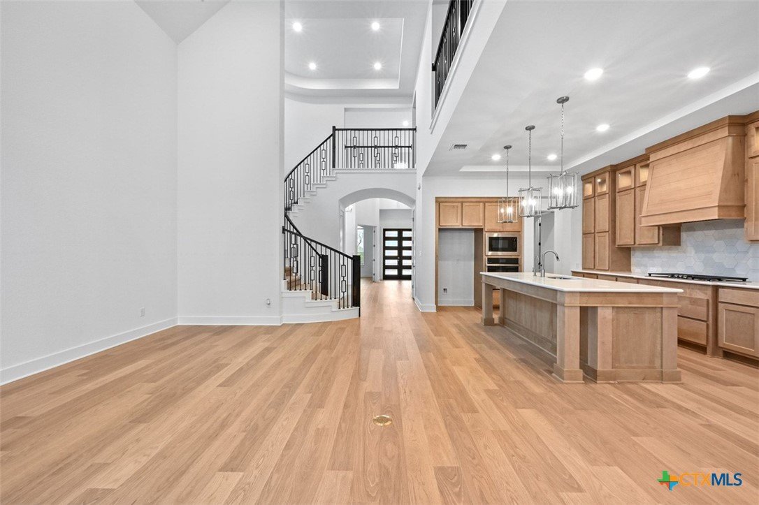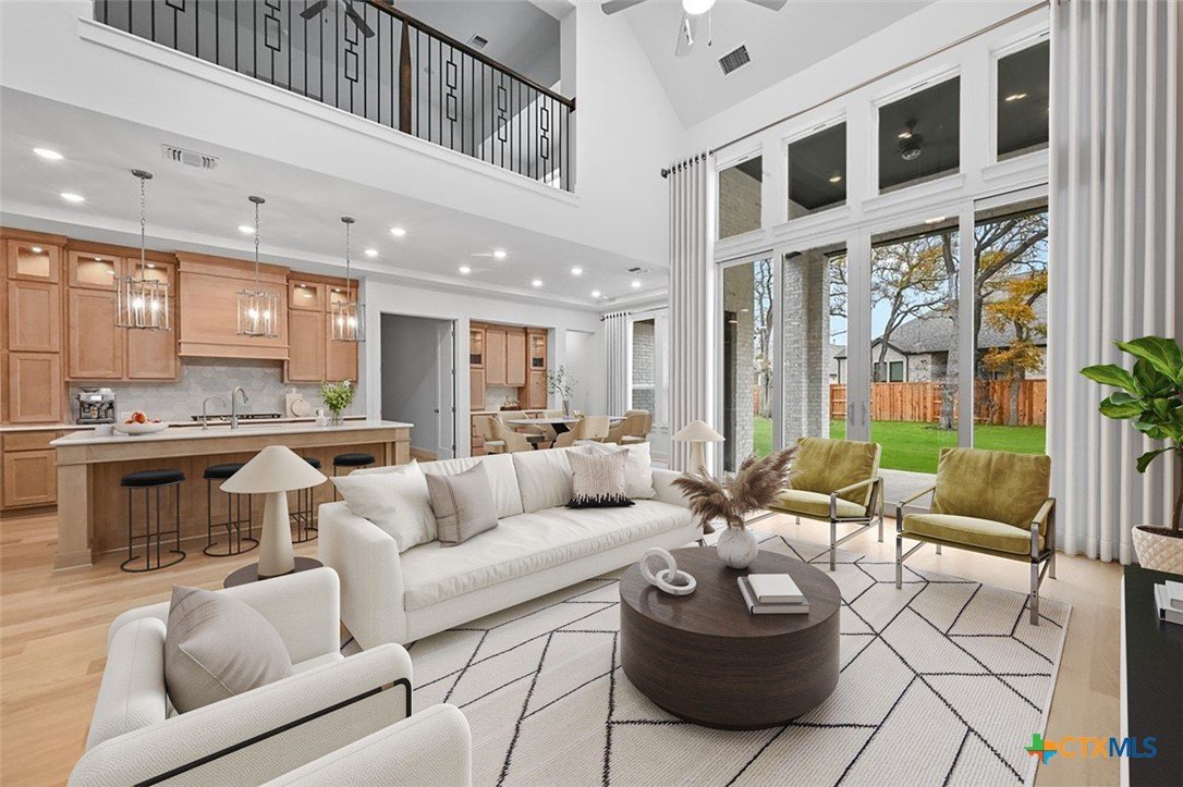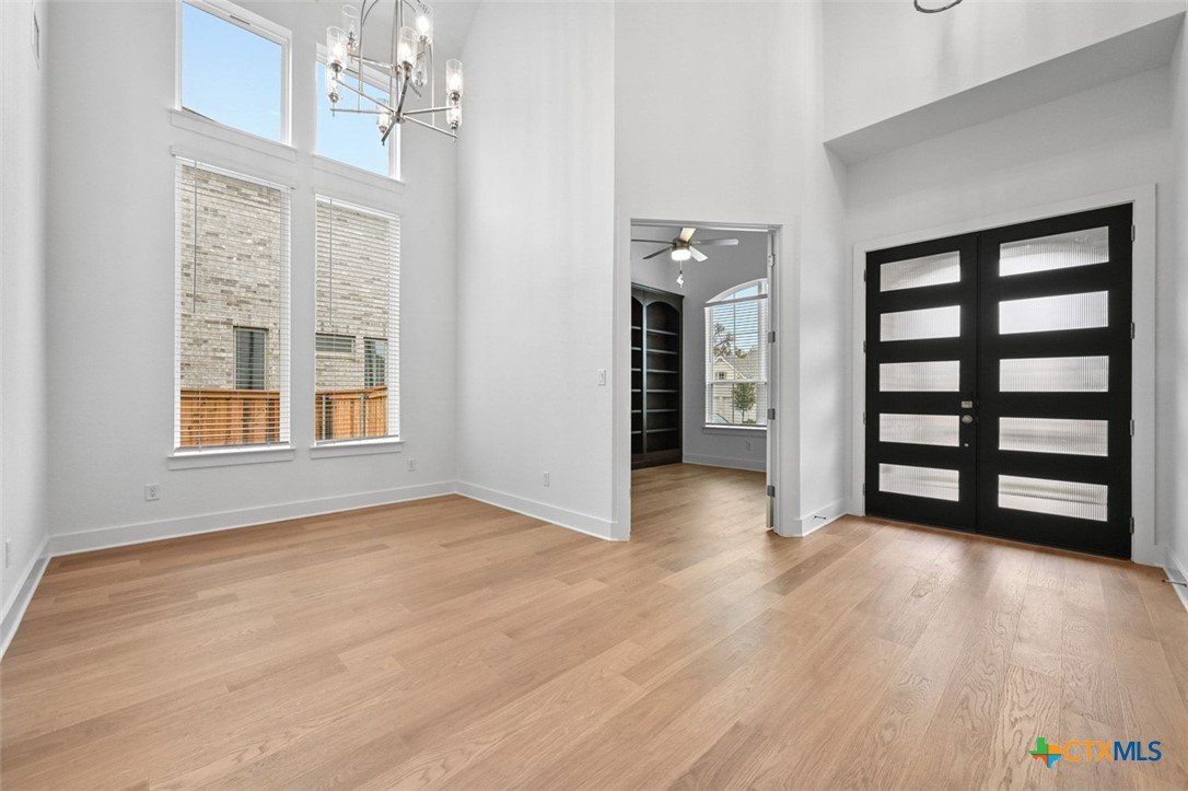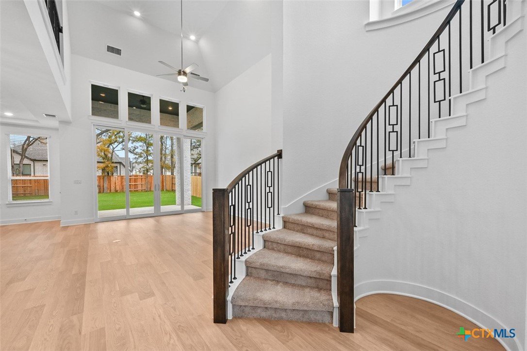 This home truly has the WOW factor! Home offers spacious covered front porch with double-door main entry. 2-story ceiling height in entry & living with grand spiral staircase for high-end feel. 2 Beds + Study + Media Room on 1st floor with 3 Beds + Game Room on 2nd floor. Media Room offers 7-speaker pre-wire & ALL walls insulated for perfect movie room! EXPANDED SECONDARY BEDROOMS with full baths attached so everyone has space to unwind & relax! Luxury wood-look floors throughout all common areas & Study. Home offers gourmet farmhouse kitchen with decorative cabinets / large island, glass inserts, puck lights with built-in hutch for added storage / design. Primary Bed is massive with separate sitting area & offers luxury en-suite featuring freestanding tub / separate shower plus TWO separate closets for easy living! Huge sliding glass doors in living that lead to oversized patio & private backyard - big enough for future pool! Gorgeous bookcase built-in shelves in Study & laundry room features cabinets + sink! Tons of mature oak trees preserved onsite for added privacy! Full sod, irrigation & fence. Blinds throughout! Smart home technology package included! Energy STAR home!