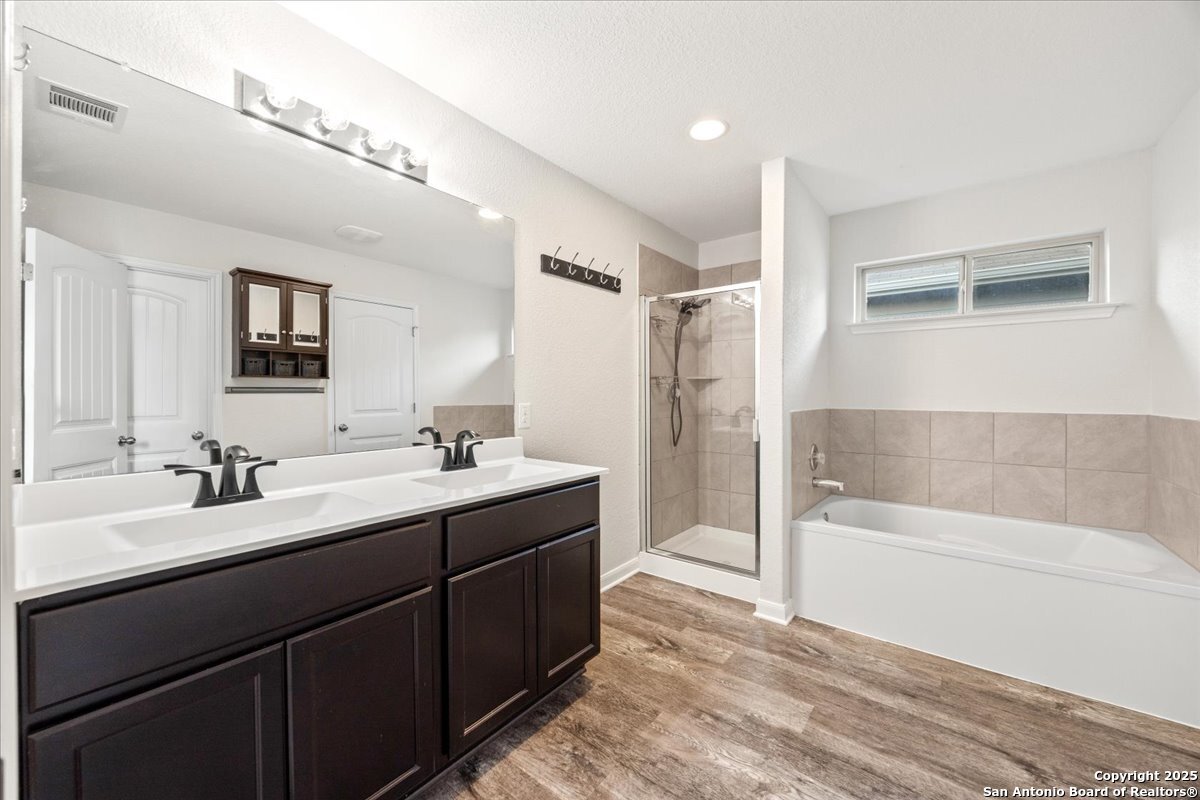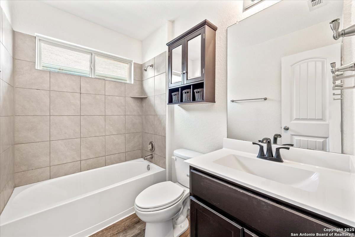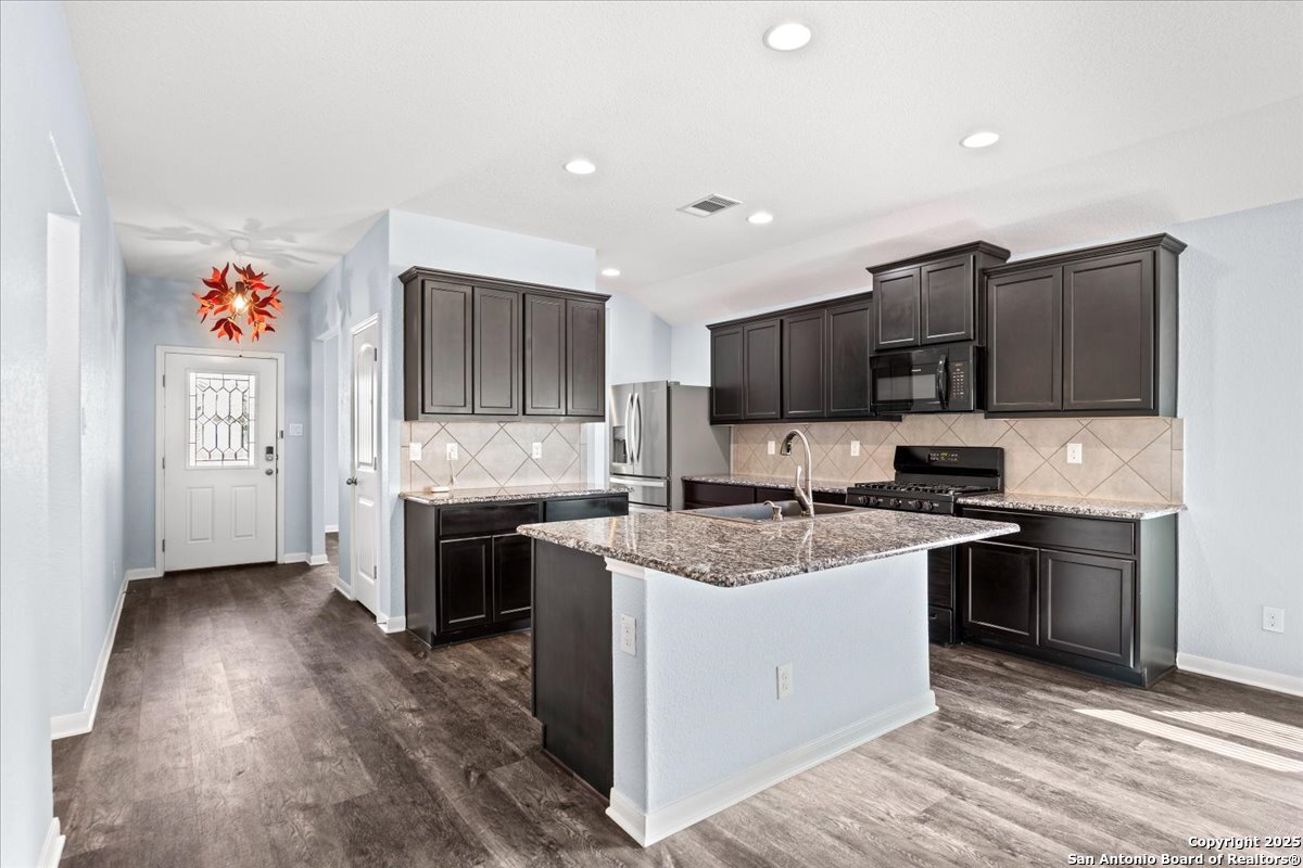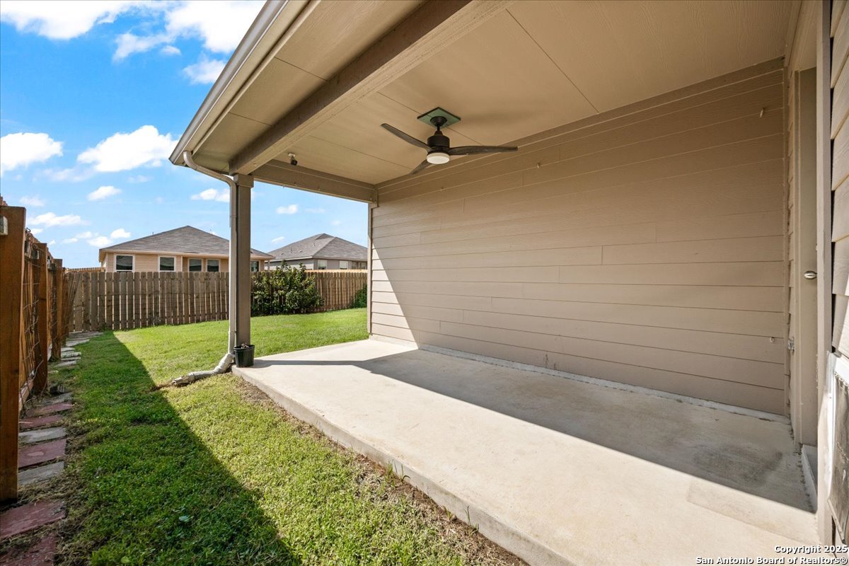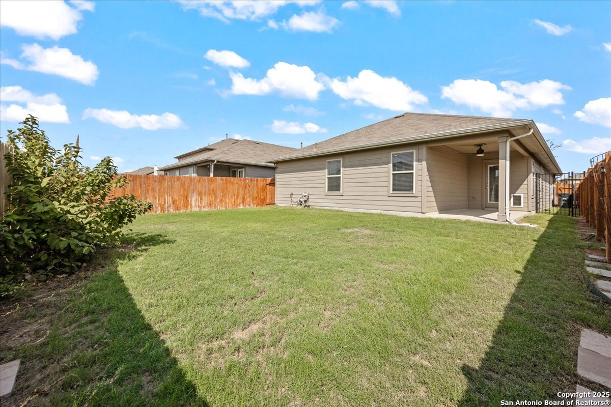 This beautifully maintained 3-bedroom, 2-bath home in Augustus Pass features a light-filled, open floor plan designed for comfortable living and easy entertaining. The spacious kitchen offers gas cooking, an oversized island, a deep upgraded sink, a built-in microwave, and a water softener. The private owner's suite includes dual vanities, a separate vanity counter, and a relaxing tub with a separate shower. Upgraded landscaping in the front and back enhances curb appeal, while the fenced backyard is perfect for outdoor gatherings. Located in a neighborhood with a park and playground and served by New Braunfels ISD, this 1,635 sq ft home blends style, function, and convenience.