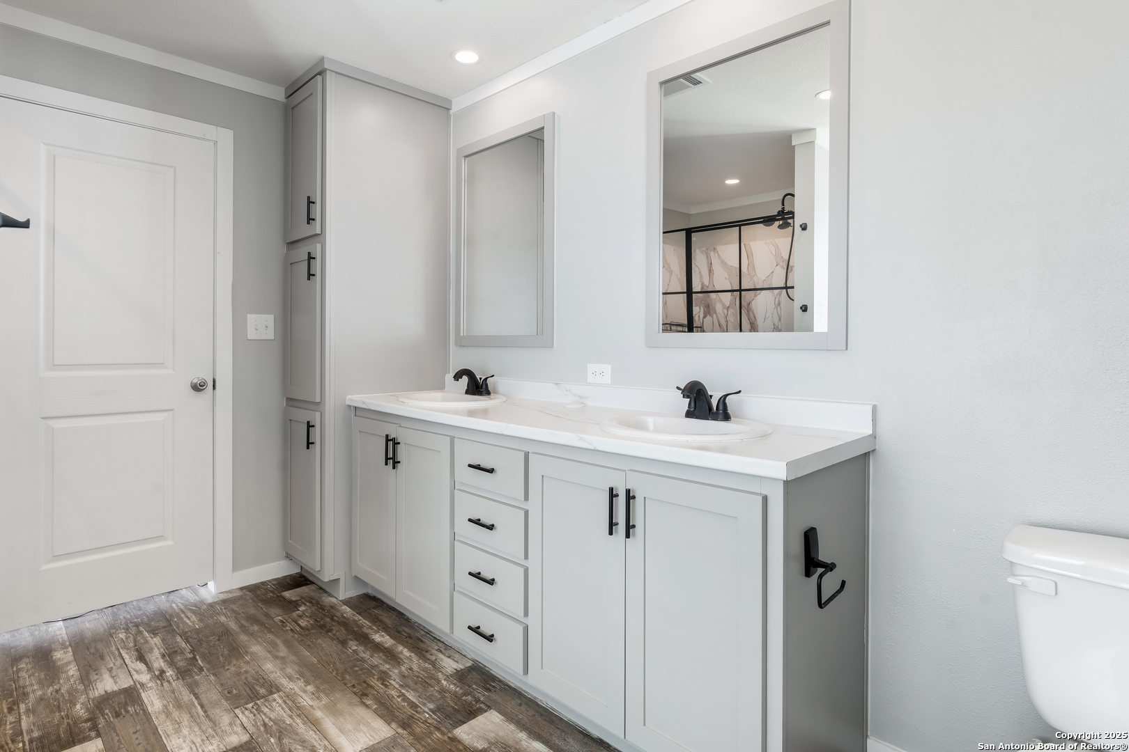 Looking for a home that's out of the San Antonio city limits but not too far from the convenience of a big city? This is the perfect place for you! There is so much to love about this three bedroom, two bathroom well-kept modular home. Upon entering you will notice an open floor plan with inviting, neutral colors. The vaulted ceilings will capture your attention and provide an open and airy feeling. You will also find gorgeous wooden beams and custom shelving adding to the inviting modern-ranch style ambiance. The gourmet kitchen is perfect for entertaining; including a stainless steel farmhouse sink, center island, and a large window which allows you to enjoy majestic Texas skies! Escape to your spacious master bedroom which features a private bathroom with a modern glass enclosed shower, double vanities and a free-standing tub perfect for soaking and relaxing after a long day. The two additional bedrooms offer plenty of space for your family or guests. If you've ever dreamed of owning land this is the perfect place for you! This property is situated on 1 fully fenced acre. In front you will find a cute front porch and covered two-car carport. The ample back yard is exactly what you need for entertaining or watching kids/pets run around the yard. It includes two sheds providing all the storage space you need. This beautiful escape is located about 10-15 minutes from the towns of La Coste or Lytle which offer restaurants, shopping and grocery store options and about 40 minutes to San Antonio.
