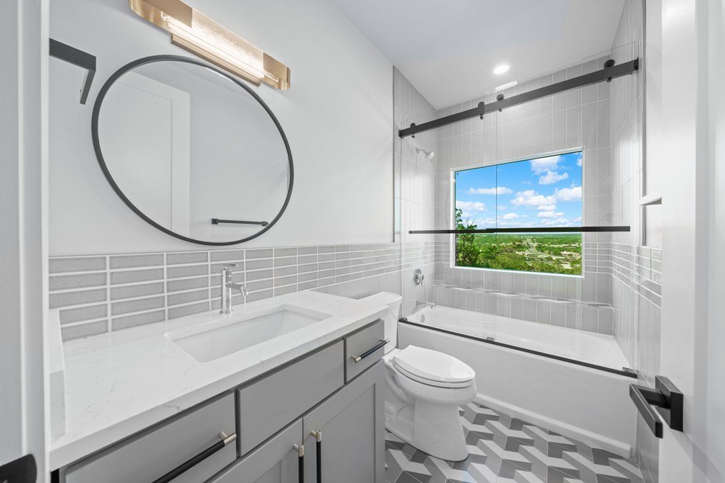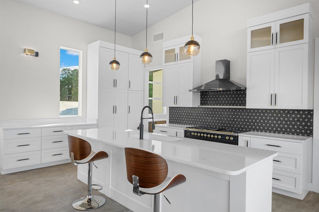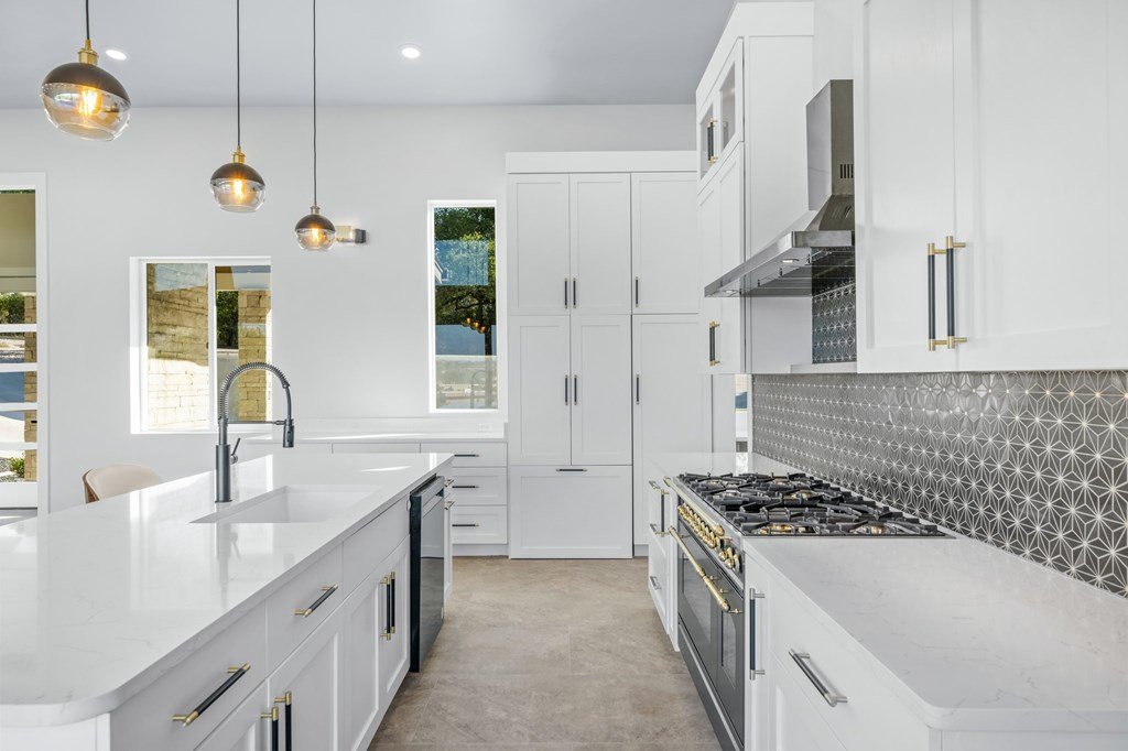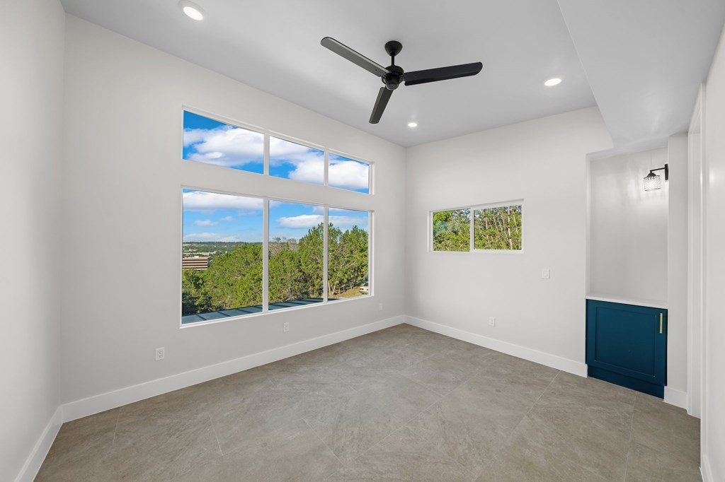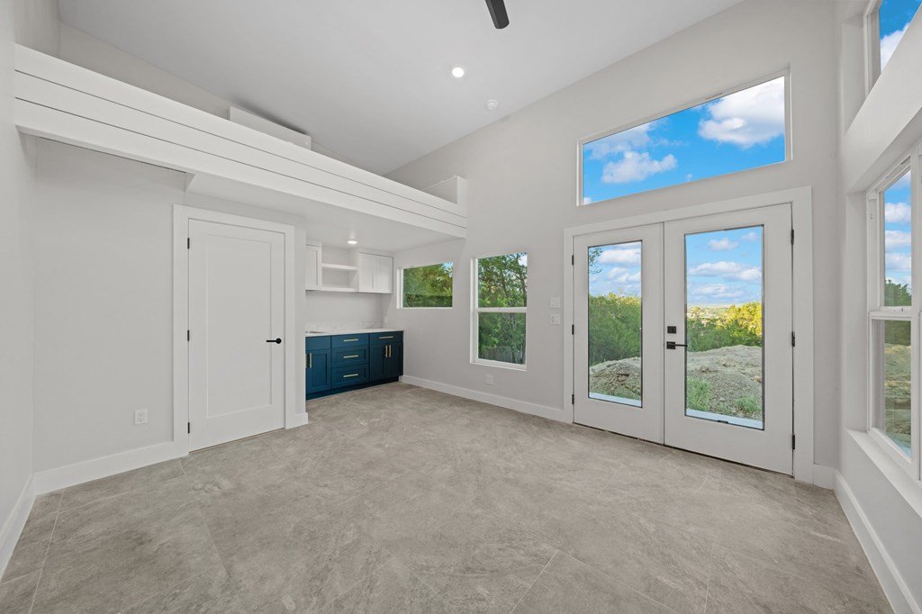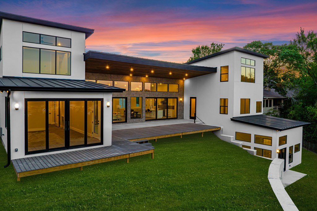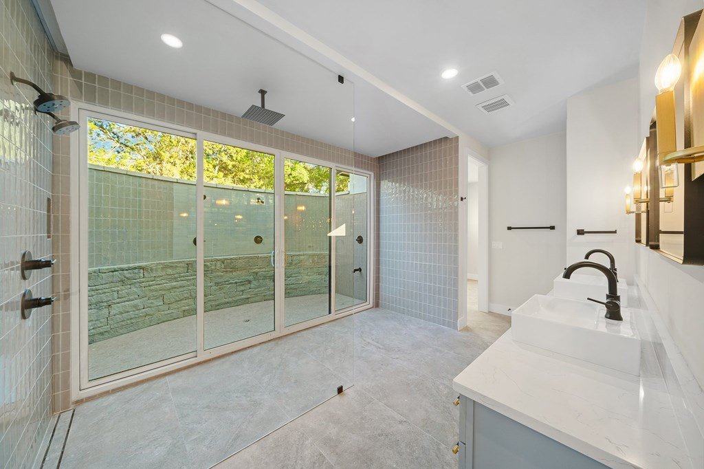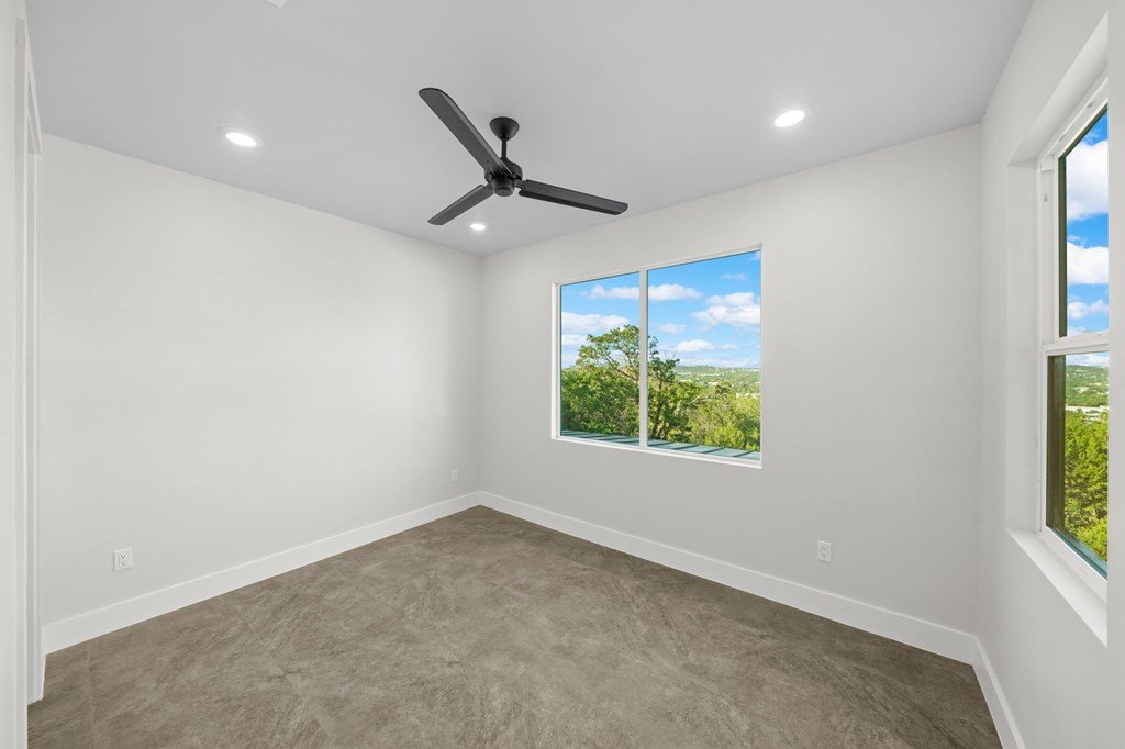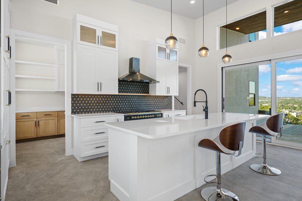 VIEWS! Exquisite modern estate, set on a pristine 1.07-acre lot, represents the pinnacle of exclusivity & sophistication. Nestled in the Texas Hill Country, the expansive open-plan living spaces are bathed in natural light, w/large glass walls framing the breathtaking surroundings. State-of-the-art chef's kitchen is a harmonious blend of functionality & elegance, featuring the finest finishes & cutting-edge design. Soaring ceilings, smart lighting throughout, & a captivating gas-electric fireplace, every detail is carefully curated for luxurious living. Multi-panel glass doors seamlessly connect the indoors to an expansive covered deck, offering sweeping, panoramic 24 hour breathtaking views of Kerrville. The voluminous primary suite is a sanctuary of comfort, featuring serene views, spacious walk-in closet, & a spa-inspired bathroom w/an indulgent indoor-outdoor shower. Four additional generously sized secondary bedrooms each boast en-suite bathrooms & continuous, expansive views. Fifth bedroom or guest suite/office is positioned on the lower level, complete w/ensuite bath. This unparalleled residence offers a rare opportunity to own a masterpiece close to all amenities & hospital