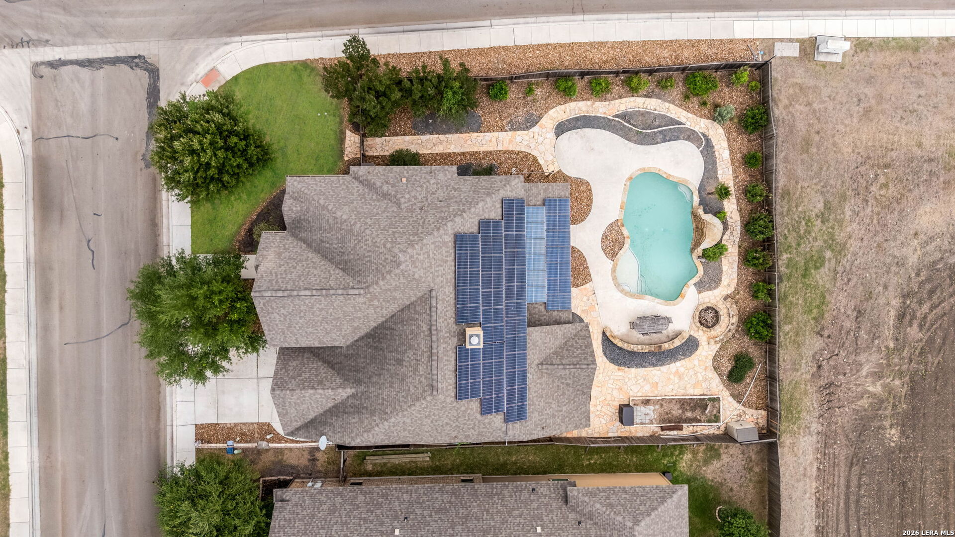 OPEN HOUSE Saturday, April 18th from 1-3 PM - come take a tour! Welcome to 2701 Saddlehorn Drive, a beautifully designed two-story home in the desirable Mill Creek Crossing community. Perfectly positioned on a spacious corner lot, this impressive residence offers both functionality and standout features throughout. Inside, you'll find five generously sized bedrooms and three and a half bathrooms, thoughtfully laid out to provide comfort and flexibility. The owner's suite is conveniently located on the main floor, offering a private retreat complete with ample space and convenience. A versatile flex room downstairs provides the ideal setting for a home office, study, or additional living space. The open-concept design flows seamlessly, creating an inviting atmosphere for both everyday living and entertaining. Step outside to your own backyard oasis, featuring an in-ground pool with a beautiful waterfall feature and a cozy firepit-perfect for relaxing evenings or hosting gatherings. Energy efficient with solar panels, helping reduce utility costs while adding long-term value. Additional highlights include a three-car tandem garage, offering plenty of room for vehicles, storage, or hobbies. This home combines space, style, and modern upgrades in a prime location-an exceptional opportunity you won't want to miss.