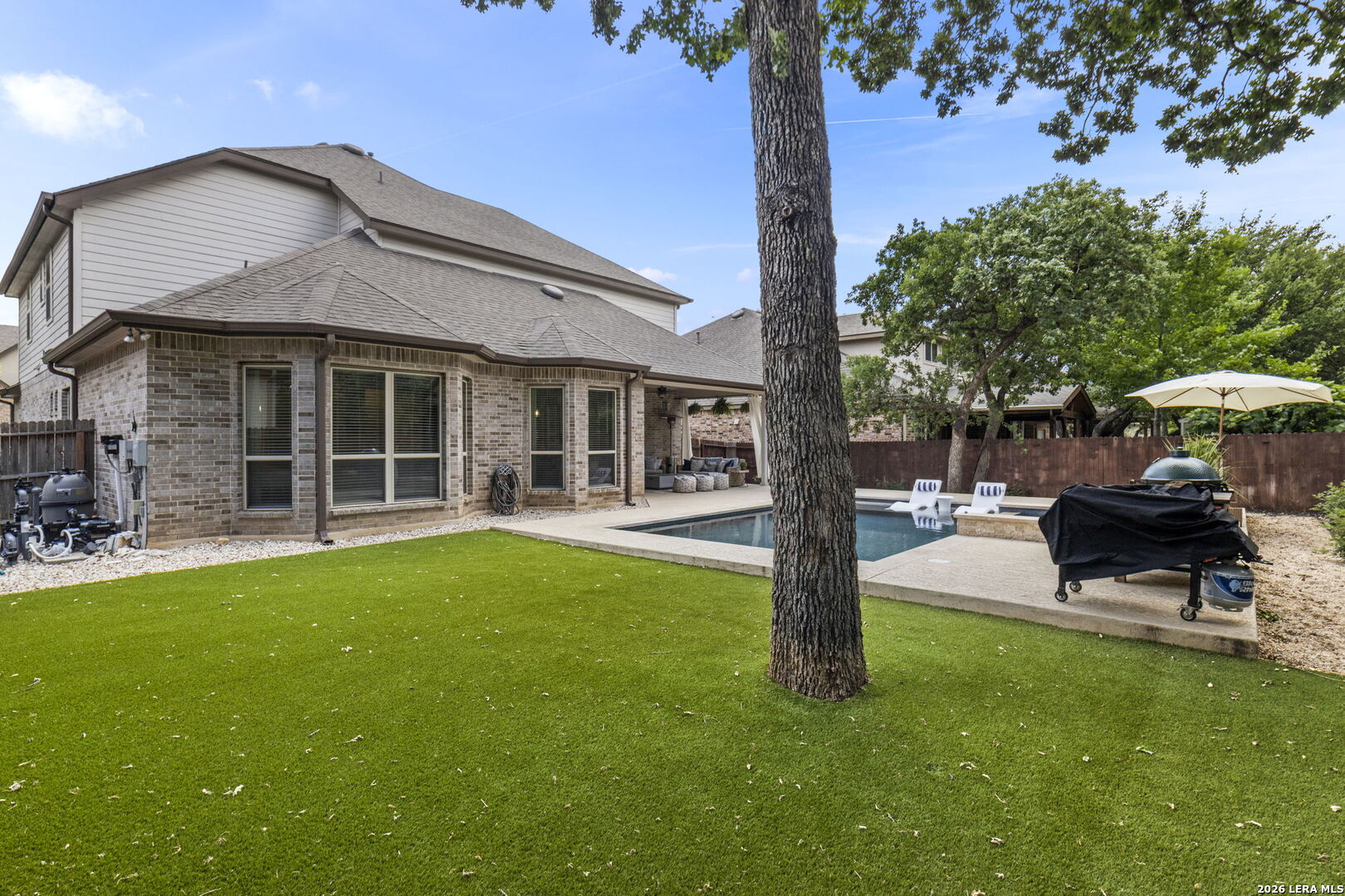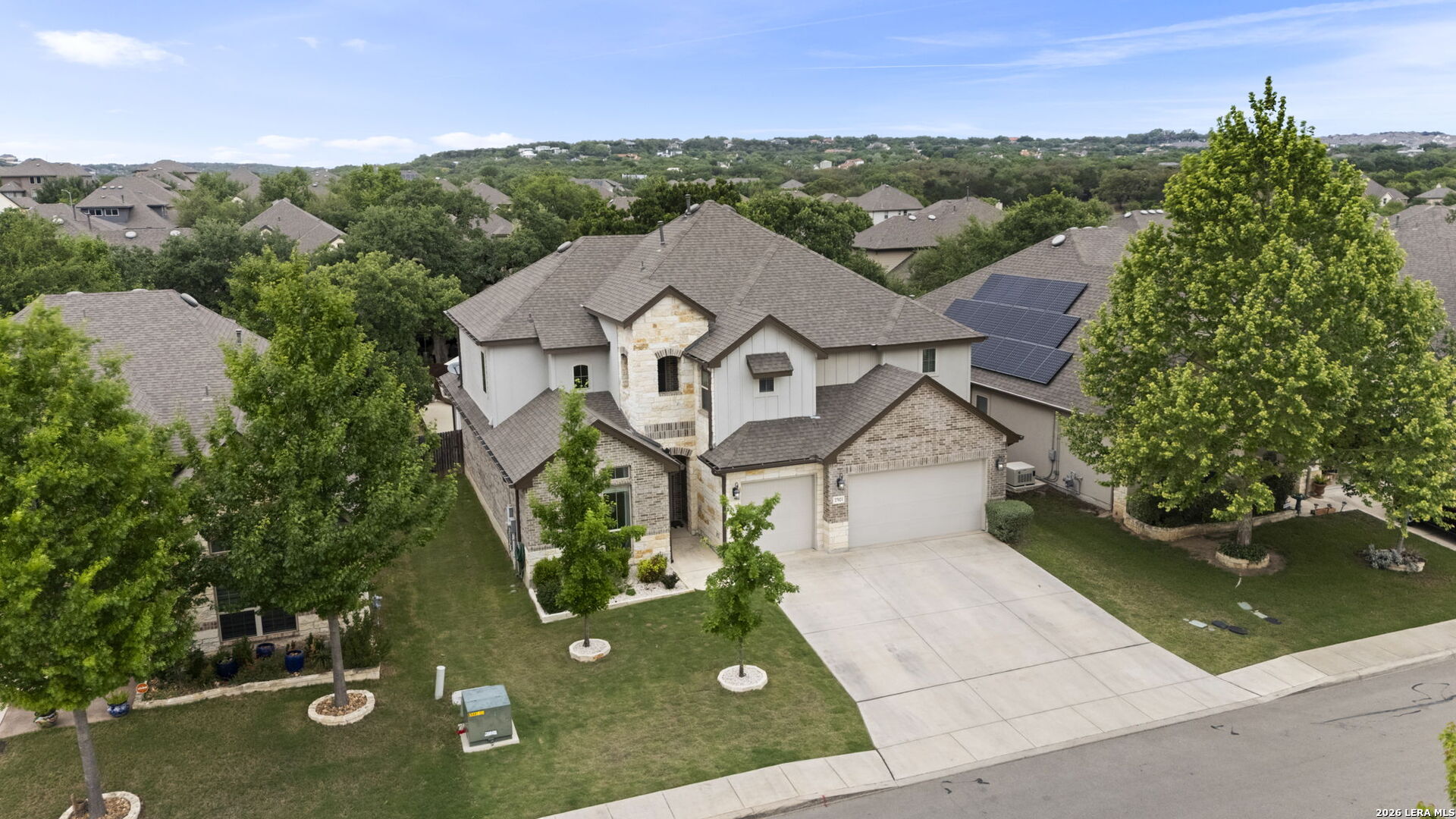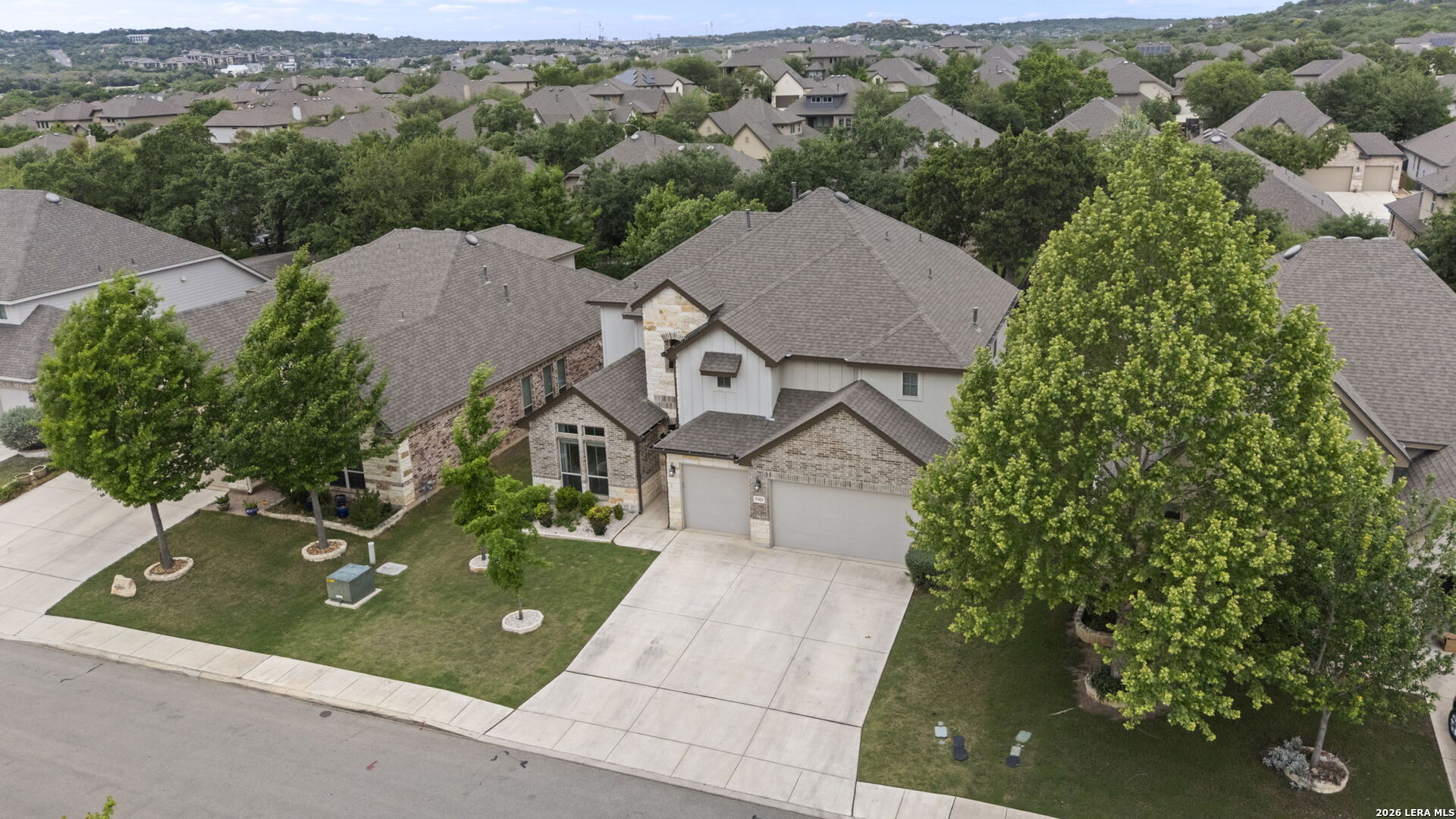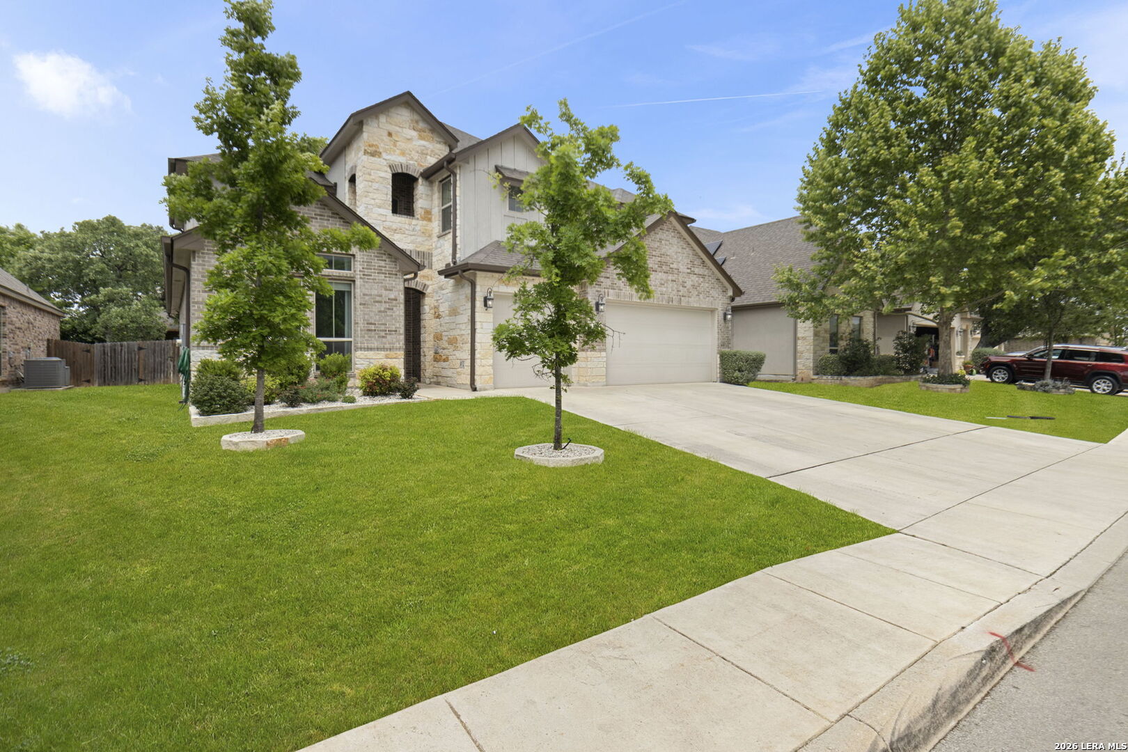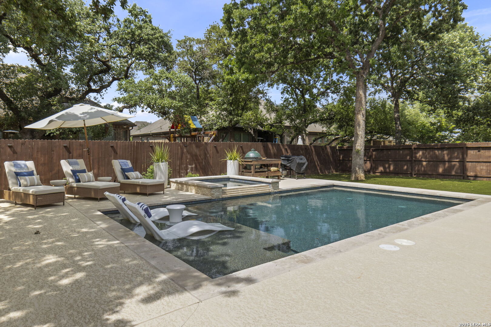 Welcome to 27021 Daffodil Place, where elevated design meets resort-style living in the gated community of Fallbrook. This stunning two-story residence offers 5 bedrooms, 4 bathrooms, and over 3,300 square feet of thoughtfully designed space, blending timeless elegance with everyday functionality. From the moment you enter, you're greeted by soaring ceilings, an open-concept layout, and an abundance of natural light that creates an inviting yet sophisticated atmosphere. The chef's kitchen is the heart of the home, featuring gas cooking, double ovens, an oversized island, walk-in pantry, and seamless flow into multiple dining and living areas, perfect for entertaining or relaxed family living. The primary suite, located on the main level, serves as a private retreat with a spacious layout, spa-like bath with separate tub and shower, dual vanities, and a generous walk-in closet. Additional bedrooms and a large game room upstairs provide flexibility for guests, work, or play. Step outside to your personal backyard oasis, complete with a covered patio, in-ground pool and spa, and enhanced outdoor lighting, designed for both quiet evenings and lively gatherings. Situated on a well-appointed lot within a controlled-access community offering amenities such as a pool, clubhouse, and park, and zoned to highly sought-after Boerne ISD, this home delivers the perfect blend of luxury, comfort, and Hill Country lifestyle, all just minutes from I-10, shopping, and dining. Refined living, exceptional space, and a lifestyle you'll love. Welcome home.