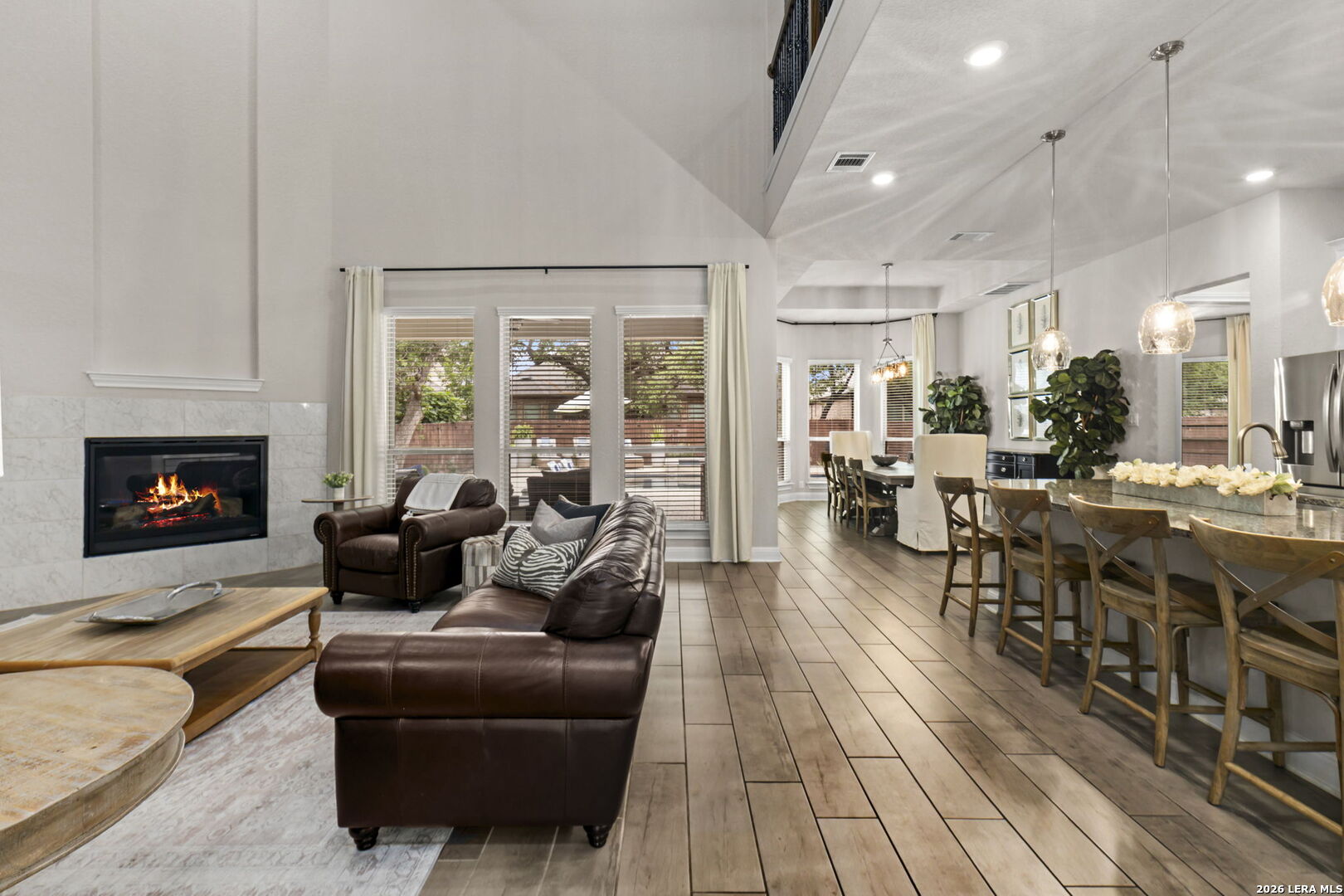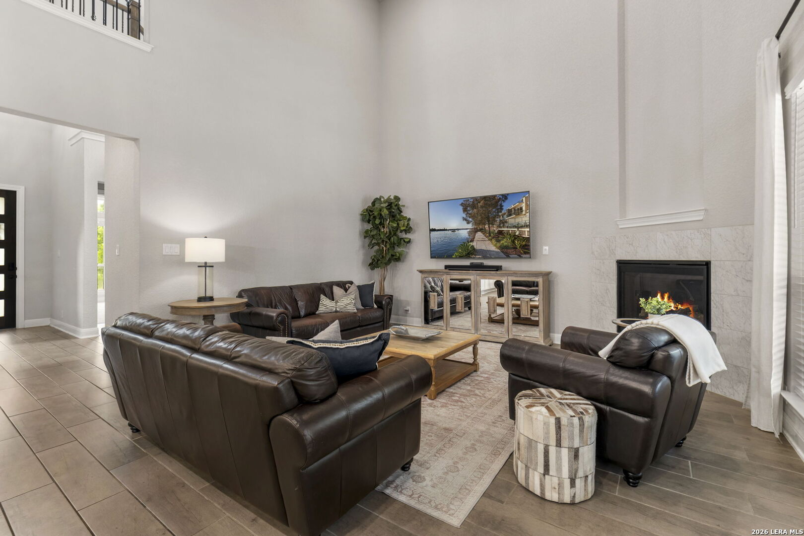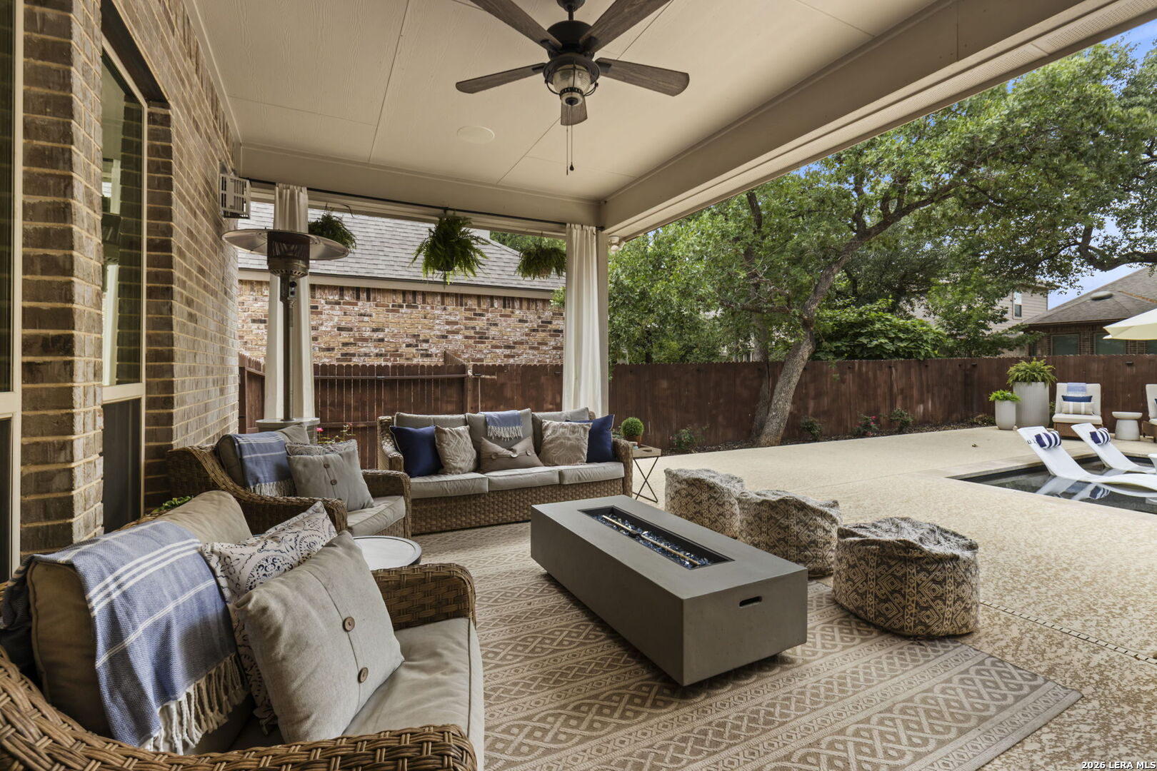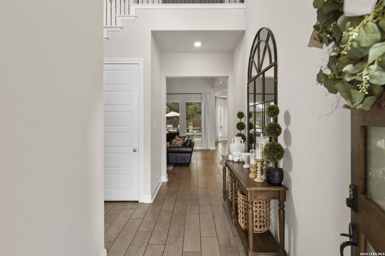 Welcome to 27021 Daffodil Place, where elevated design meets resort-style living in the gated community of Fallbrook. This stunning two-story residence offers 5 bedrooms, 4 bathrooms, and over 3,300 square feet of thoughtfully designed space, blending timeless elegance with everyday functionality. From the moment you enter, you're greeted by soaring ceilings, an open-concept layout, and an abundance of natural light that creates an inviting yet sophisticated atmosphere. The chef's kitchen is the heart of the home, featuring gas cooking, double ovens, an oversized island, walk-in pantry, and seamless flow into multiple dining and living areas, perfect for entertaining or relaxed family living. The primary suite, located on the main level, serves as a private retreat with a spacious layout, spa-like bath with separate tub and shower, dual vanities, and a generous walk-in closet. Additional bedrooms and a large game room upstairs provide flexibility for guests, work, or play. Step outside to your personal backyard oasis, complete with a covered patio, in-ground pool and spa, and enhanced outdoor lighting, designed for both quiet evenings and lively gatherings. Situated on a well-appointed lot within a controlled-access community offering amenities such as a pool, clubhouse, and park, and zoned to highly sought-after Boerne ISD, this home delivers the perfect blend of luxury, comfort, and Hill Country lifestyle, all just minutes from I-10, shopping, and dining. Refined living, exceptional space, and a lifestyle you'll love. Welcome home.