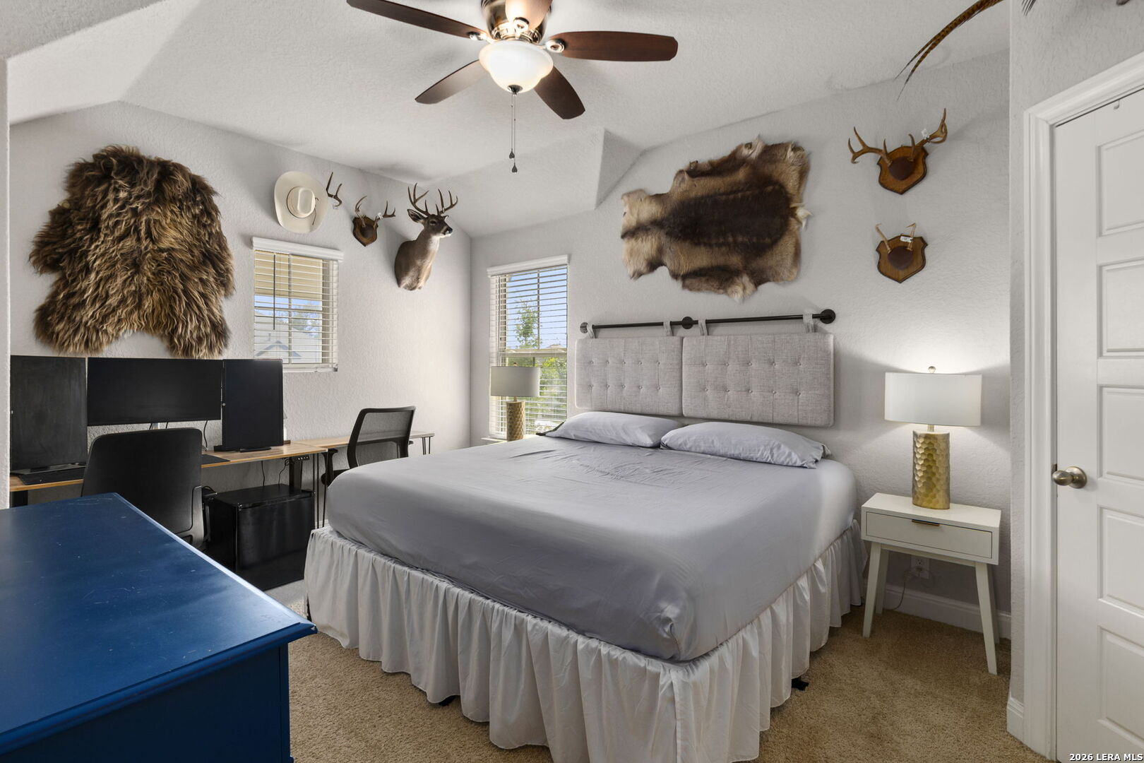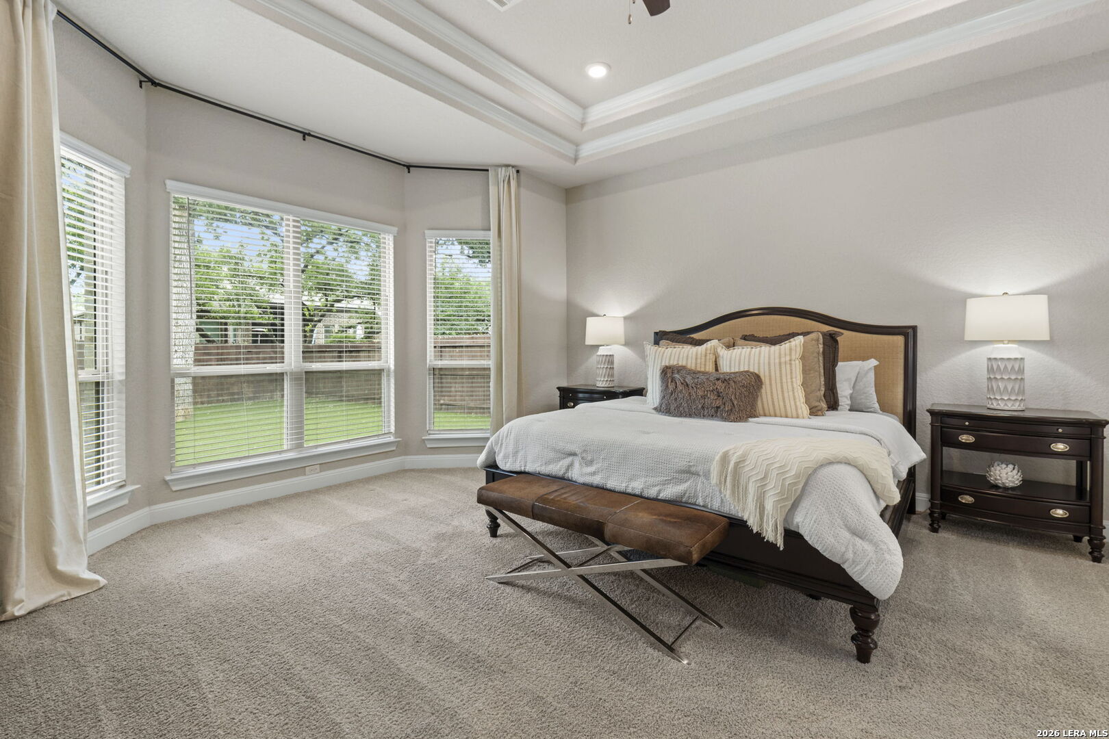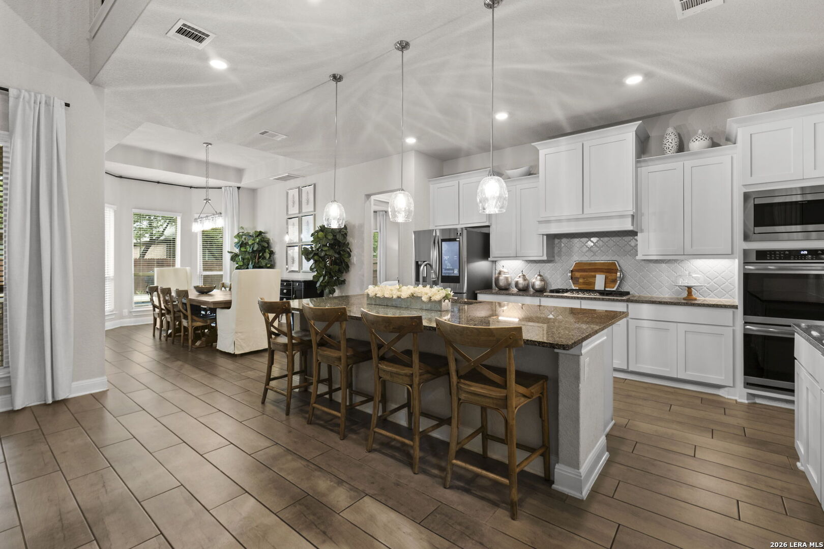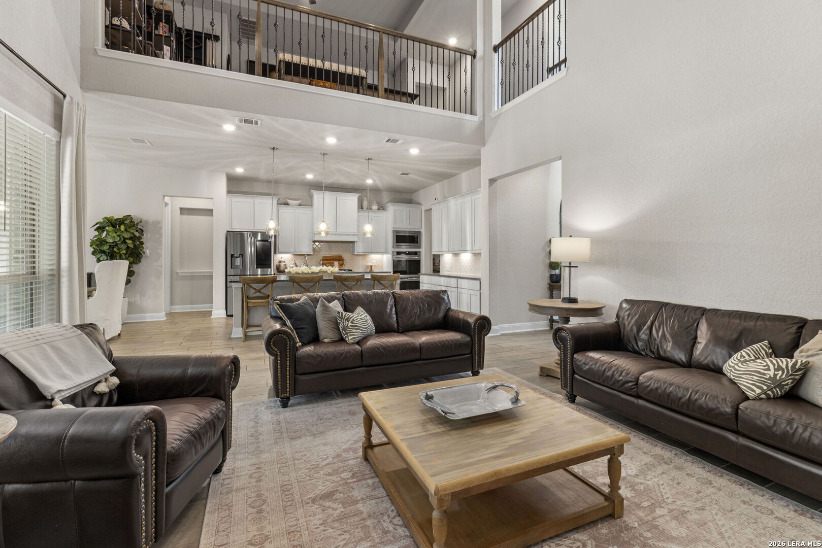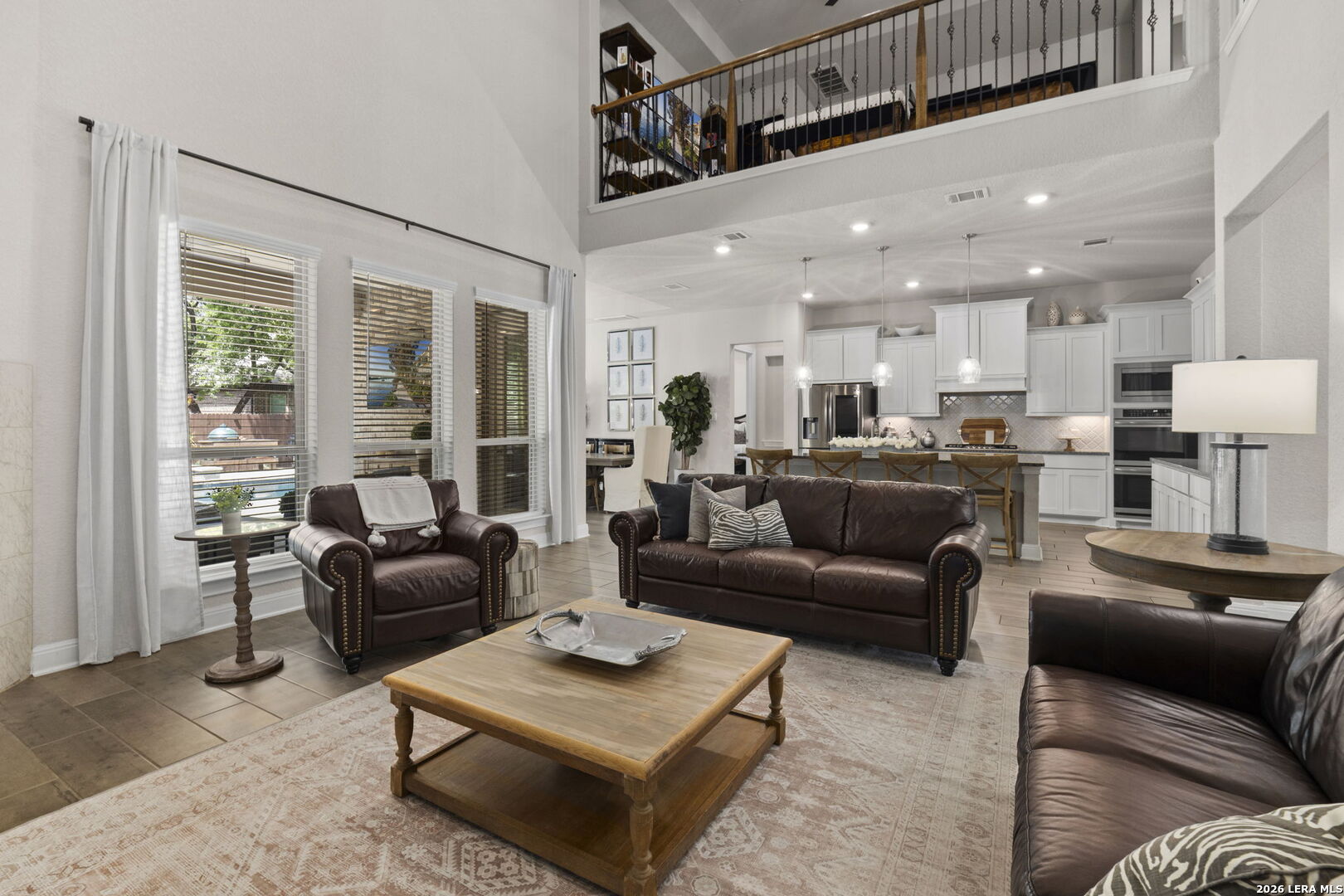 Welcome to 27021 Daffodil Place, where elevated design meets resort-style living in the gated community of Fallbrook. This stunning two-story residence offers 5 bedrooms, 4 bathrooms, and over 3,300 square feet of thoughtfully designed space, blending timeless elegance with everyday functionality. From the moment you enter, you're greeted by soaring ceilings, an open-concept layout, and an abundance of natural light that creates an inviting yet sophisticated atmosphere. The chef's kitchen is the heart of the home, featuring gas cooking, double ovens, an oversized island, walk-in pantry, and seamless flow into multiple dining and living areas, perfect for entertaining or relaxed family living. The primary suite, located on the main level, serves as a private retreat with a spacious layout, spa-like bath with separate tub and shower, dual vanities, and a generous walk-in closet. Additional bedrooms and a large game room upstairs provide flexibility for guests, work, or play. Step outside to your personal backyard oasis, complete with a covered patio, in-ground pool and spa, and enhanced outdoor lighting, designed for both quiet evenings and lively gatherings. Situated on a well-appointed lot within a controlled-access community offering amenities such as a pool, clubhouse, and park, and zoned to highly sought-after Boerne ISD, this home delivers the perfect blend of luxury, comfort, and Hill Country lifestyle, all just minutes from I-10, shopping, and dining. Refined living, exceptional space, and a lifestyle you'll love. Welcome home.