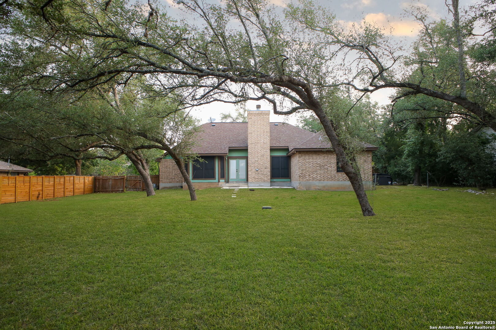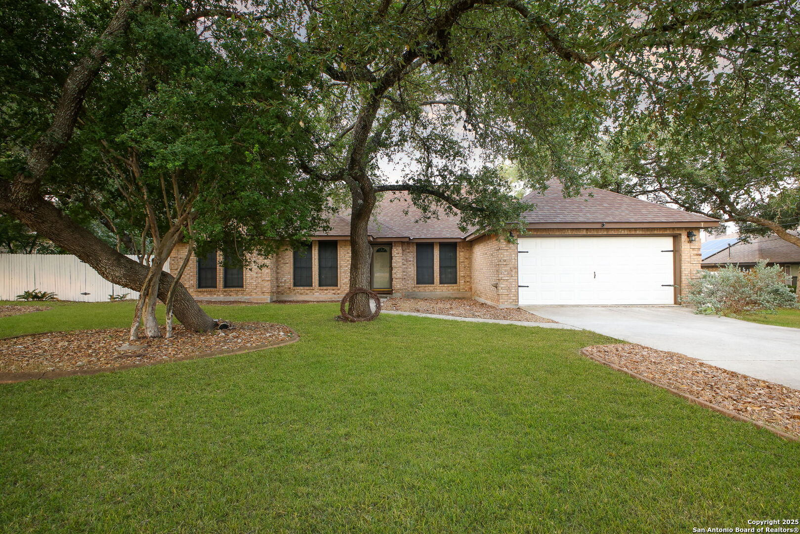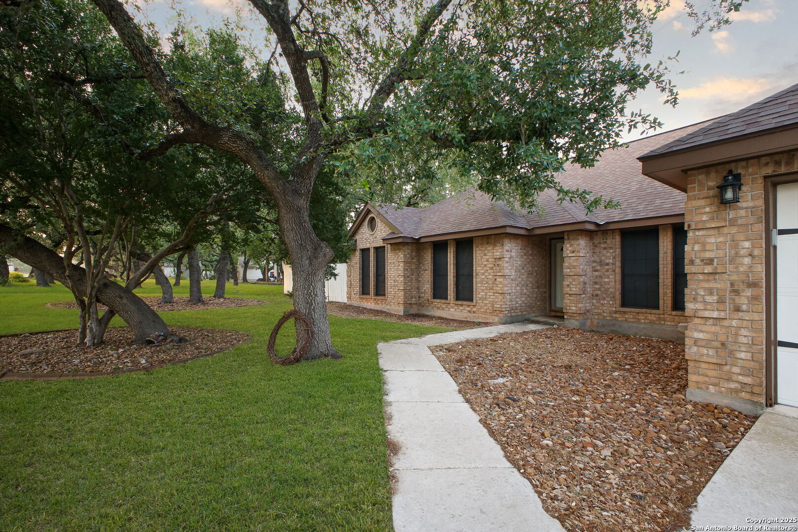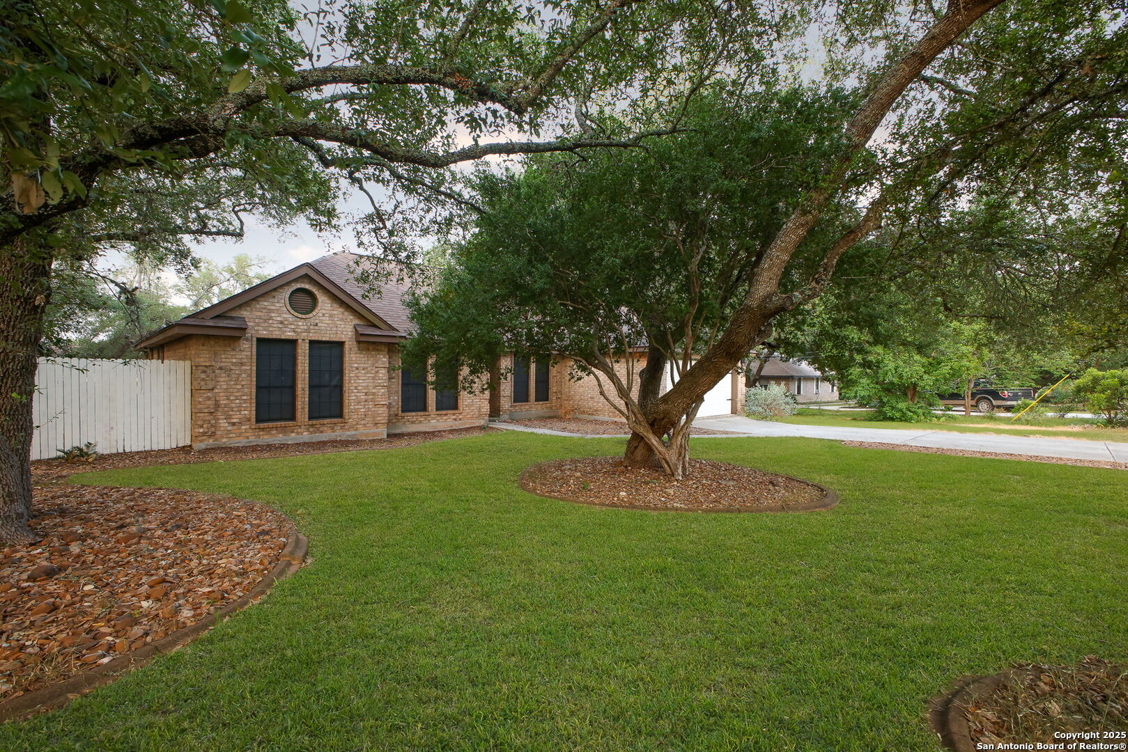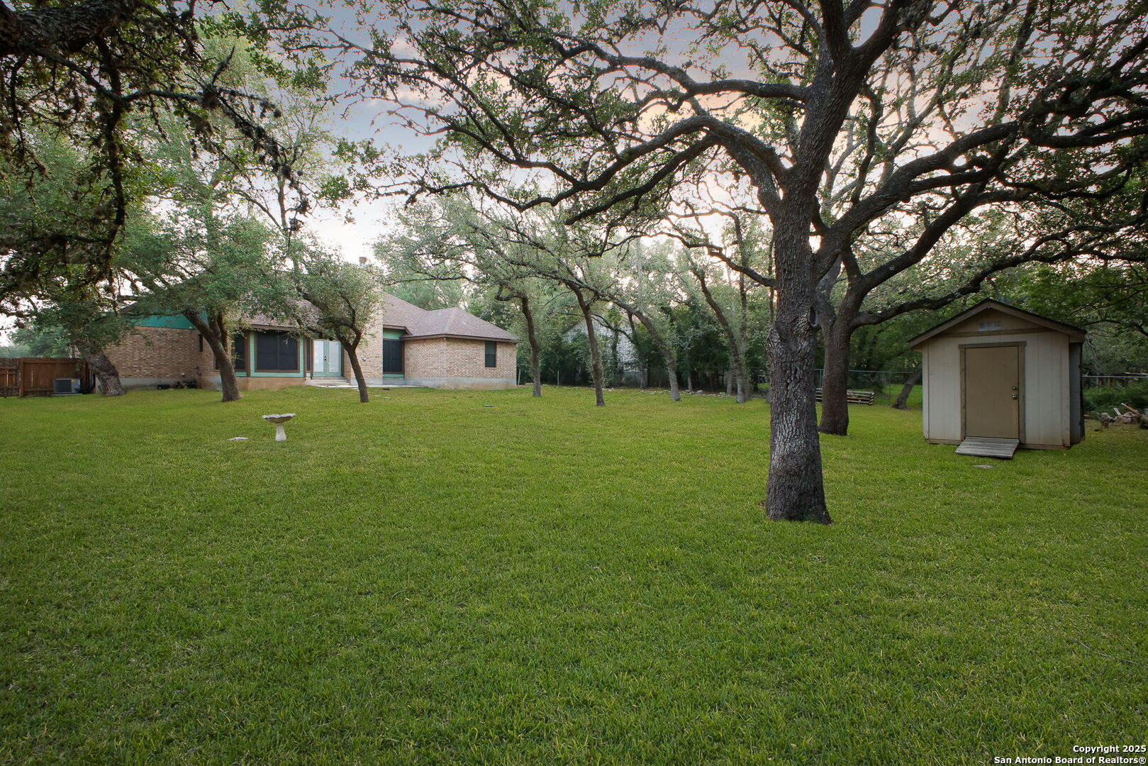 Country living with city convenience in this custom one story 3/2/2 home on almost half acre! Tranquil backyard w/ mature trees, & storage building. This home features hard wood floors, remodeled bathrooms, HVAC & Stove replaced in 2017. All other appliances are 2022 and newer. Square Feet is 1864 per appraiser. Amazing 30 acre neighborhood amenity center with tons of family, fitness, and live music activities. Start living the dream in one of San Antonio's top neighborhoods.