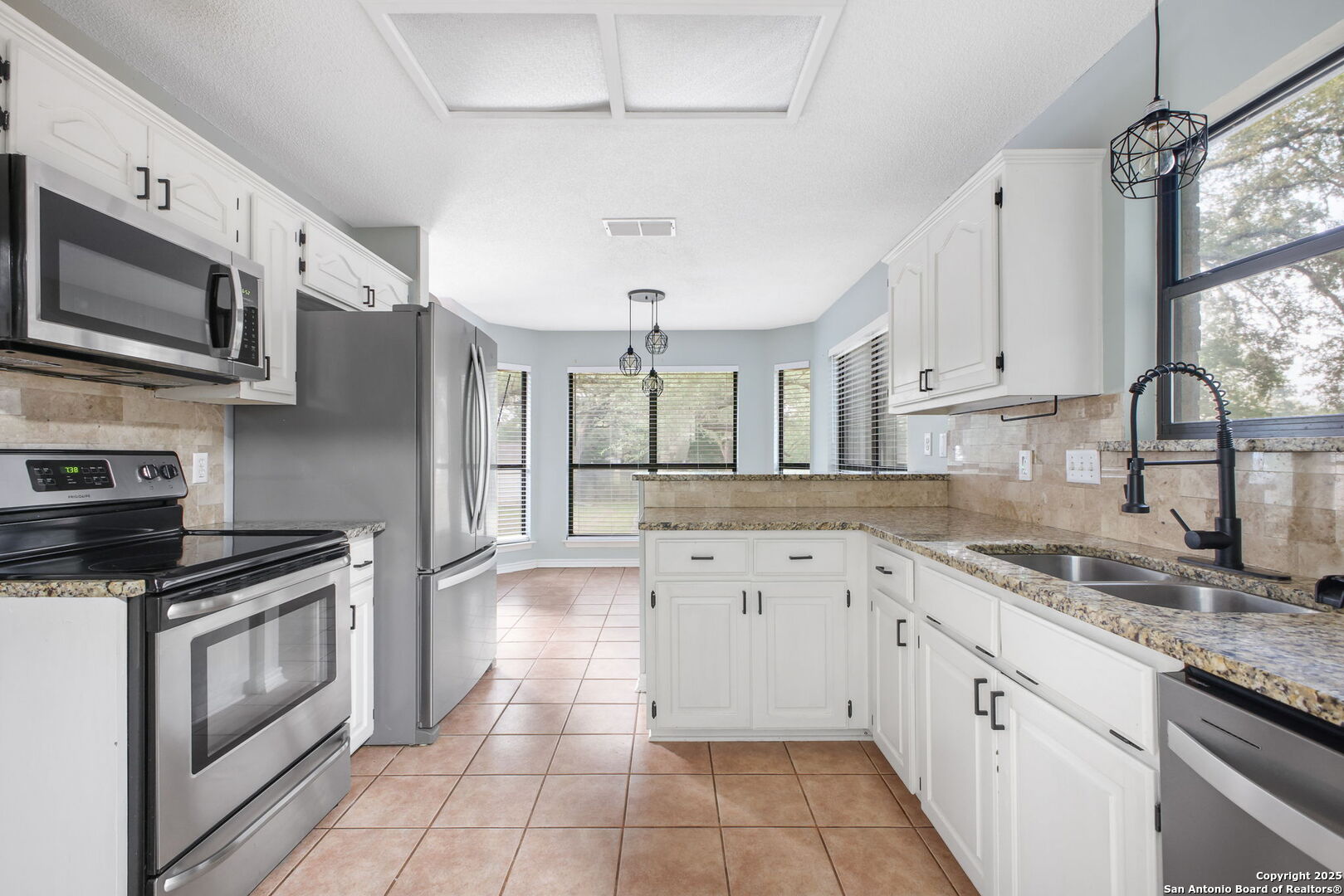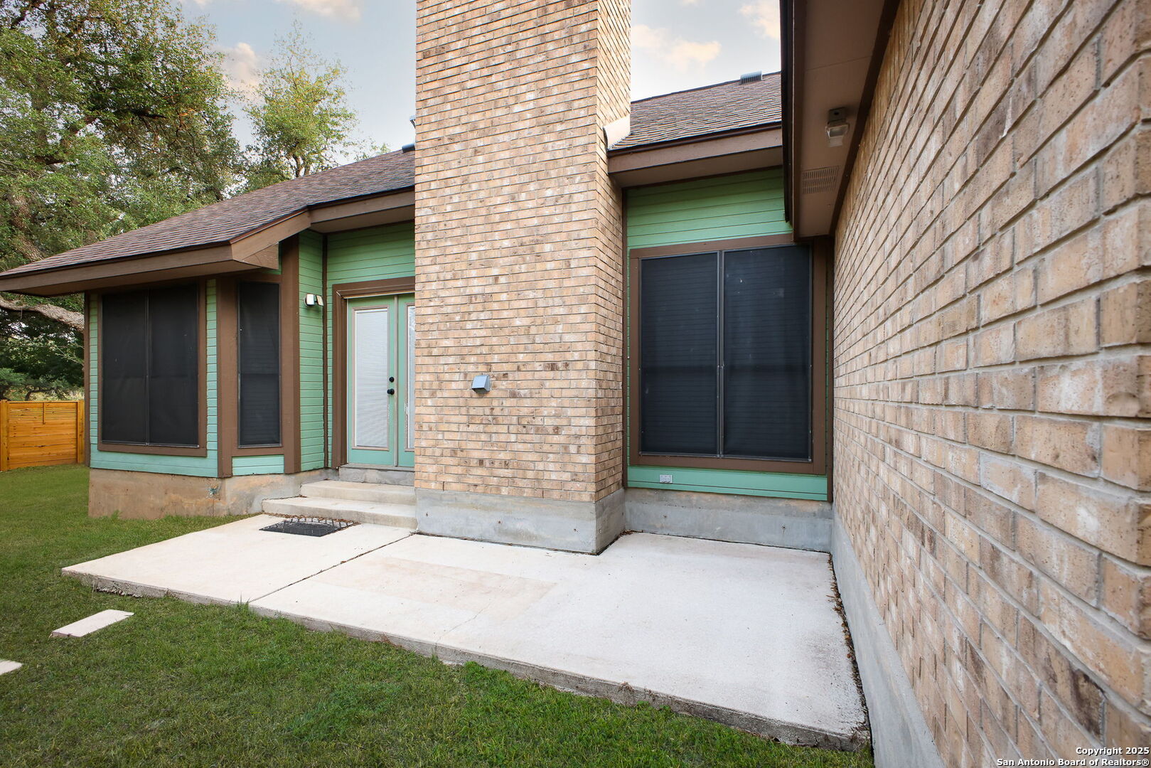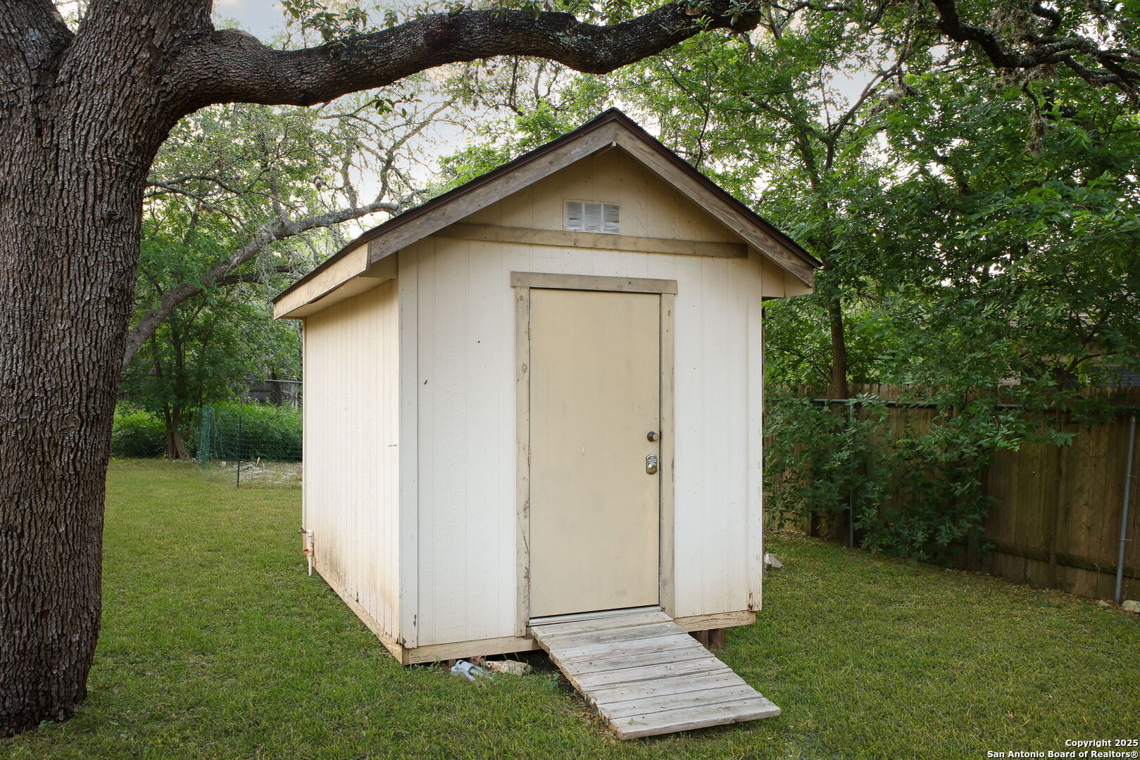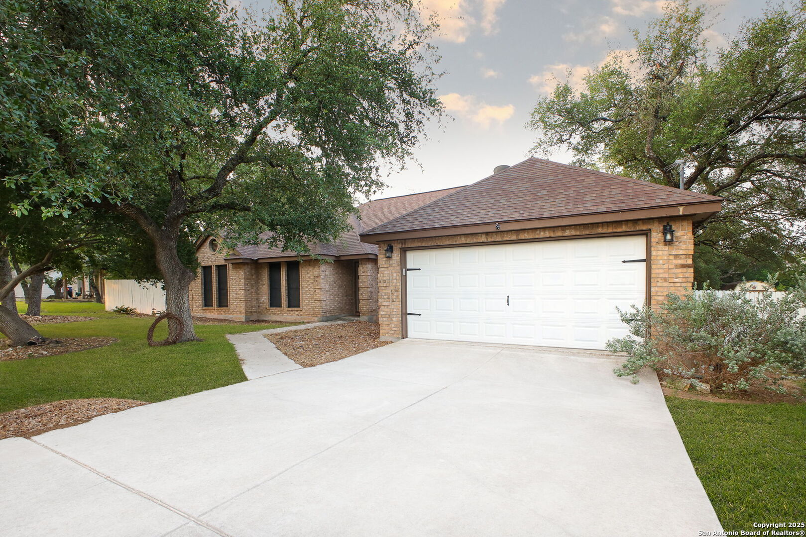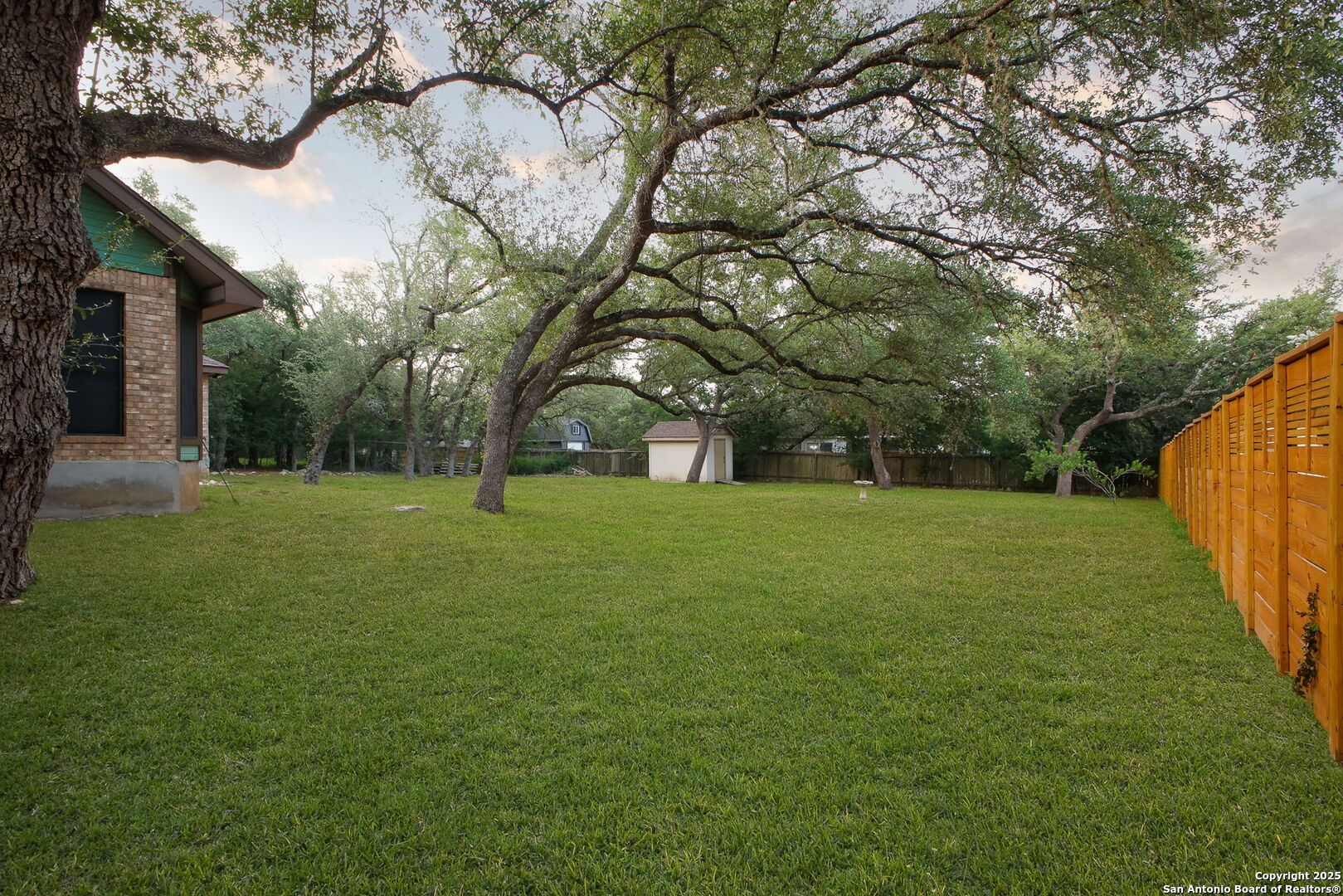 Country living with city convenience in this custom one story 3/2/2 home on almost half acre! Tranquil backyard w/ mature trees, & storage building. This home features hard wood floors, remodeled bathrooms, HVAC & Stove replaced in 2017. All other appliances are 2022 and newer. Square Feet is 1864 per appraiser. Amazing 30 acre neighborhood amenity center with tons of family, fitness, and live music activities. Start living the dream in one of San Antonio's top neighborhoods.