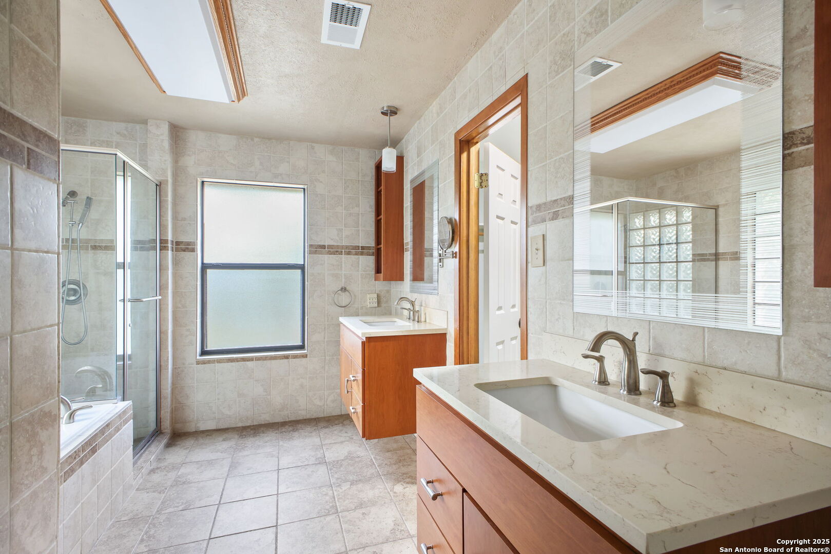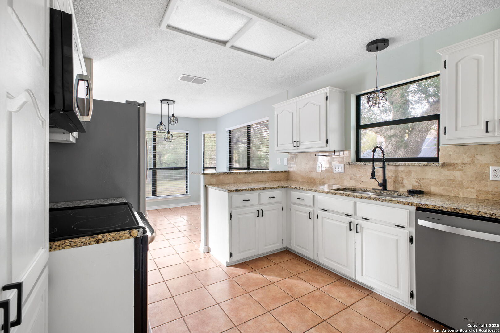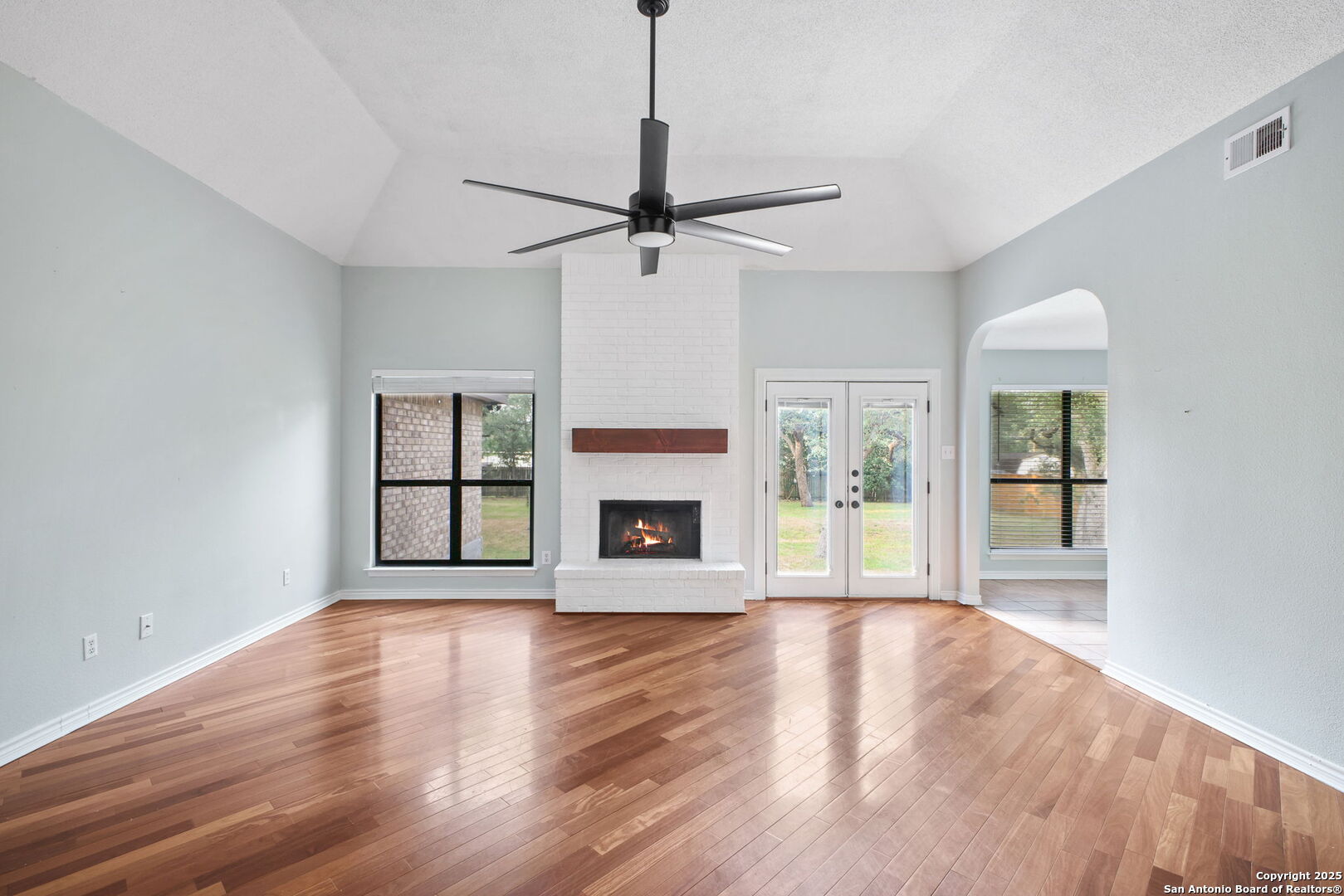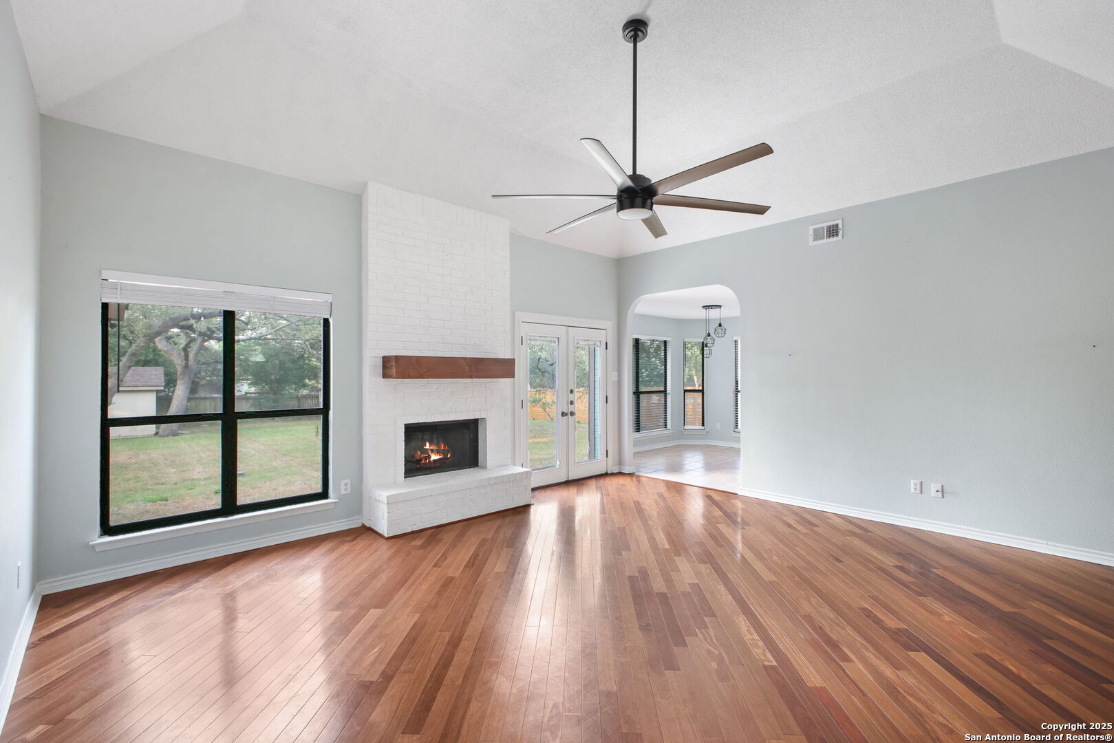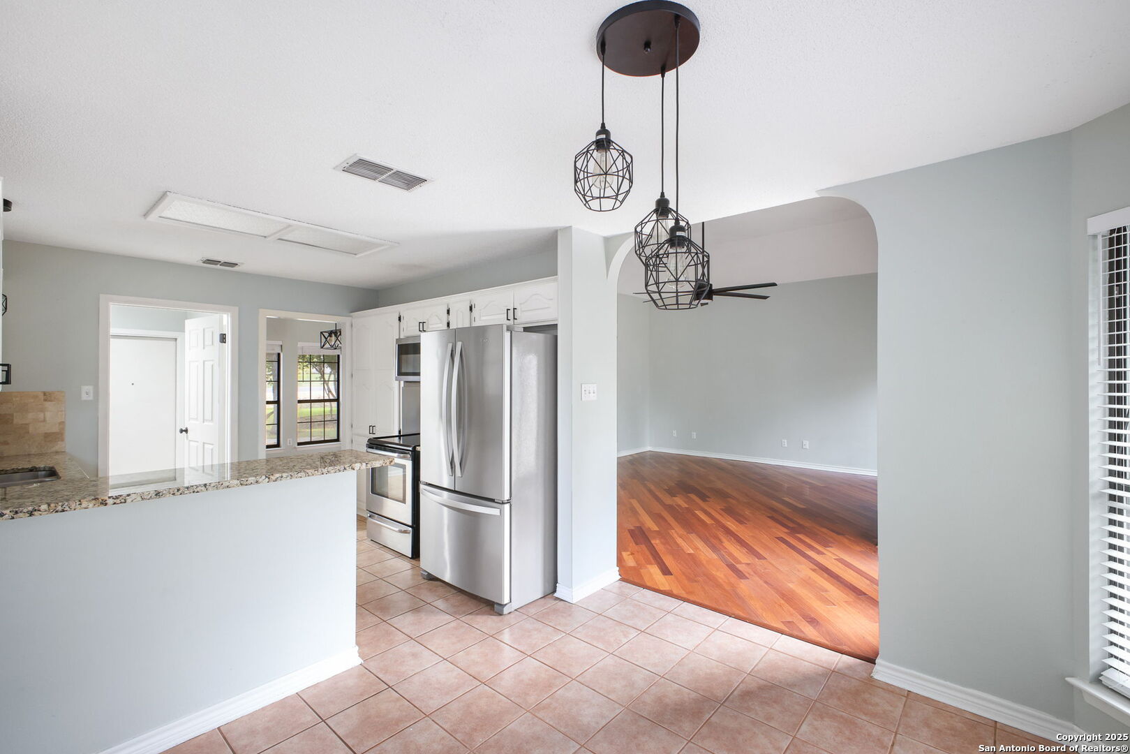 Country living with city convenience in this custom one story 3/2/2 home on almost half acre! Tranquil backyard w/ mature trees, & storage building. This home features hard wood floors, remodeled bathrooms, HVAC & Stove replaced in 2017. All other appliances are 2022 and newer. Square Feet is 1864 per appraiser. Amazing 30 acre neighborhood amenity center with tons of family, fitness, and live music activities. Start living the dream in one of San Antonio's top neighborhoods.