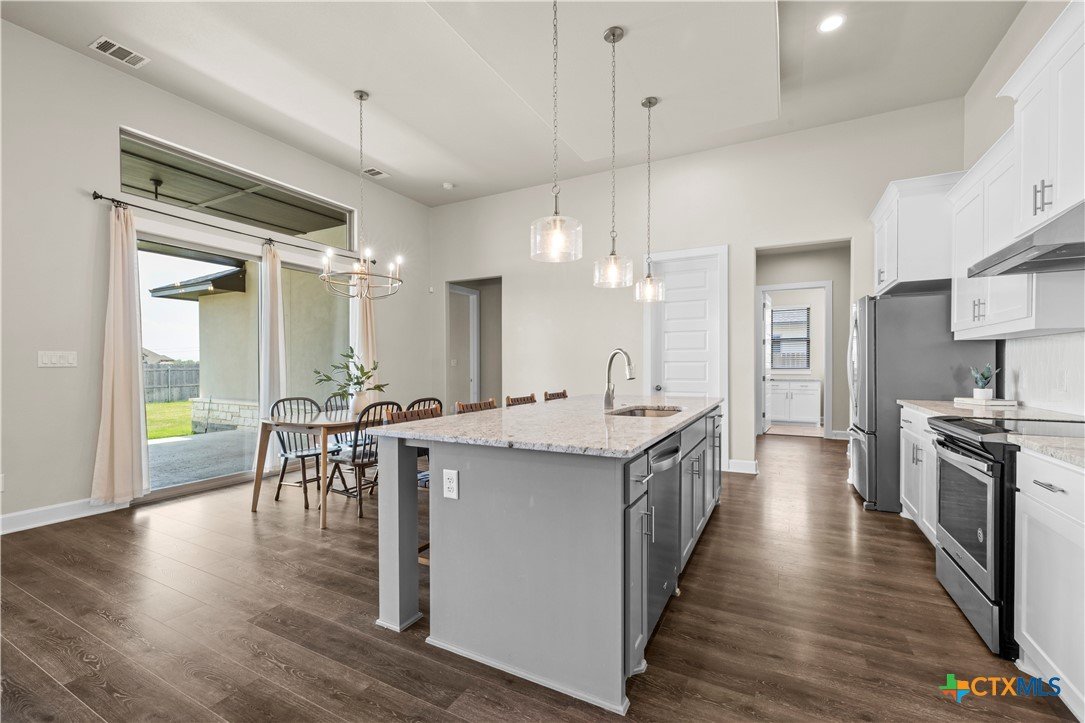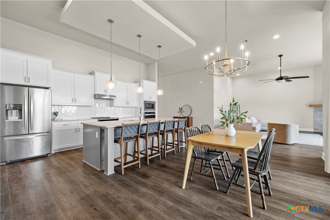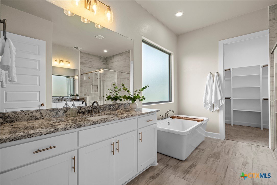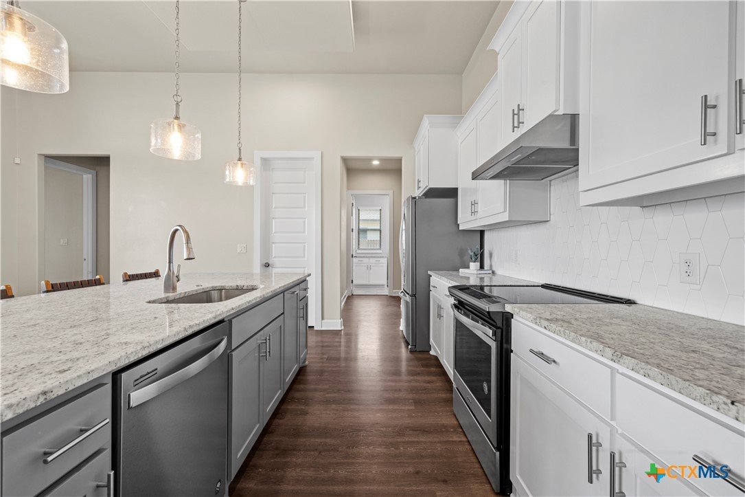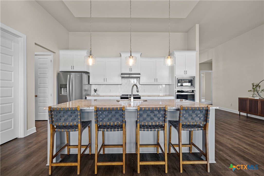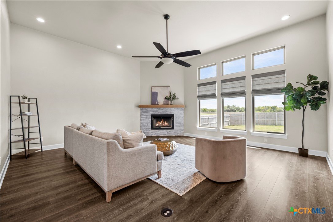 $10,000 credit to use toward closing costs or a rate buy down with this move-in ready home. Inside, you’ll find 4 bedrooms, 3 full bathrooms and a spacious 3-car garage. The open kitchen showcases an oversized island with quartz countertops, stainless steel appliances and a seamless flow into the dining and living areas.Tall ceilings, 8-foot doors and a wood-burning fireplace add both style and warmth. The primary suite is a true retreat with a freestanding tub, oversized shower, and a walk-in closet. Additional bedrooms are generously sized and versatile, perfect for guests or a home office. Step outside to a covered patio overlooking a fully sodded yard with irrigation—low maintenance and ready for backyard gatherings. Located near South 31st and Hwy 93 keeps you close to shopping, dining, and Scott & White Hospital, all within Belton ISD. Energy-efficient spray foam insulation makes this home as practical as it is beautiful.
