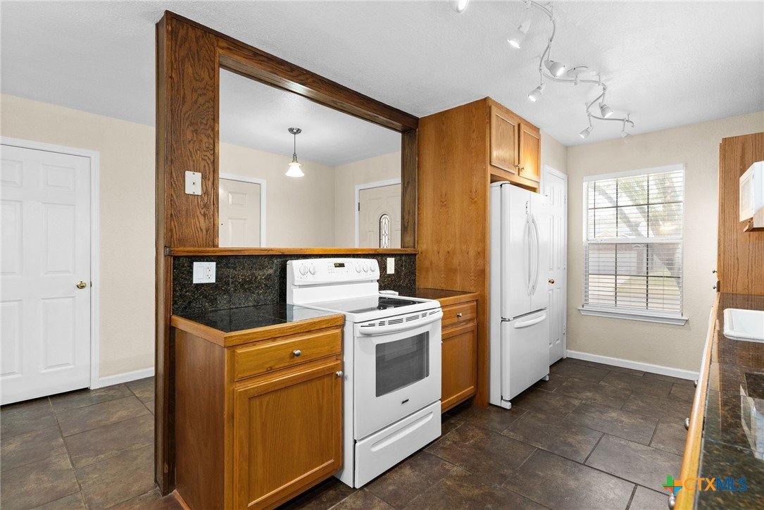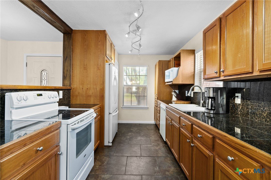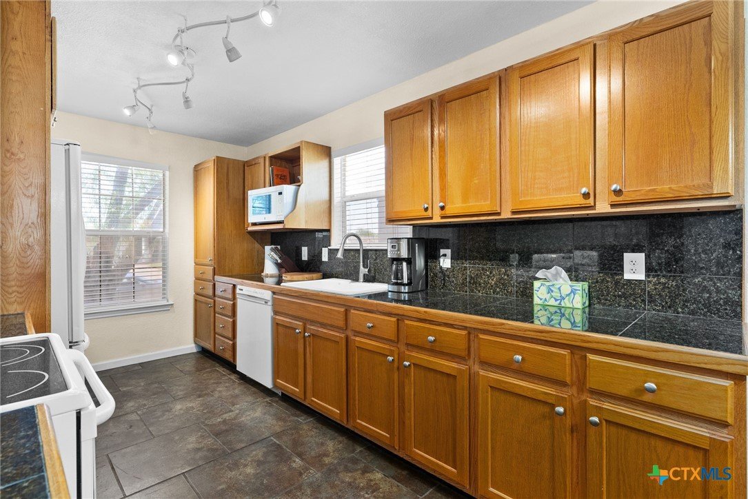 Great new look, with a great low price! This super charming home is ready for a new family to call it their own. Pride of ownership just shines here. With all the recent updates completed all you will need to do is unpack & decorate. Featuring three bedroom, two full bathrooms, and two car garage. The kitchen was remodeled adding more cabinets and granite tile counter space than before to enjoy moving around the kitchen more freely. The living area is open concept design including the dining area with plenty of windows to let in all the sunshine. The main bedroom is a great size with a walk in closet, Glass doors leading to the backyard and an on-suite bathroom with double sinks and new shower tiles. This home also has all laminate flooring(no carpet) for easier maintenance. You will Enjoy the covered porch, great size yard, 8x8 Shed and fully fenced backyard . You will love how well maintained this home is! (Tree in the front yard was recently removed)