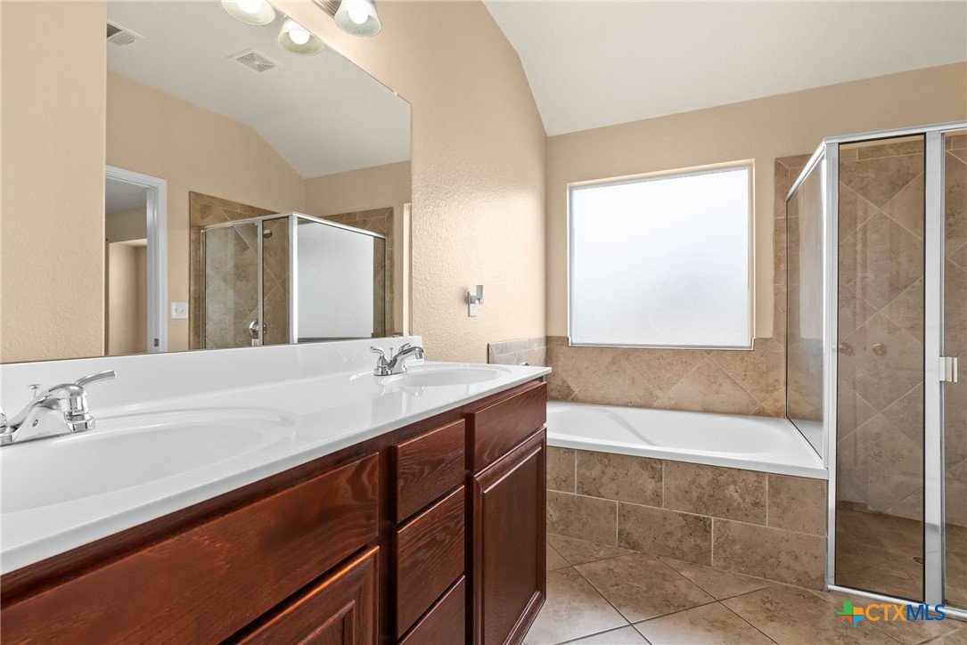Welcome to this charming 3 bedroom, 2 bathroom home located in the desirable Goodnight Ranch Subdivision in Killeen, TX. Built in 2011, this well-maintained house features a spacious living room with a cozy fireplace, perfect for relaxing or entertaining guests. The primary bedroom offers an ensuite with a double vanity, soaking tub, separate shower, and a walk-in closet. The kitchen boasts granite counters, stainless steel/black appliances, and plenty of cabinet space. Enjoy the convenience of a separate laundry room and a 2 car garage for parking or extra storage. The home also includes a wood privacy fence for added security and privacy. With 1586 sq ft of living space, this home is the perfect place to make lasting memories.