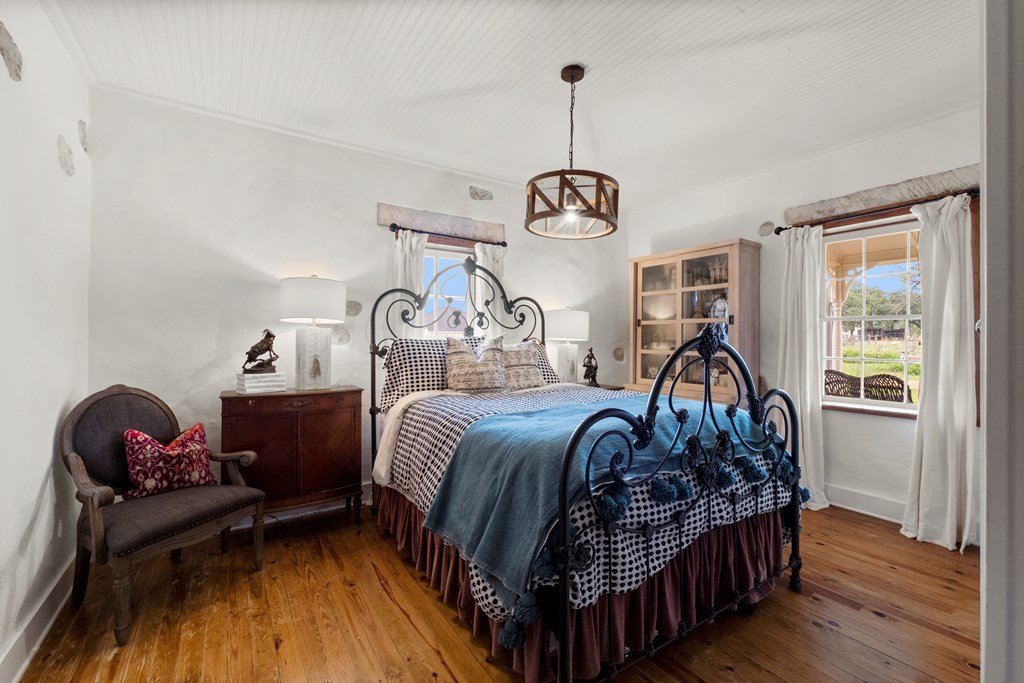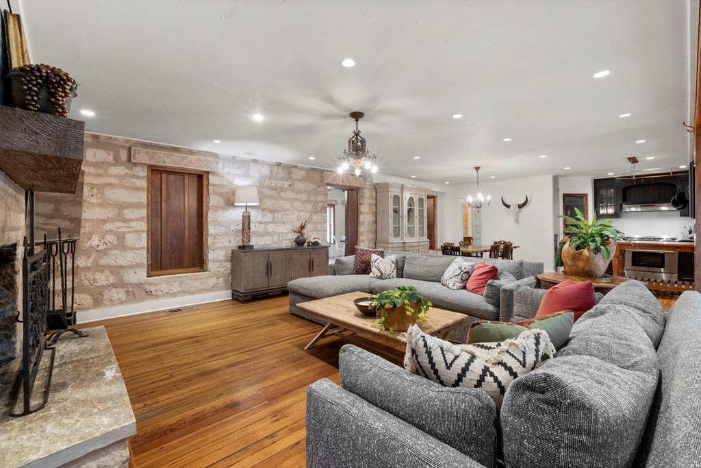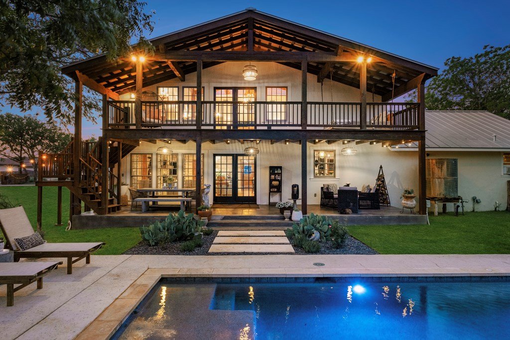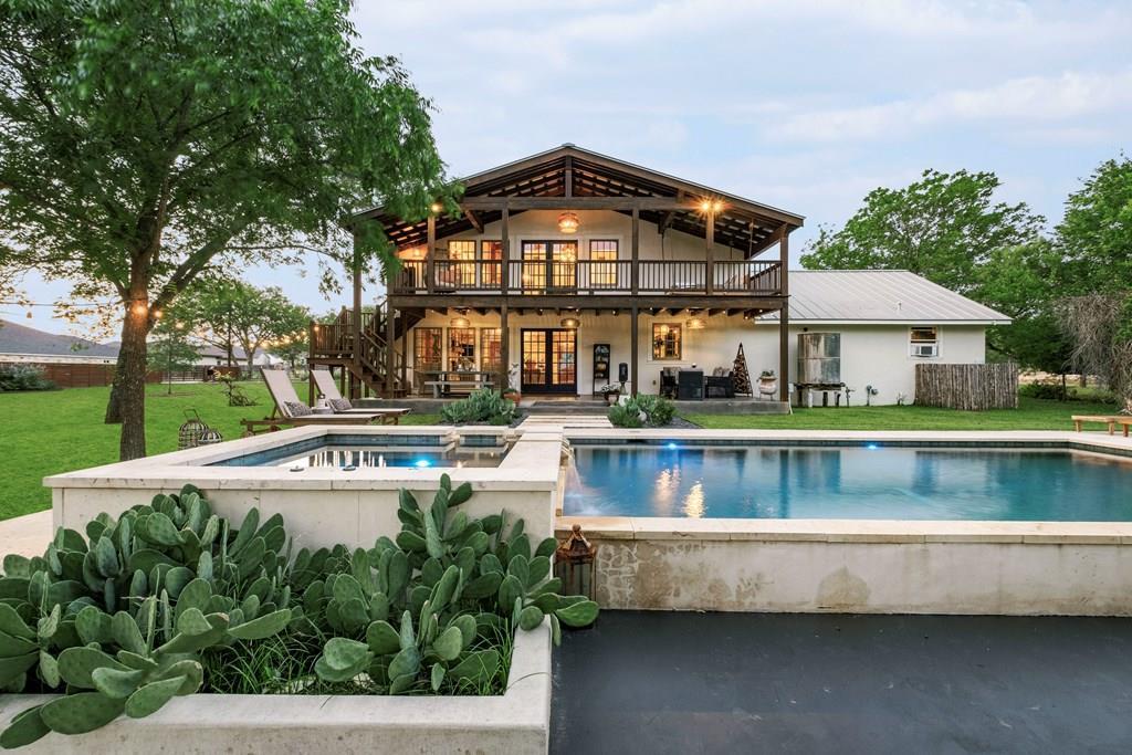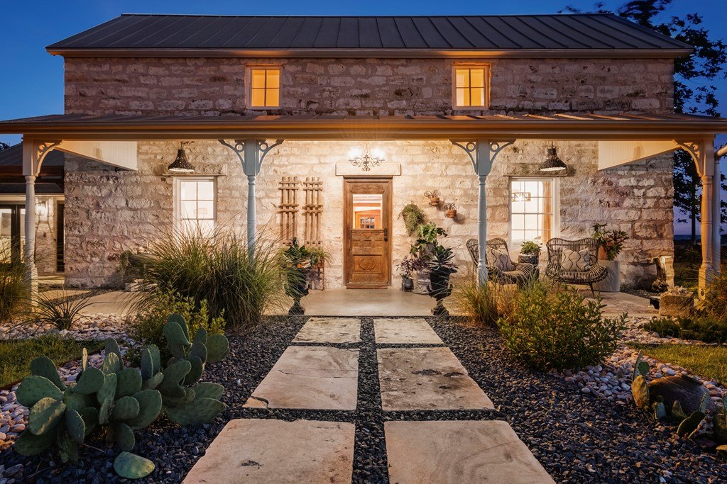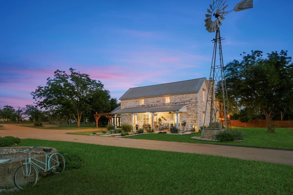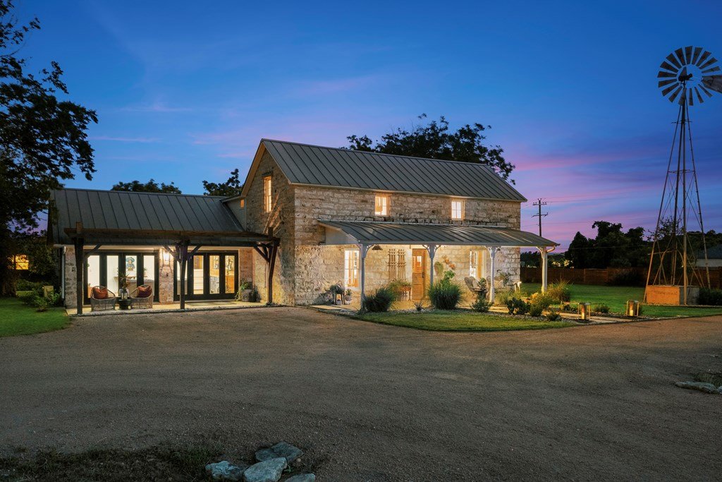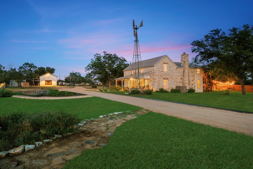 Experience the charm of Fredericksburg history in this exquisitely refurbished 4,120sqft limestone home, where timeless elegance meets modern luxury. Located on over 4 acres of beautifully landscaped grounds, this remarkable property features 4 spacious bedrooms and 3 full baths, making it an ideal sanctuary for families or entertainers alike. The chef's kitchen opens to a generous living area, offering the perfect backdrop for daily gatherings and celebrations while providing stunning views of the inviting pool, spa, and outdoor entertaining spaces. A cozy family room adds warmth and comfort, while the formal dining room highlights extraordinary craftsmanship that reflects Fredericksburg's rich architectural heritage. Behind a secure gated entrance lies an impressive hand-dug well with striking limestone walls, complemented by a vintage AeroMotor windmill that infuses the property with unique character and history. The barn, currently serving as a workout room and storage space, features ample loft storage, a secure gun room, and an overhead door. More possibilities, the adjacent 6 acres are available for purchase, along with four income-producing cabins listed (89 Ololo Ln)