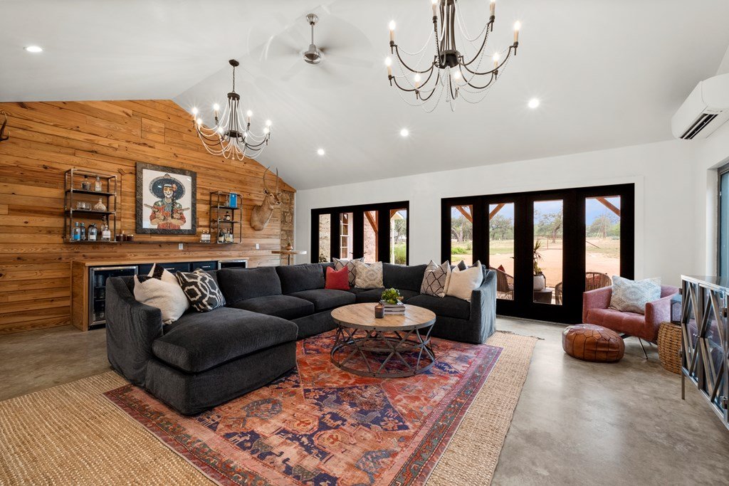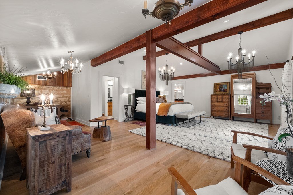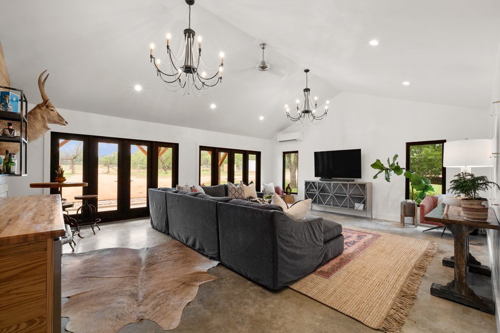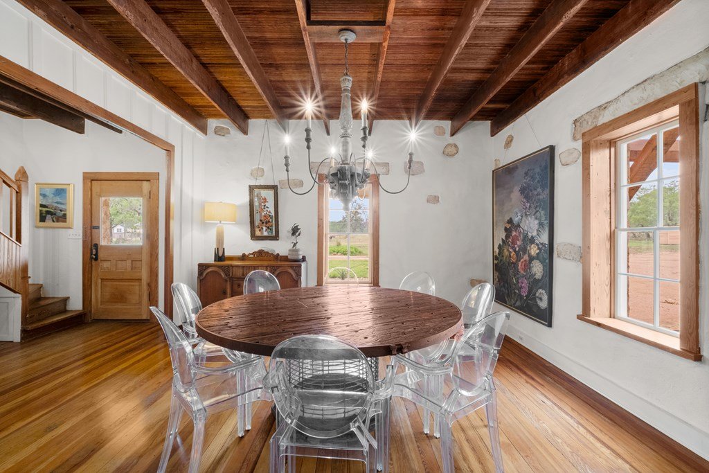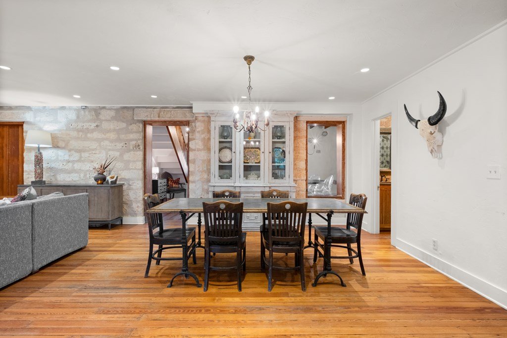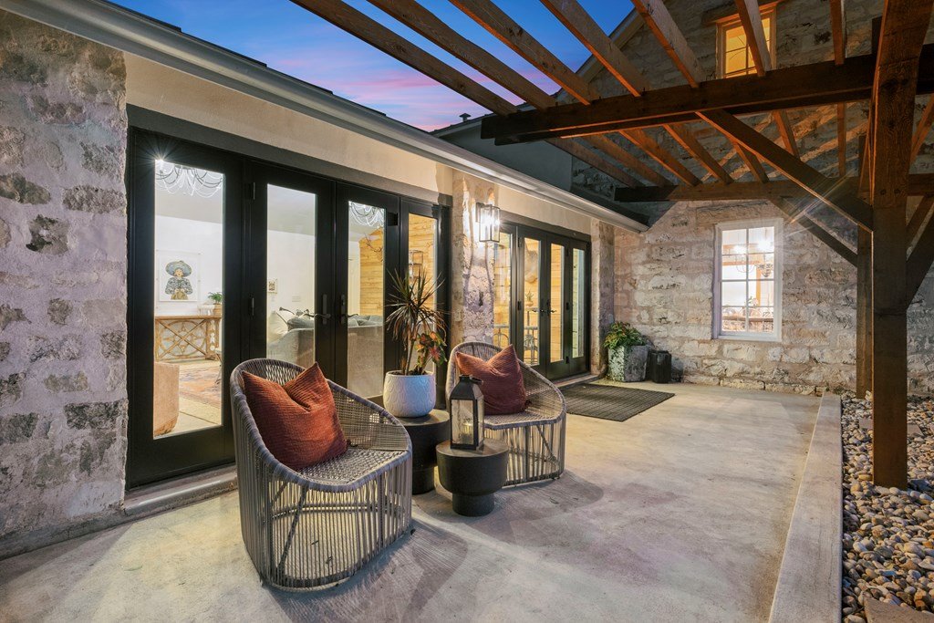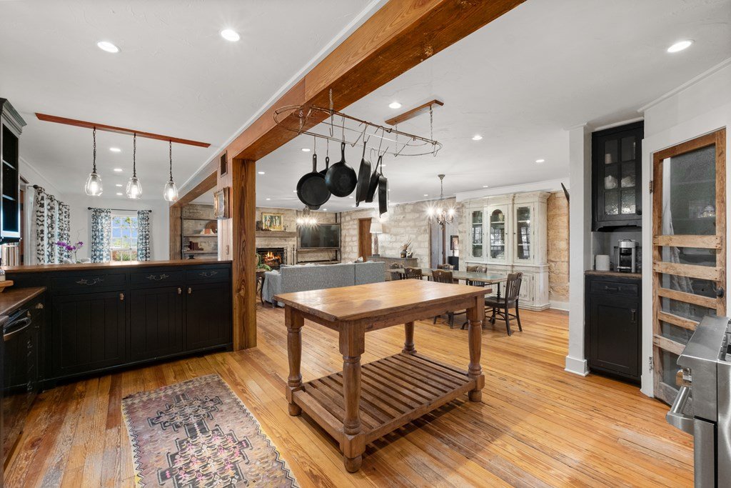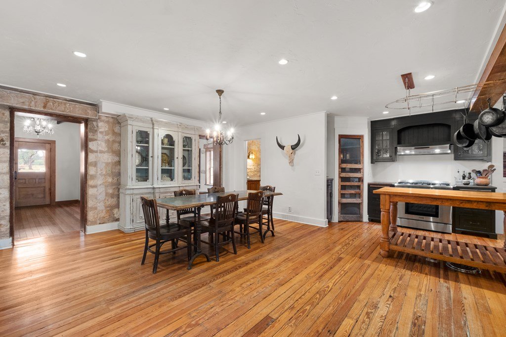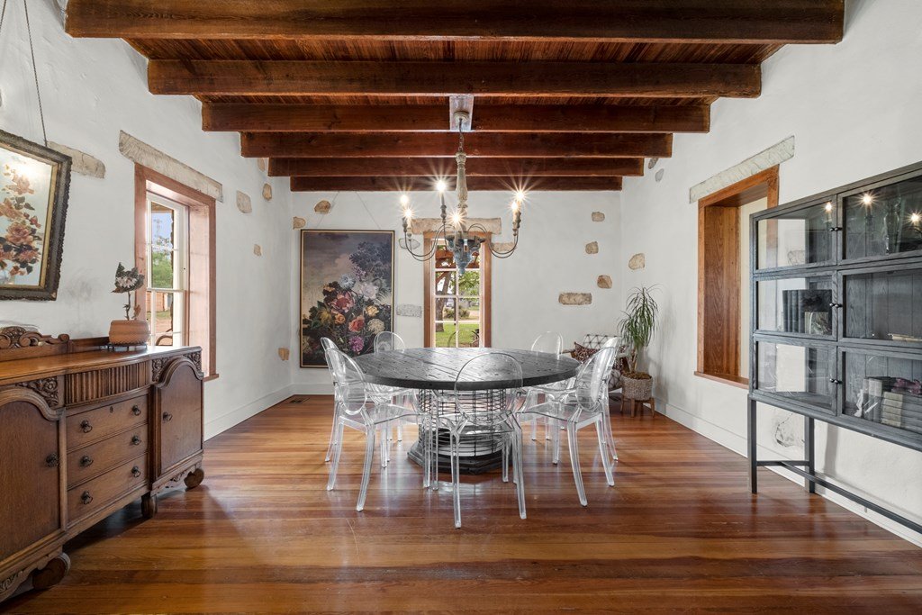 Experience the charm of Fredericksburg history in this exquisitely refurbished 4,120sqft limestone home, where timeless elegance meets modern luxury. Located on over 4 acres of beautifully landscaped grounds, this remarkable property features 4 spacious bedrooms and 3 full baths, making it an ideal sanctuary for families or entertainers alike. The chef's kitchen opens to a generous living area, offering the perfect backdrop for daily gatherings and celebrations while providing stunning views of the inviting pool, spa, and outdoor entertaining spaces. A cozy family room adds warmth and comfort, while the formal dining room highlights extraordinary craftsmanship that reflects Fredericksburg's rich architectural heritage. Behind a secure gated entrance lies an impressive hand-dug well with striking limestone walls, complemented by a vintage AeroMotor windmill that infuses the property with unique character and history. The barn, currently serving as a workout room and storage space, features ample loft storage, a secure gun room, and an overhead door. More possibilities, the adjacent 6 acres are available for purchase, along with four income-producing cabins listed (89 Ololo Ln)