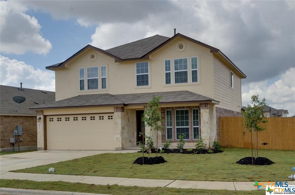 *NO CARPET* *BRAND NEW LVT UPSTAIRS**ALL TILE DOWNSTAIRS**FRESH PAINT**PROFESSIONALLY CLEANED AND READY FOR IMMEDIATE MOVE IN**Nicely maintained home with easy access to I-35 between San Marcos and San Antonio. Amenities center including swimming pool. Neighborhood Elementary School. Home has 4 bedrooms, 2 full baths, and 1 powder room downstairs. All bedrooms are upstairs. A study provides bonus space downstairs and has a very large living room that is open to the kitchen. Stainless steel appliances (gas stove) including a NEW refrigerator, granite counter tops, and washer and dryer. Corner lot creates an extra big back yard ! Over sized shower in Master Bath with double shower heads.