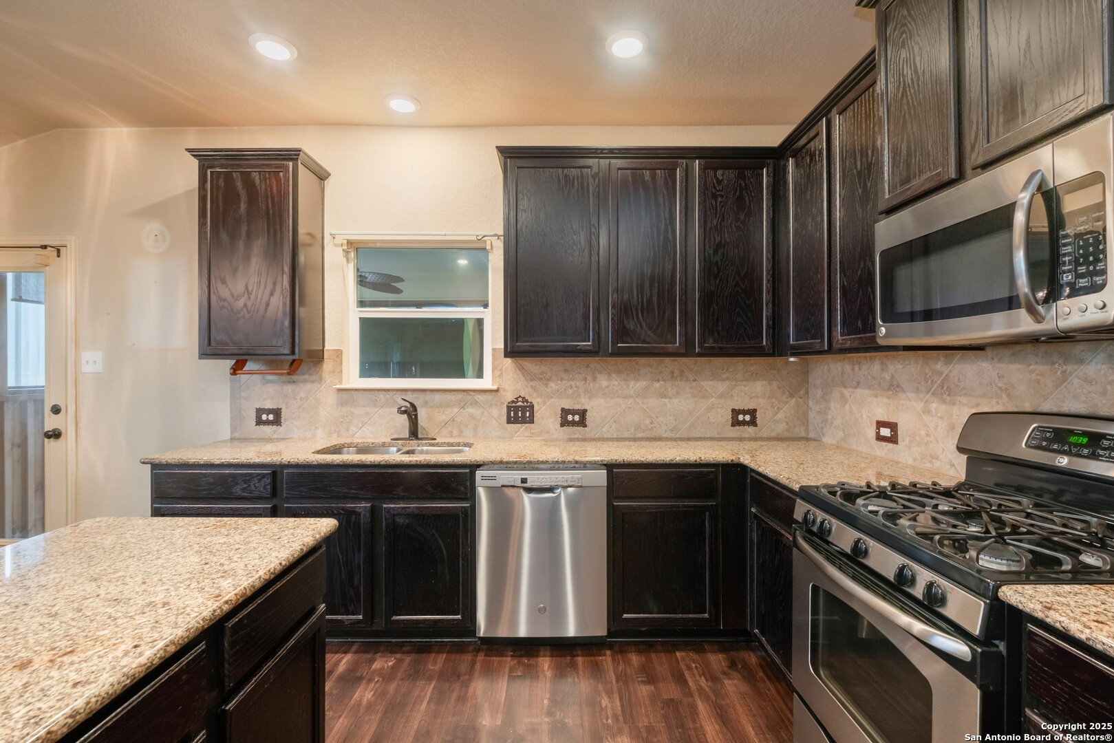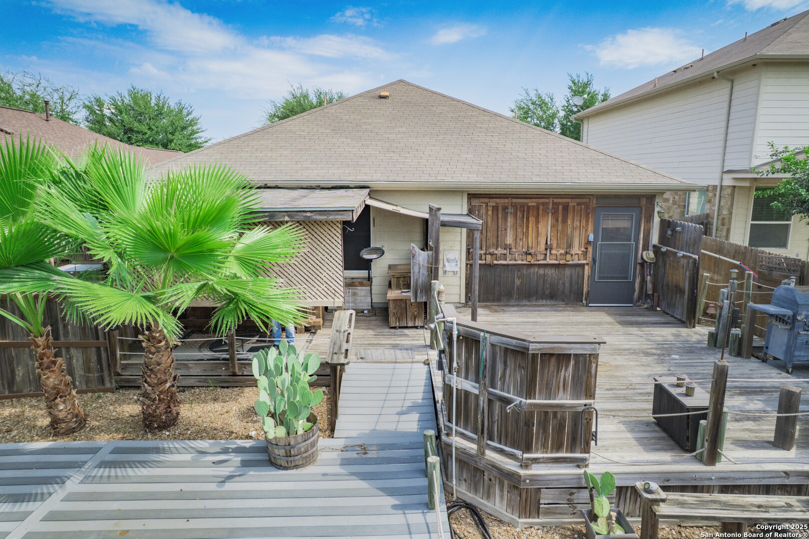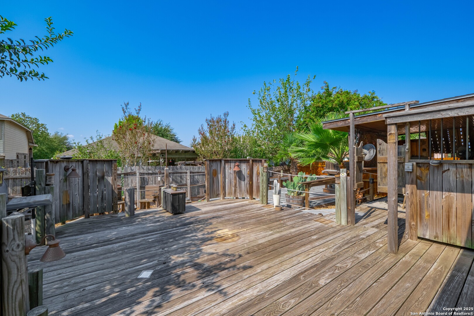 This well-maintained 3-bedroom, 2-bath single-story vacant home offers 1,584 sq. ft. of comfortable living space with thoughtful updates and plenty of room to enjoy both indoors and out. The interior features granite countertops, generous storage, and ample closet space throughout. A bonus room, converted from the porch, provides flexibility for a home office, playroom, or hobby area. Outdoors, youll find expansive deck areas that have been added over the years, creating multiple spots for relaxing or entertaining. An outdoor bar with a cover adds to the appeal, making this home ideal for gatherings. The property also includes an attached 2-car garage for parking and additional storage. Located just a few corners away from Oak Creek Elementary School, the home also offers access to community amenities, including a pool, playground, and sidewalks. With I-35, H-E-B Plus, Target, and a wide selection of shops and restaurants only minutes away, this property combines convenience, comfort, and lifestyle in one inviting package.