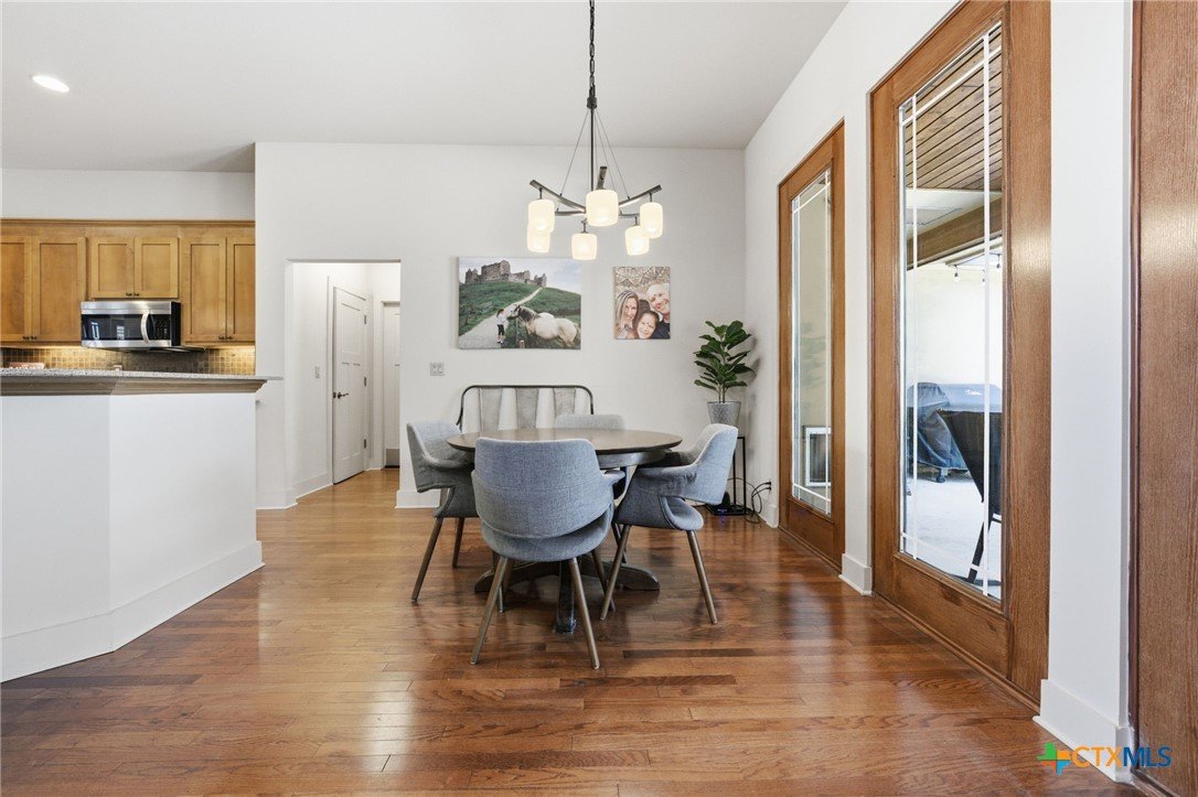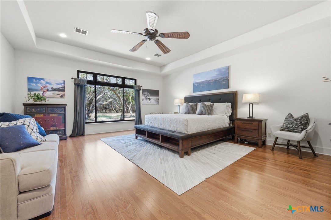 Discover effortless Hill Country charm in this expansive single-story residence with a large versatile loft, set within the prestigious Rockwall Ranch neighborhood. Designed with both sophistication and comfort in mind, this home offers generous proportions, seamless flow, and refined everyday living. Wide hallways and doorways, lever door handles, and an accessible open shower reflect a thoughtful approach to design, while abundant natural light enhances the home's welcoming atmosphere. The oversized loft provides flexible space with a full bath. Ideal for a secondary living area, creative studio, or private retreat. A side-entry three-car garage complements the home's striking curb appeal. Residents enjoy exclusive access to resort-style amenities including a pool, clubhouse, fitness center, playground, and tennis courts. Surrounded by mature trees, this peaceful setting offers the perfect balance of privacy and convenience-just a few minutes from major roadways and everything New Braunfels has to offer. A truly exceptional opportunity for elevated single-level living. A must see!