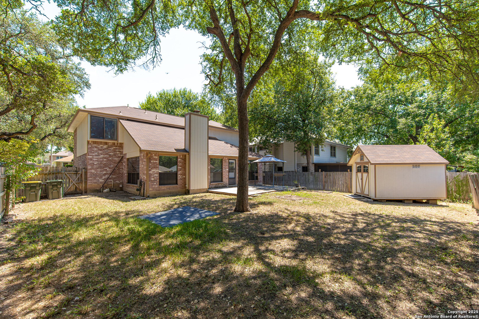 Welcome to a residence that perfectly blends timeless charm with modern functionality. Situated in one of the area's most desirable and established neighborhoods, this thoughtfully designed home boasts a highly sought-after floor plan that lives as beautifully as it looks. Step inside to a warm and inviting living room, anchored by a classic fireplace-perfect for cozy evenings and gatherings. The kitchen is a culinary delight, offering abundant counter space, generous cabinetry, and a seamless flow to both the charming breakfast area and the separate formal dining room. Upstairs, retreat to a grand primary suite featuring a spa-inspired bathroom with dual vanities, an expansive walk-in shower, and a large custom walk-in closet. Every detail whispers comfort and luxury. Outdoors, mature shade trees frame a welcoming front entry, while the spacious backyard-with a storage shed-offers endless possibilities for relaxation, play, and entertaining. Ideally located near Randolph AFB, Fort Sam Houston, premier shopping, dining, and entertainment, and served by a well-regarded school district, this home offers the perfect balance of lifestyle, convenience, and community. Your opportunity to rent in a location this exceptional doesn't come often-schedule your private showing today.