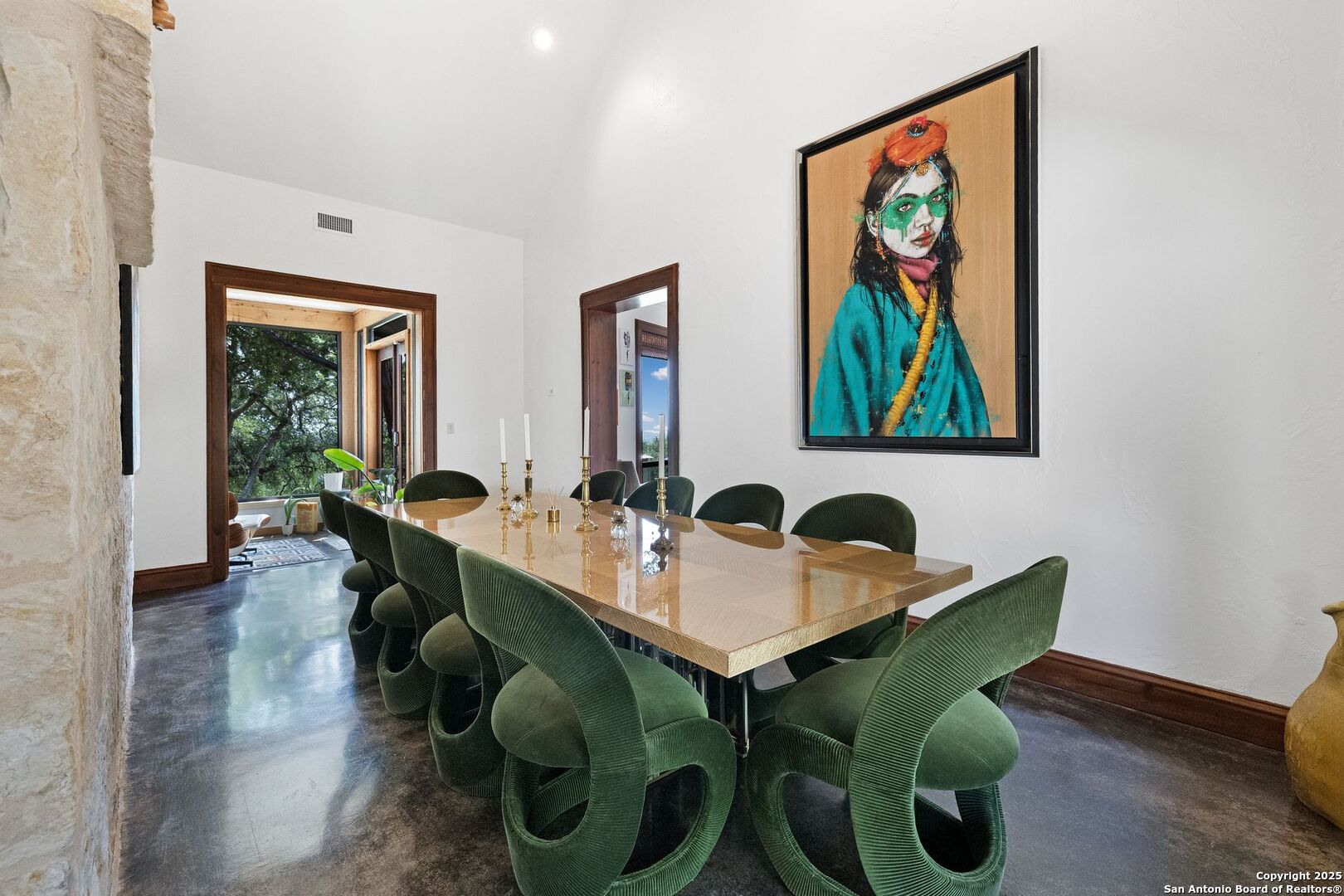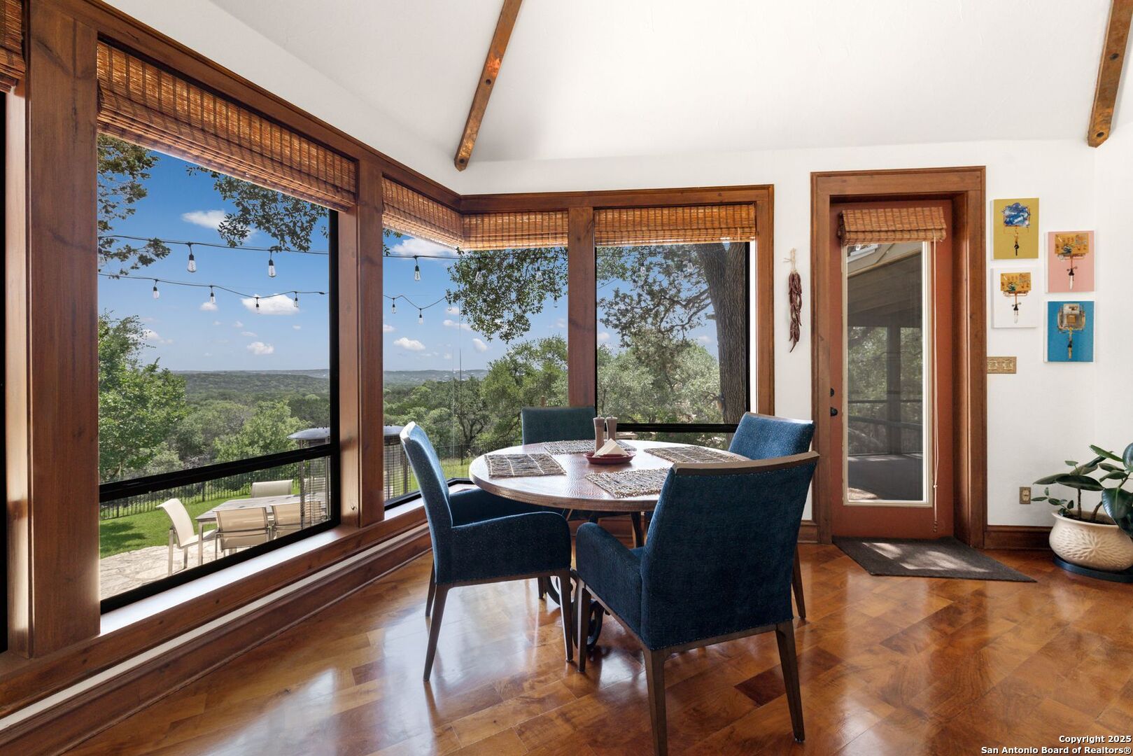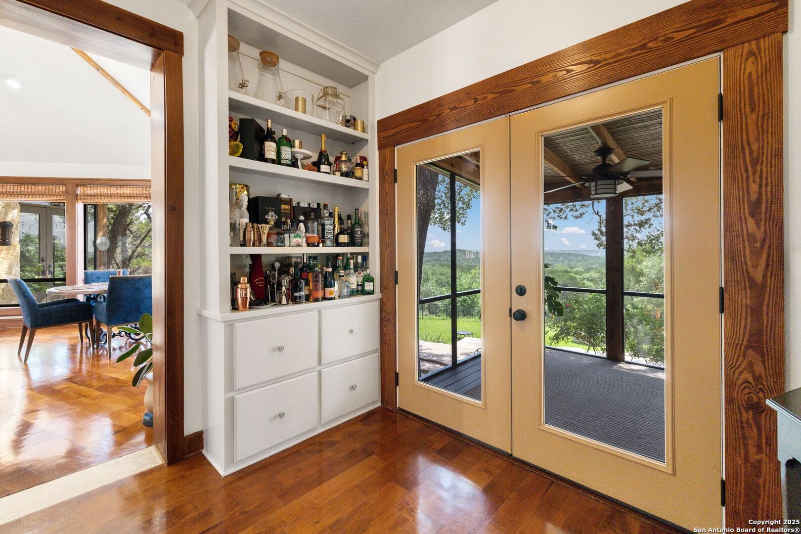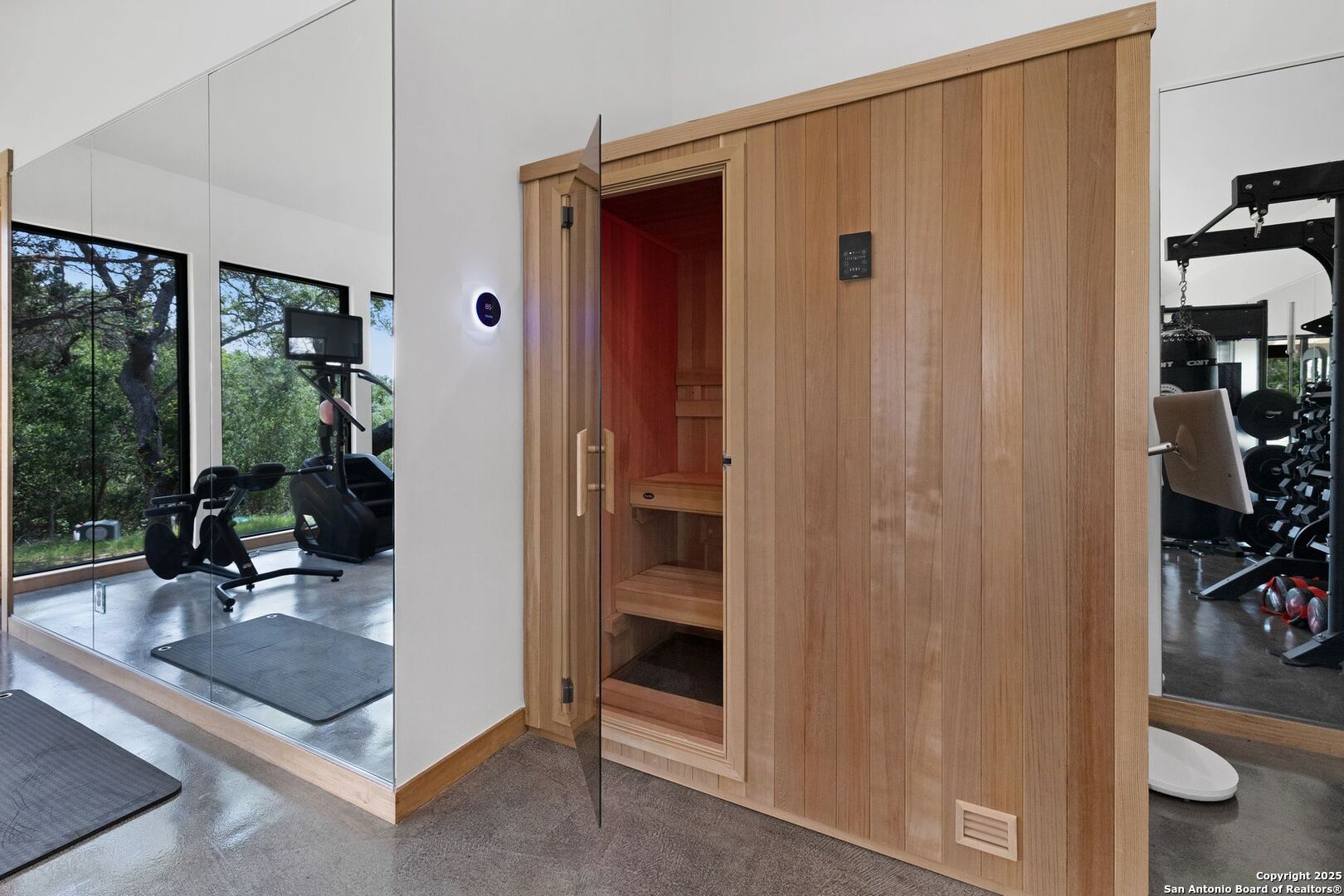 Your own private Hill Country haven just minutes from I-10. A truly exceptional 5.93-acre retreat that backs to an 800-acre private preserve, offering spectacular panoramic views, unmatched privacy, and the freedom of unrestricted living. This peaceful estate features a 3,272 sqft custom Rustic Contemporary home designed for comfort and elegance. Soaring vaulted ceilings and limestone accent walls create a dramatic yet warm atmosphere in the living and dining areas. The gourmet kitchen is a chef's dream, boasting a massive granite center island, custom cabinetry a striking copper vent hood, Viking gas range, and a generous breakfast area that invites casual dining with stunning views. The spacious primary suite is a private sanctuary with patio access, a spa-inspired bath featuring dual granite vanities, frameless glass shower, and custom his-and-her walk-in closets with built-ins. The split floor-plan ensures privacy, with generous secondary bedrooms thoughtfully positioned away from the master wing. Step outside to a screened patio, fully fenced grounds and multiple luxury lifestyle amenities. A detached 850 sqft gym with a full bath offers flexibility as a fitness space, guest house, or creative studio. Adjacent is a spa for the ultimate relaxation. Entertain effortlessly at the outdoor kitchen, complete with a pizza oven and authentic Argentine grill. For the enthusiast or collector, the property includes a massive 2,400 sqft climate-controlled garage perfect as a mega man cave, workshop, or car collector's dream setup. In addition to the main garage, the property includes general garage parking for 10+ more vehicles, offering a total setup that's virtually unmatched for nearly 20 vehicles. Whether you're a serious collector, hobbyist, or just want the ultimate space to store, work, and entertain - this property delivers on all fronts. State-of-the-art security with RFID gated entry that ensures both privacy and convenience. This is Hill Country living at its finest. Luxury, freedom, and endless views. Schedule your private showing today.