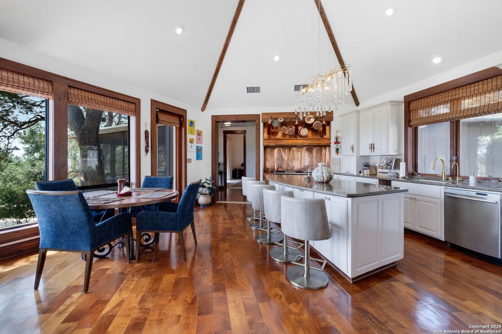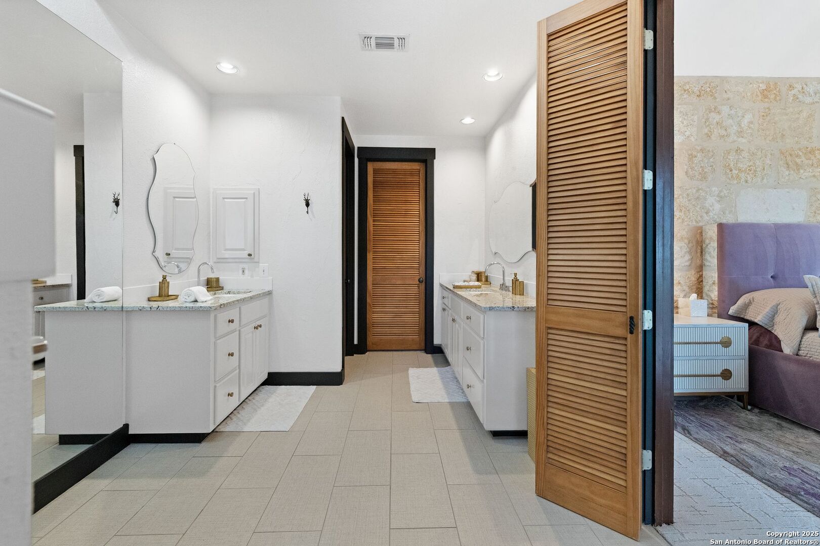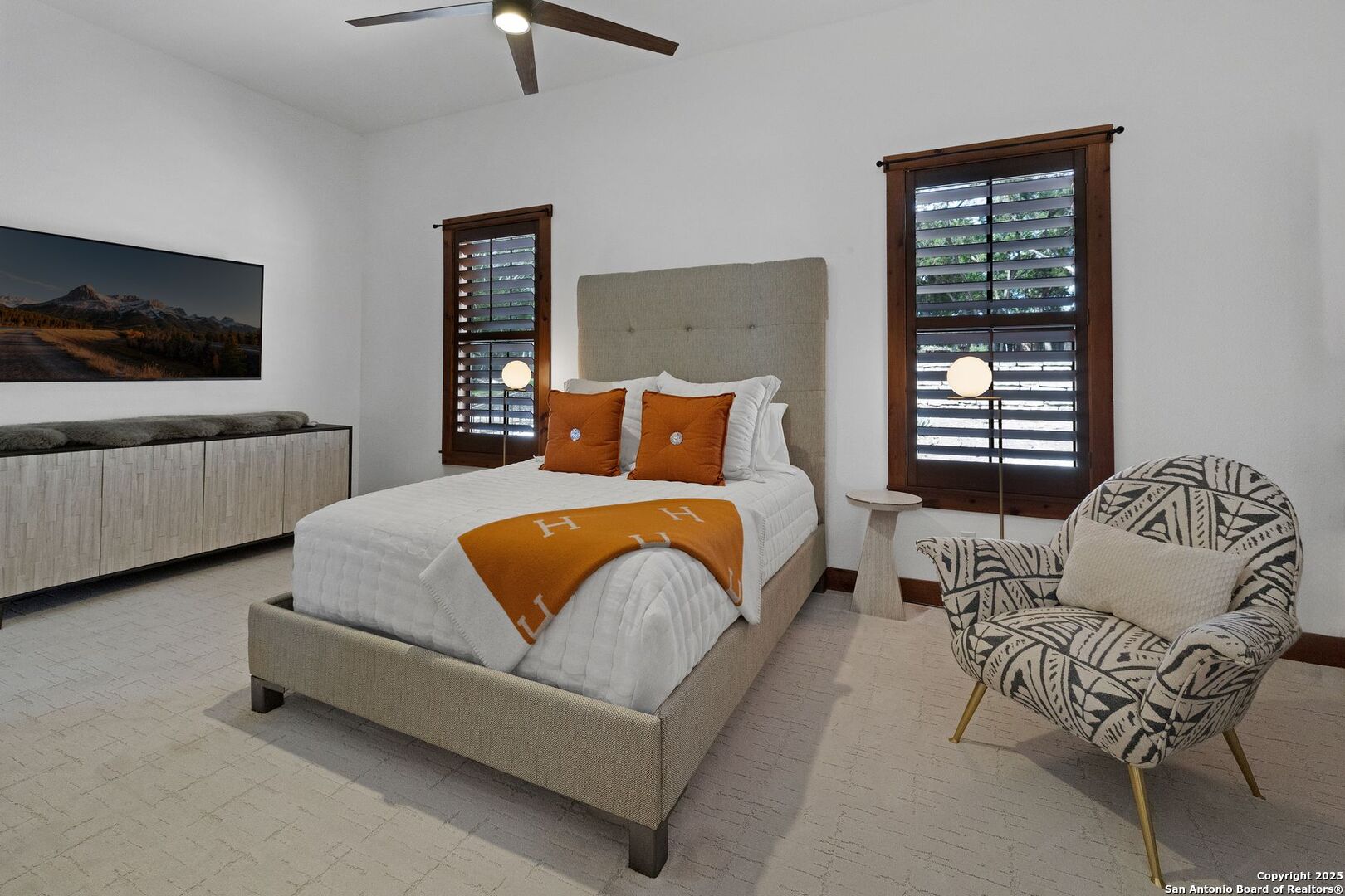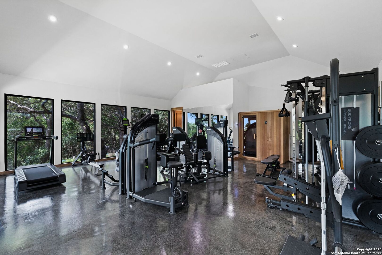 Your own private Hill Country haven just minutes from I-10. A truly exceptional 5.93-acre retreat that backs to an 800-acre private preserve, offering spectacular panoramic views, unmatched privacy, and the freedom of unrestricted living. This peaceful estate features a 3,272 sqft custom Rustic Contemporary home designed for comfort and elegance. Soaring vaulted ceilings and limestone accent walls create a dramatic yet warm atmosphere in the living and dining areas. The gourmet kitchen is a chef's dream, boasting a massive granite center island, custom cabinetry a striking copper vent hood, Viking gas range, and a generous breakfast area that invites casual dining with stunning views. The spacious primary suite is a private sanctuary with patio access, a spa-inspired bath featuring dual granite vanities, frameless glass shower, and custom his-and-her walk-in closets with built-ins. The split floor-plan ensures privacy, with generous secondary bedrooms thoughtfully positioned away from the master wing. Step outside to a screened patio, fully fenced grounds and multiple luxury lifestyle amenities. A detached 850 sqft gym with a full bath offers flexibility as a fitness space, guest house, or creative studio. Adjacent is a spa for the ultimate relaxation. Entertain effortlessly at the outdoor kitchen, complete with a pizza oven and authentic Argentine grill. For the enthusiast or collector, the property includes a massive 2,400 sqft climate-controlled garage perfect as a mega man cave, workshop, or car collector's dream setup. In addition to the main garage, the property includes general garage parking for 10+ more vehicles, offering a total setup that's virtually unmatched for nearly 20 vehicles. Whether you're a serious collector, hobbyist, or just want the ultimate space to store, work, and entertain - this property delivers on all fronts. State-of-the-art security with RFID gated entry that ensures both privacy and convenience. This is Hill Country living at its finest. Luxury, freedom, and endless views. Schedule your private showing today.
