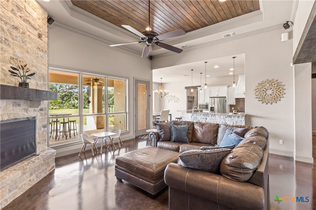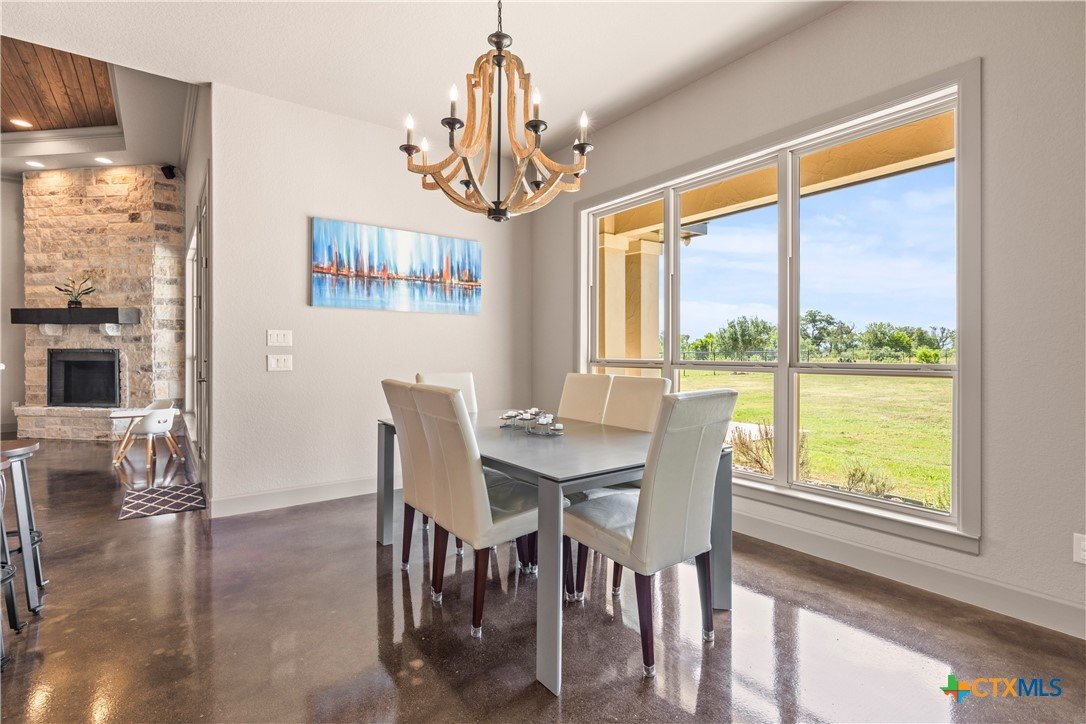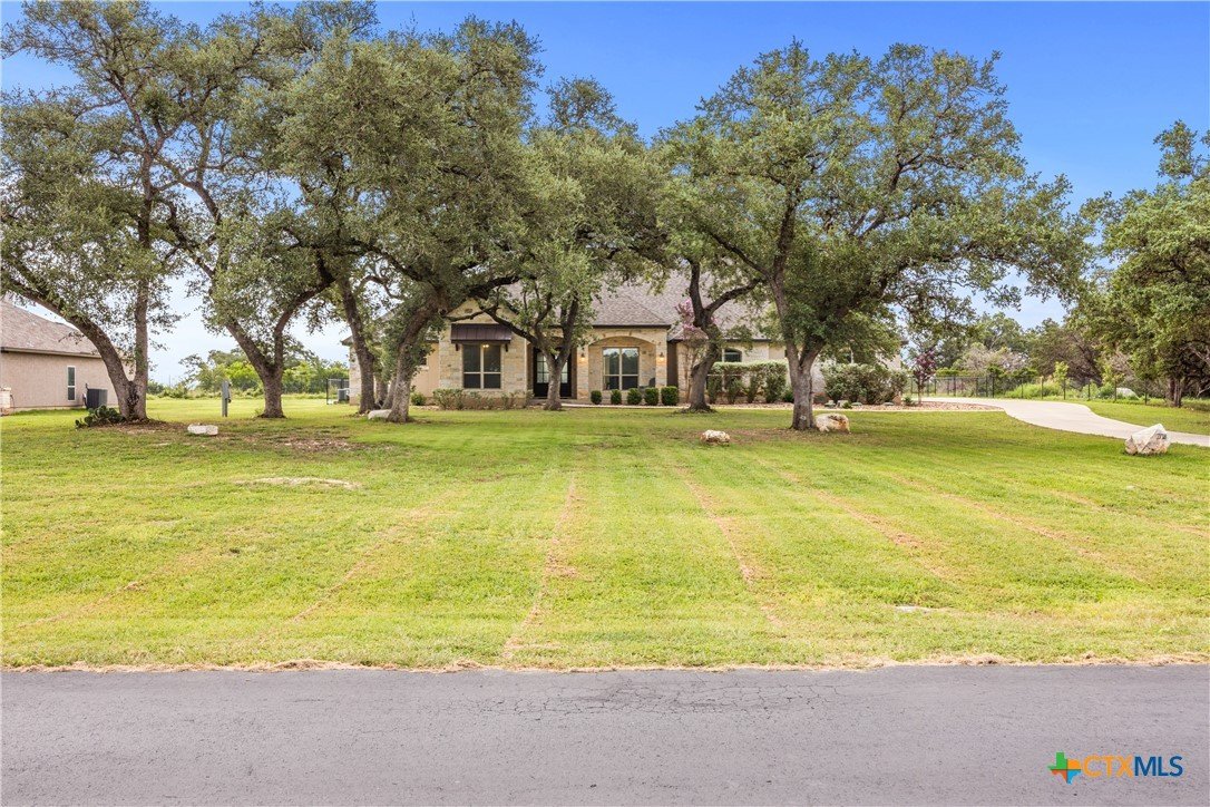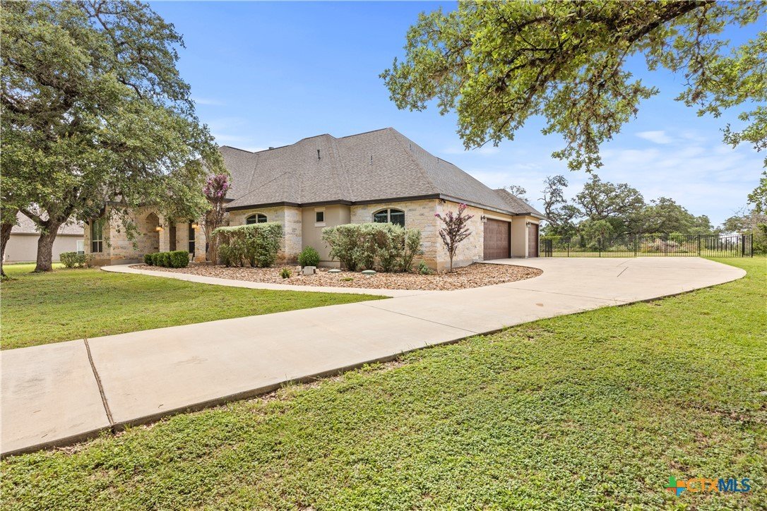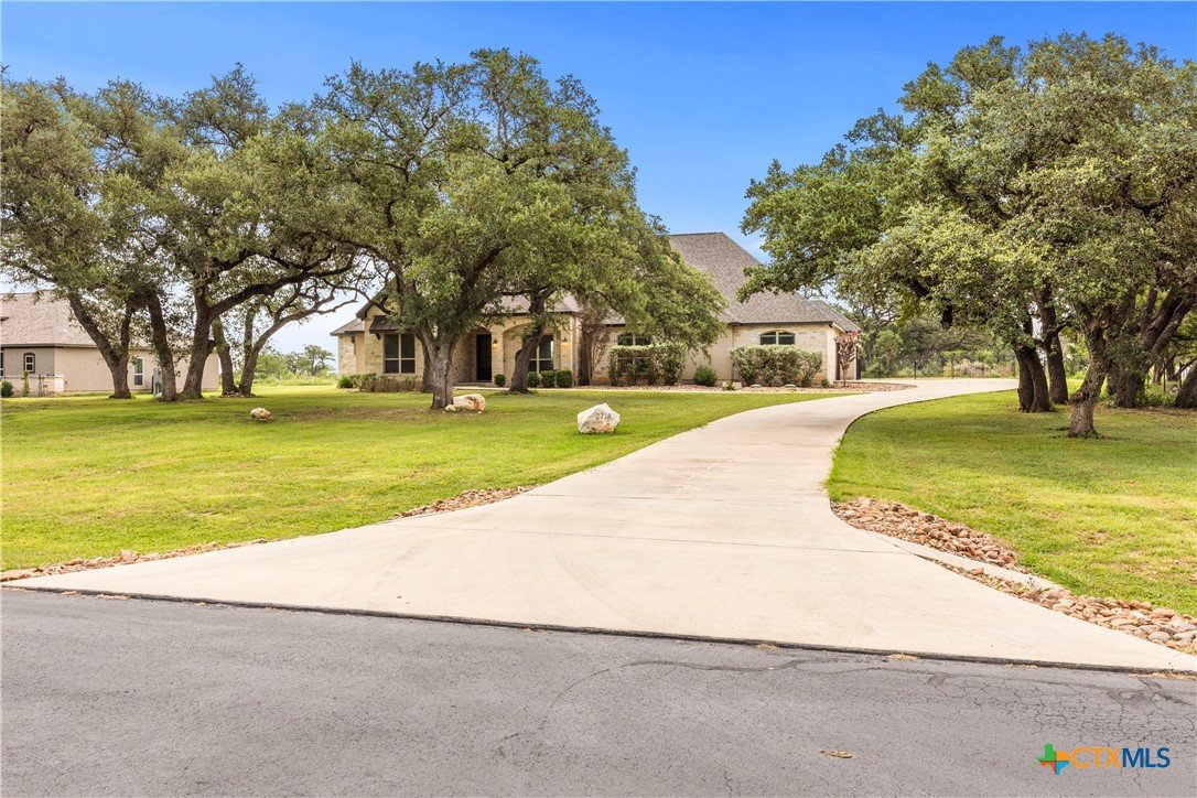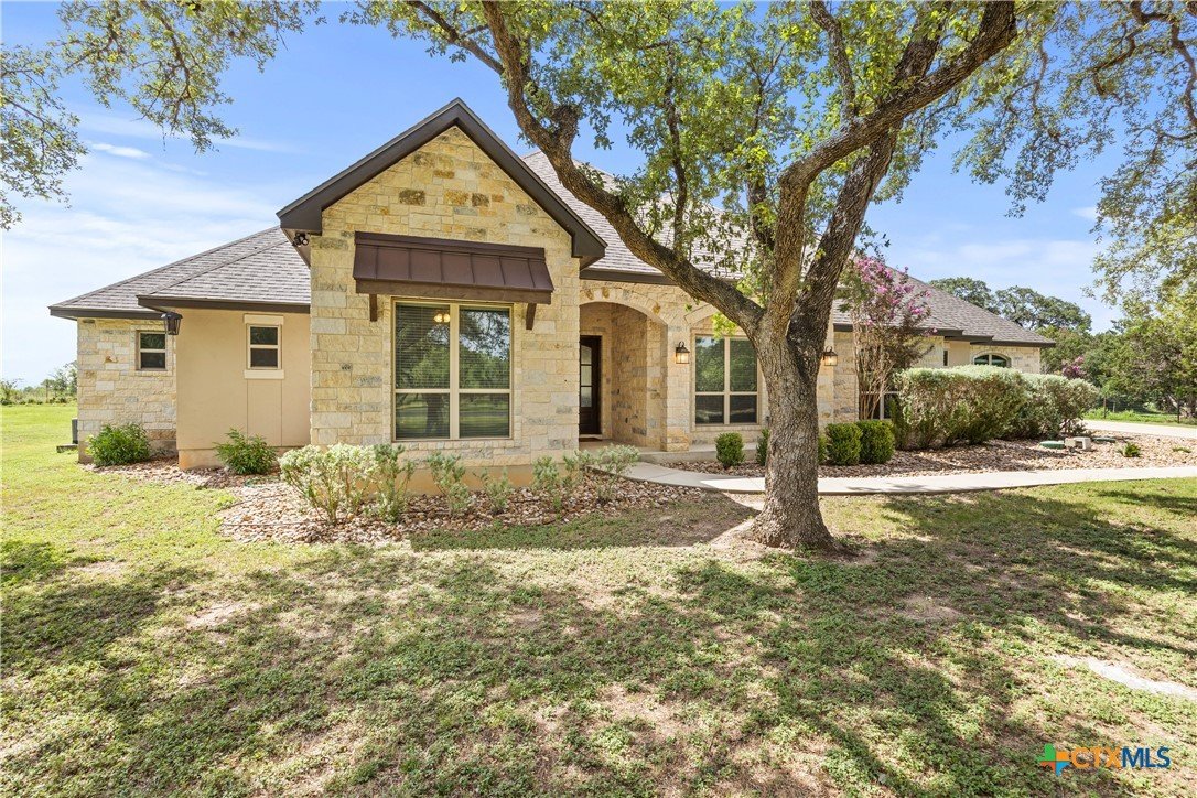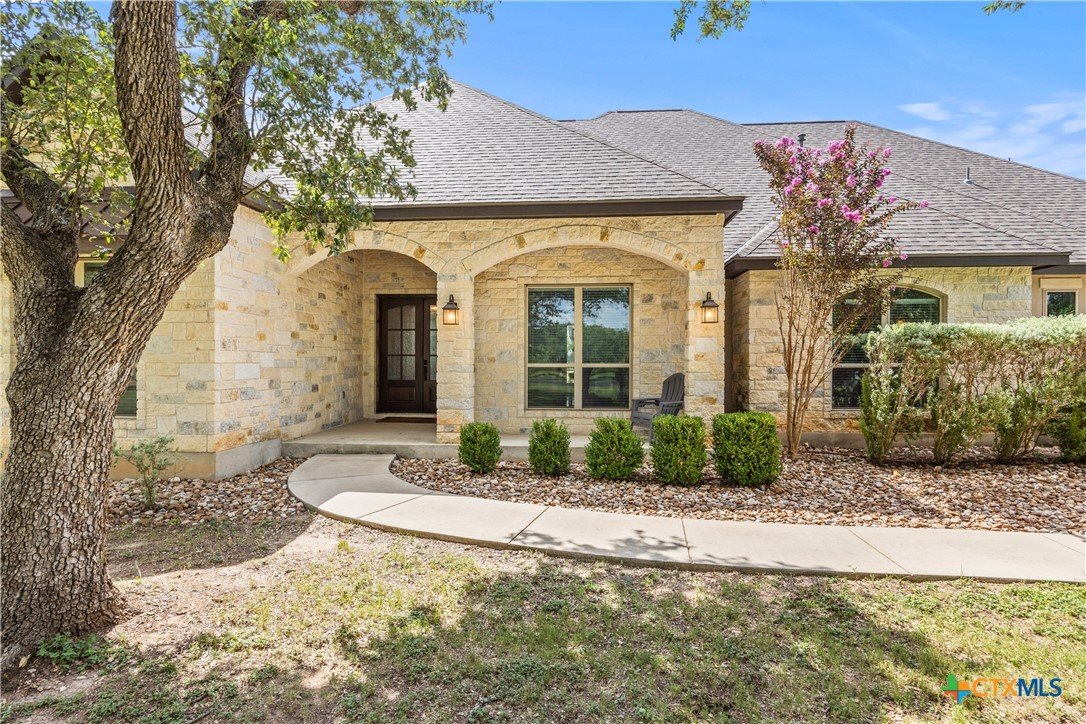 Welcome to your unique Modern Hill Country Home, nestled on just over an acre of land among majestic oaks. This meticulously crafted residence offers an unparalleled blend of comfort, luxury, and breathtaking natural beauty. Situated just off the beaten path, this home provides a peaceful retreat from city congestion while remaining conveniently close to shopping, restaurants, and recreation. Completed in 2016, this custom-built home spans 3,033 sq ft and features 4 bedrooms and 3.5 bathrooms. The residence boasts numerous upgrades, including wood-inlaid ceilings, stained concrete flooring, stunning light fixtures, a home office, tall ceilings, and custom doors. As you step through the beautiful double doors into the foyer, you're greeted by an inviting open floor plan that seamlessly connects the living spaces. The split floor plan, with a Jack and Jill layout, ensures everyone has room to spread out while maintaining a central gathering spot. The expansive master suite, located on one side of the home, features large his and hers closets and a private bath with ample space for all your needs. The cozy fireplace in the corner of the living area draws your eye, leading you to the open kitchen where gas cooking adds a touch of gourmet flair to meal preparation. The extra-large wall of windows offers a view of the outdoor kitchen and spacious fenced backyard. Need space for your toys? The 3-car garage offers oversized bays and 8-foot overhead doors. Additionally, the home is just a short walk from neighborhood amenities, including a pool, playground, volleyball court, tennis court, and walking trail. Don't miss the opportunity to own this exquisite home that combines modern luxury with natural beauty.