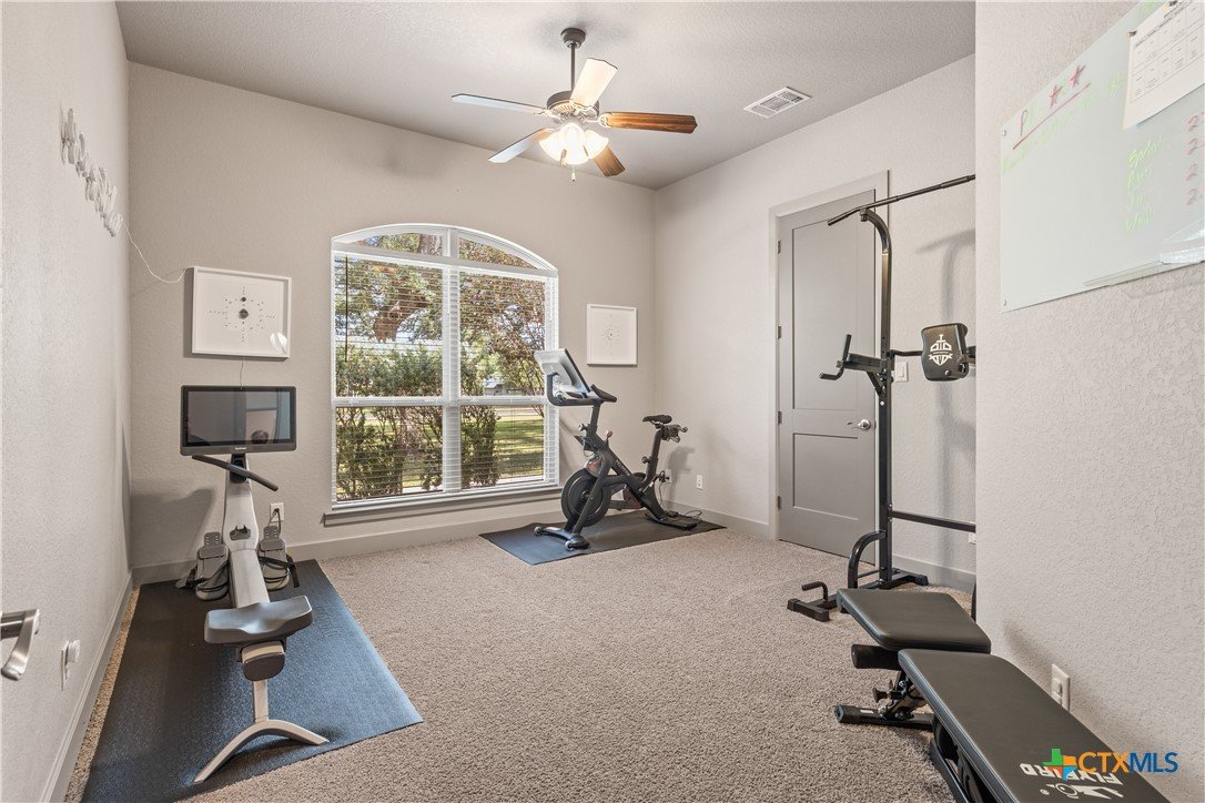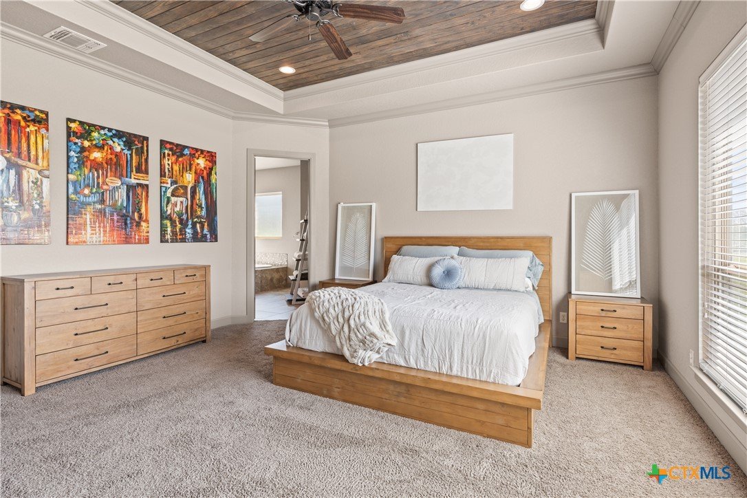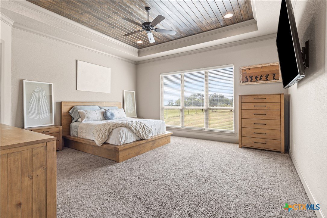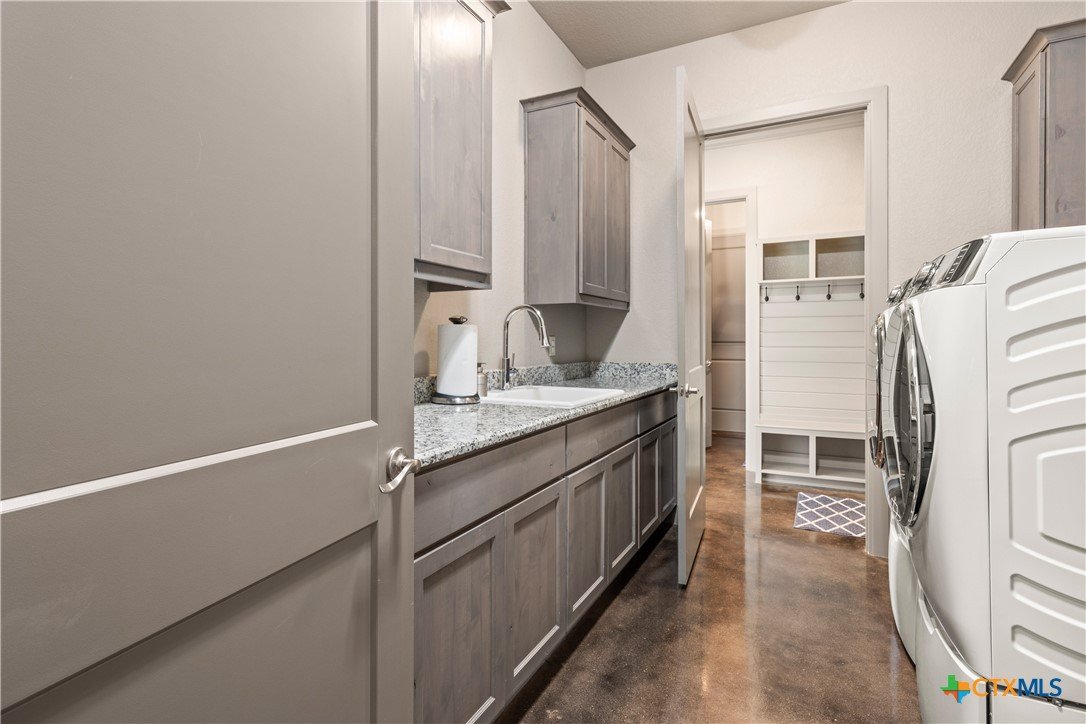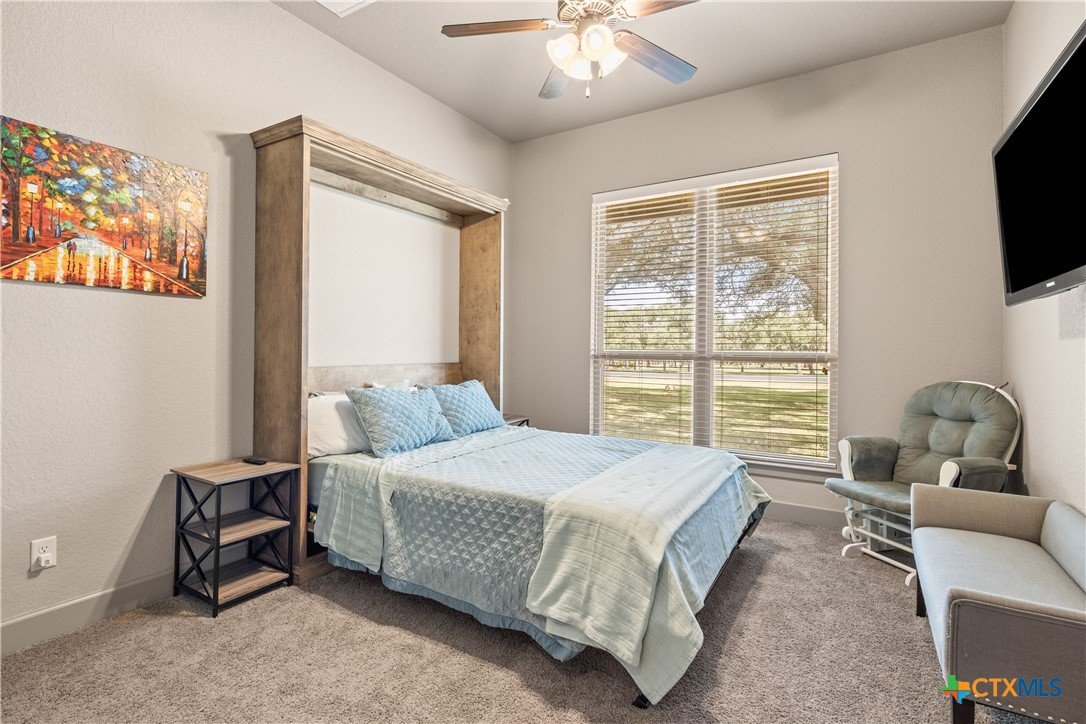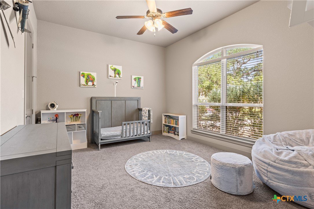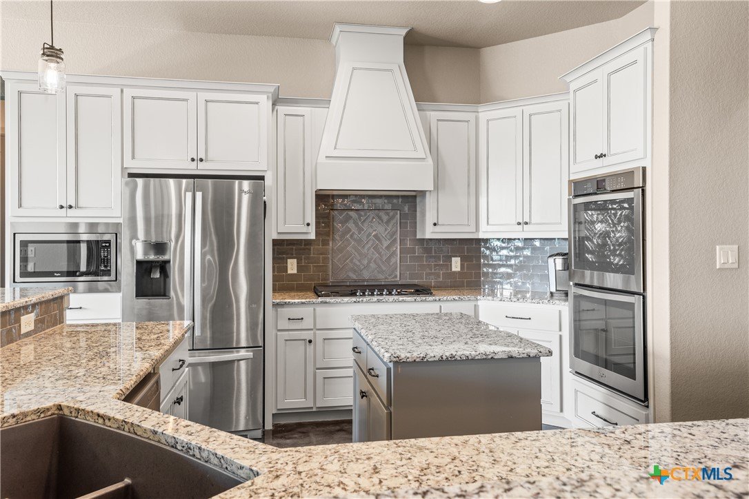 Welcome to your unique Modern Hill Country Home, nestled on just over an acre of land among majestic oaks. This meticulously crafted residence offers an unparalleled blend of comfort, luxury, and breathtaking natural beauty. Situated just off the beaten path, this home provides a peaceful retreat from city congestion while remaining conveniently close to shopping, restaurants, and recreation. Completed in 2016, this custom-built home spans 3,033 sq ft and features 4 bedrooms and 3.5 bathrooms. The residence boasts numerous upgrades, including wood-inlaid ceilings, stained concrete flooring, stunning light fixtures, a home office, tall ceilings, and custom doors. As you step through the beautiful double doors into the foyer, you're greeted by an inviting open floor plan that seamlessly connects the living spaces. The split floor plan, with a Jack and Jill layout, ensures everyone has room to spread out while maintaining a central gathering spot. The expansive master suite, located on one side of the home, features large his and hers closets and a private bath with ample space for all your needs. The cozy fireplace in the corner of the living area draws your eye, leading you to the open kitchen where gas cooking adds a touch of gourmet flair to meal preparation. The extra-large wall of windows offers a view of the outdoor kitchen and spacious fenced backyard. Need space for your toys? The 3-car garage offers oversized bays and 8-foot overhead doors. Additionally, the home is just a short walk from neighborhood amenities, including a pool, playground, volleyball court, tennis court, and walking trail. Don't miss the opportunity to own this exquisite home that combines modern luxury with natural beauty.