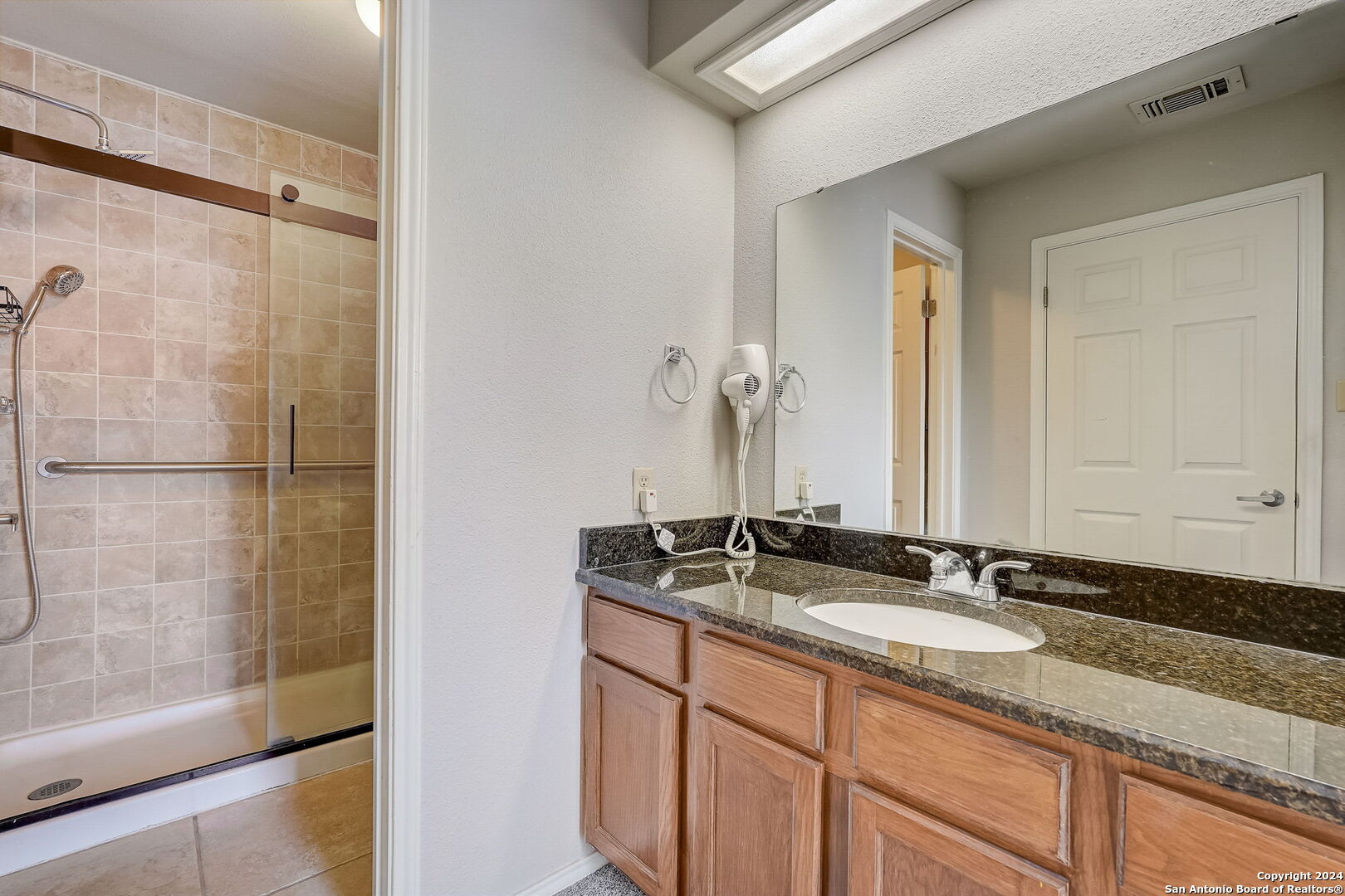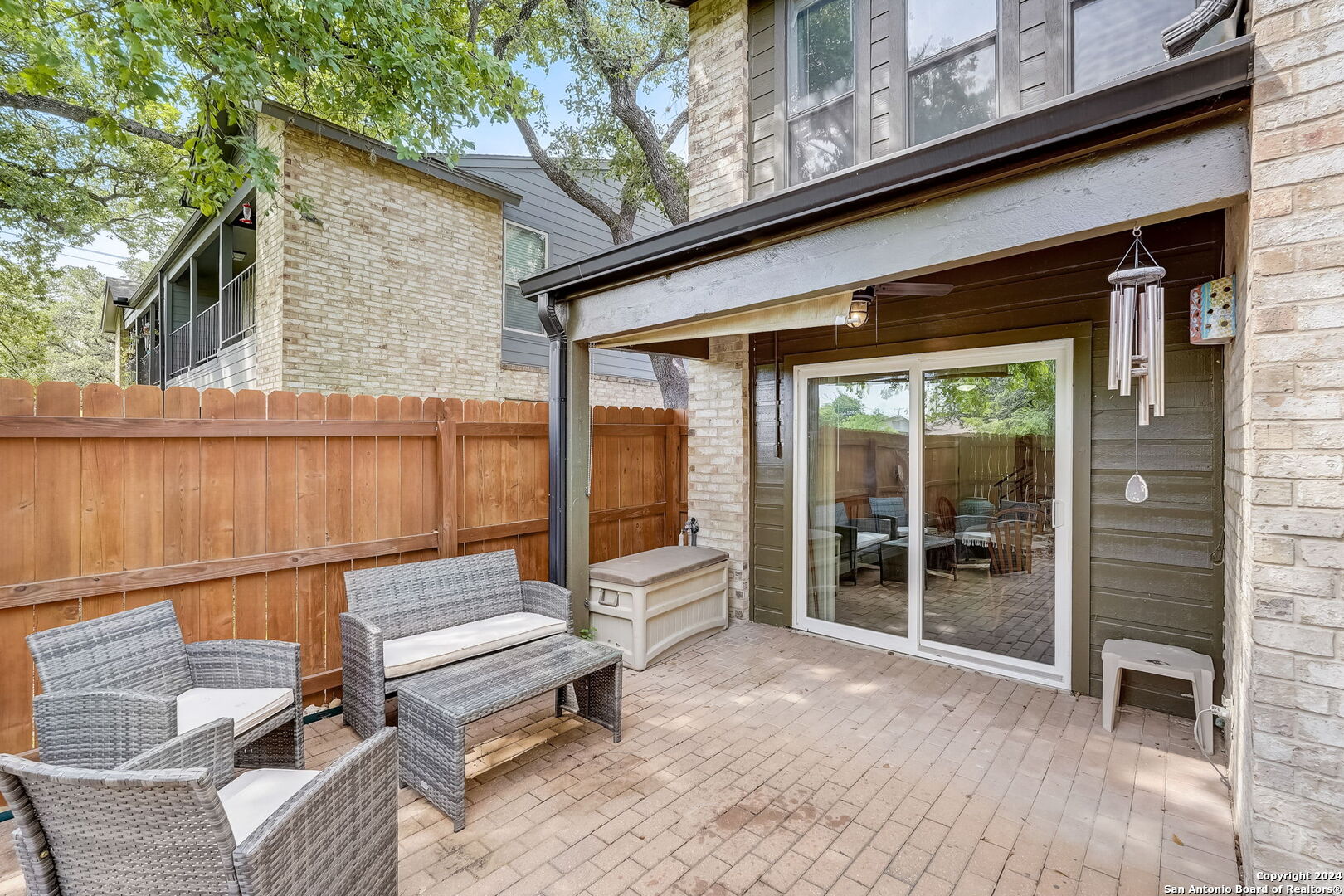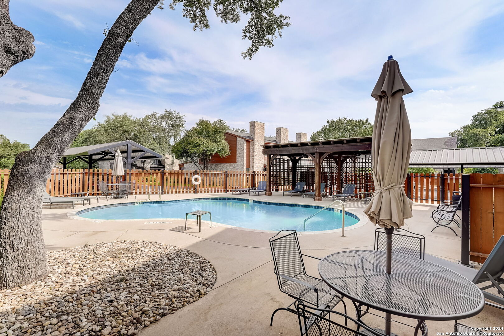 Absolutely amazing opportunity to own a condo in an actual owner occupied condominium complex! Location location location! Minutes away from HEB, McAllister Park, Thousand Oaks Cafe, Pizza Italia, Evil Olive, Bushwood BBQ and Driving Range! Great access to HWY 281 and 1604! The San Antonio North Substation police department right down the road! Very unique opportunity to have the dream of condo living and not be surrounded by a lot or renters. All owners must live in their condo for a minimum of 2 years before they could try to rent it out. This is also a no smoking complex! Enjoy this two-bedroom, two-and-a-half-bathroom end unit with no neighbors behind you, nestled in a quiet gated community. Come see this one today!