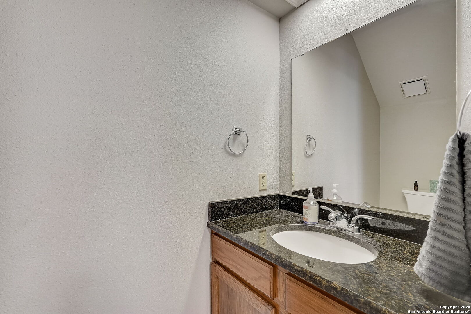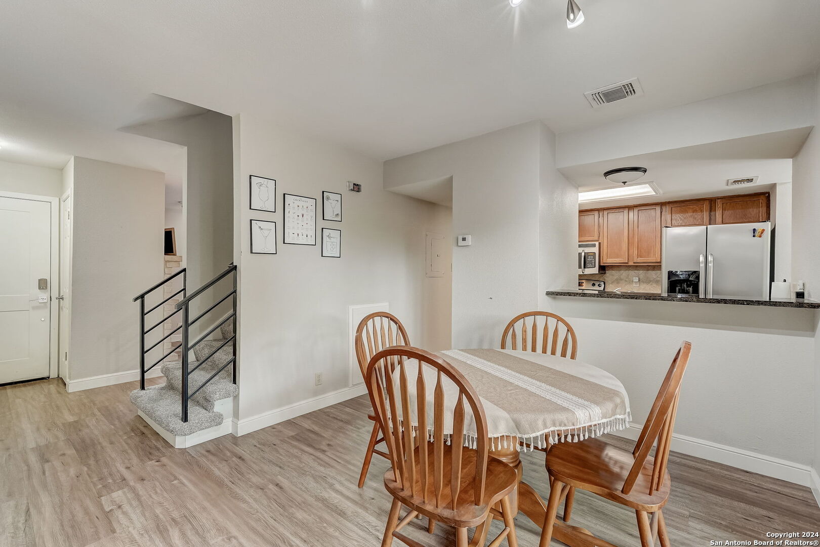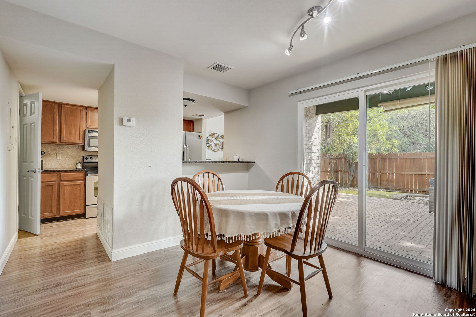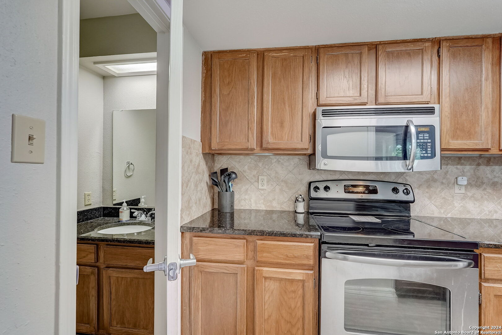 Absolutely amazing opportunity to own a condo in an actual owner occupied condominium complex! Location location location! Minutes away from HEB, McAllister Park, Thousand Oaks Cafe, Pizza Italia, Evil Olive, Bushwood BBQ and Driving Range! Great access to HWY 281 and 1604! The San Antonio North Substation police department right down the road! Very unique opportunity to have the dream of condo living and not be surrounded by a lot or renters. All owners must live in their condo for a minimum of 2 years before they could try to rent it out. This is also a no smoking complex! Enjoy this two-bedroom, two-and-a-half-bathroom end unit with no neighbors behind you, nestled in a quiet gated community. Come see this one today!